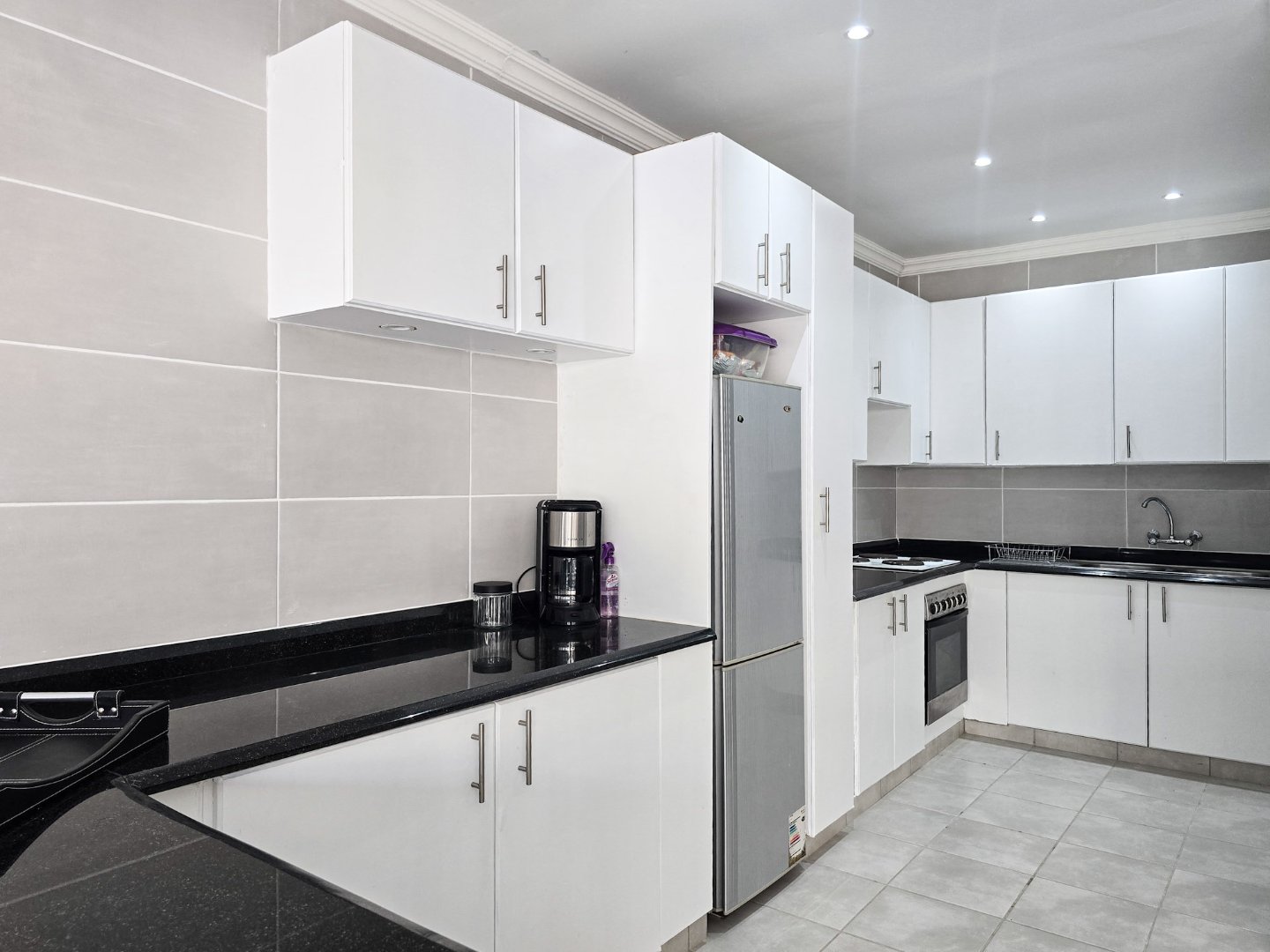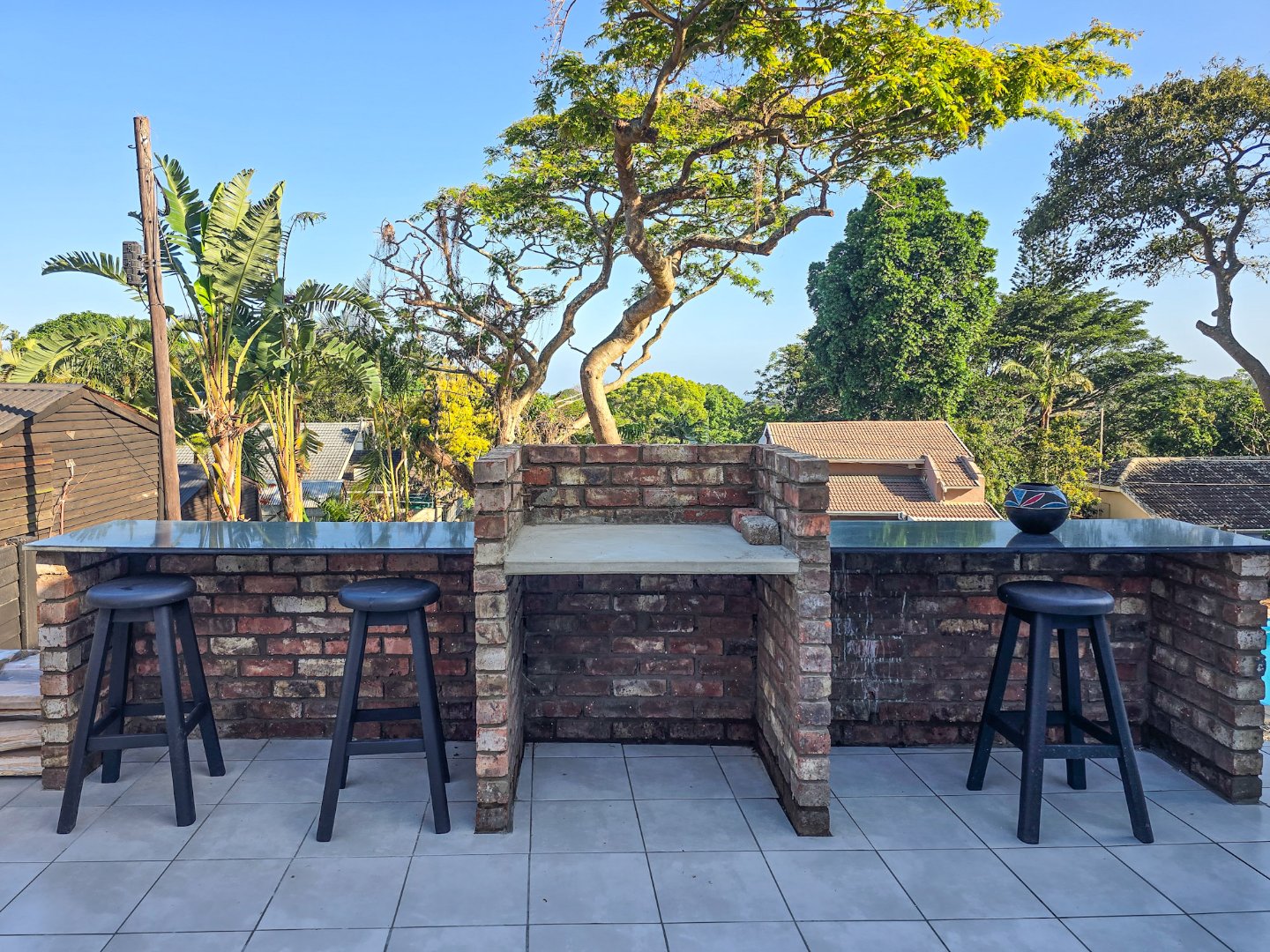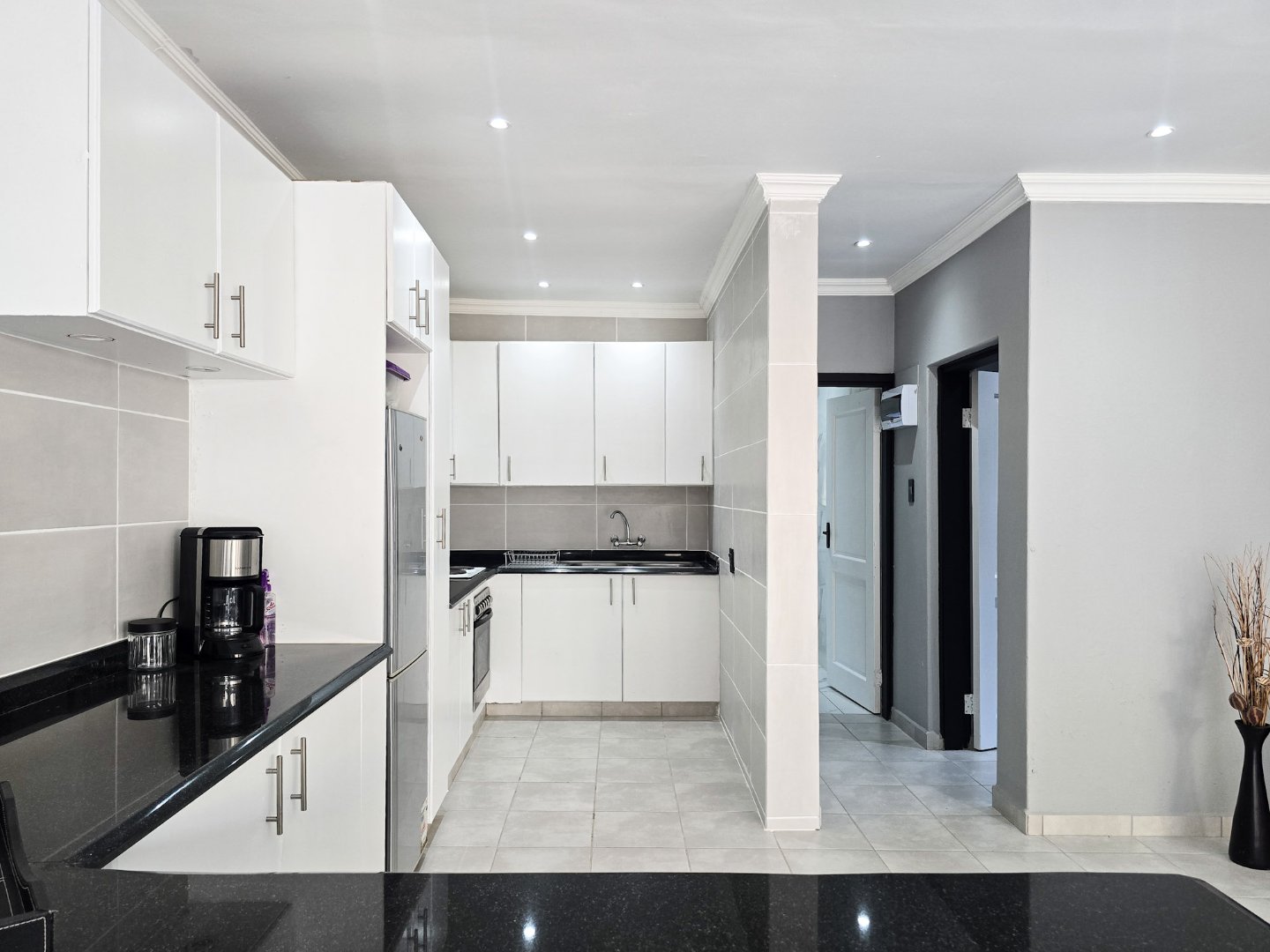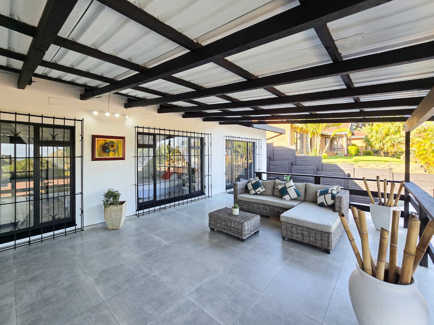 The two self-contained flats—each with one bedroom and are both large for flatlets—offer flexible possibilities, from guest accommodation to a home office or rental income. One of the flats has been smartly laid out as a bar and entertaining area, yet it can be easily converted back into a flat if desired.