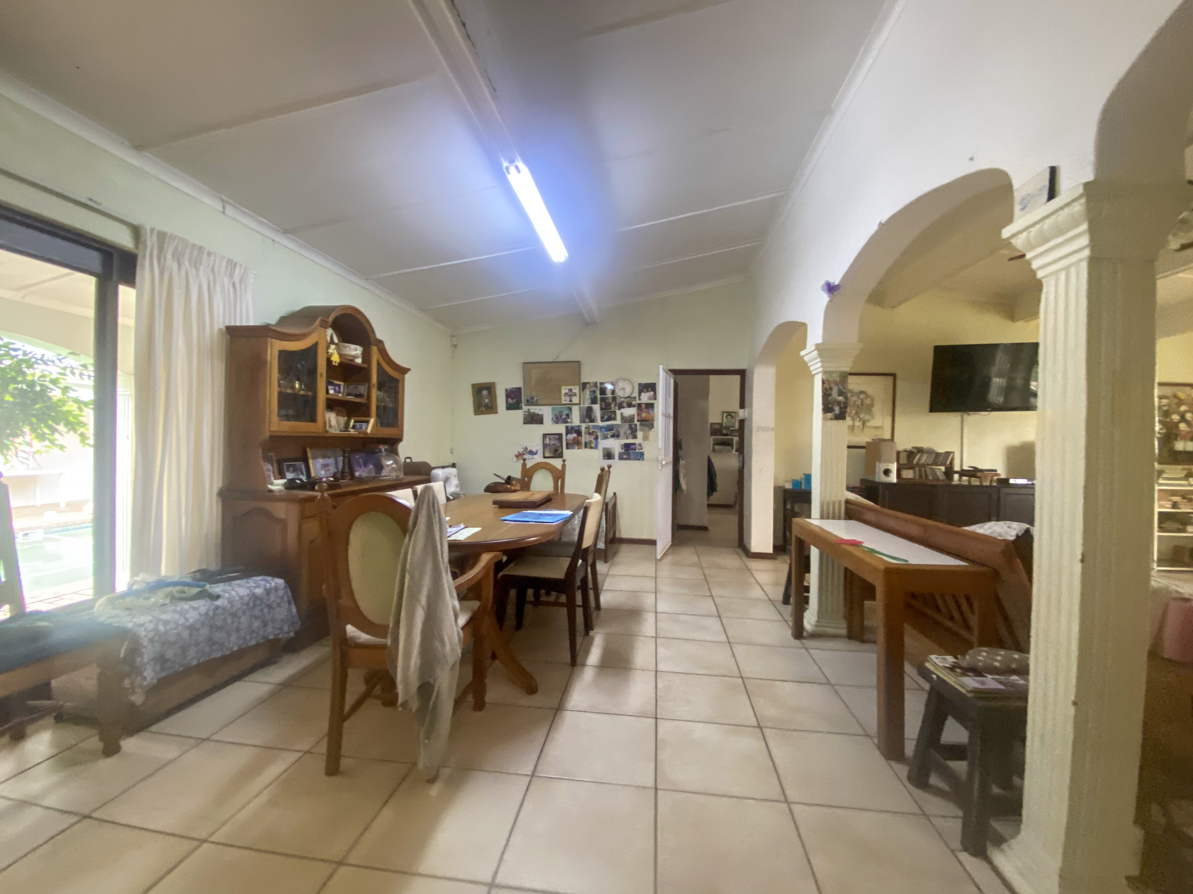 Step into a cherished home that has gracefully stood the test of time. She may be a grand old lady, but she carries herself with pride — beautifully built with exceptional bones, timeless charm, and endless potential for someone ready to bring her into her next chapter. This expansive 6-bedroom, 3.5-bathroom residence is crafted for generous living and effortless entertaining. At the very heart of the home lies a sparkling swimming pool, creating a serene, resort-style oasis. Four of the bedrooms, the kitchenette, and the entertainment room all open directly onto a square patio overlooking the pool — offering seamless indoor-outdoor flow and a tranquil lifestyle that invites relaxation. The convenient kitchenette adds wonderful flexibility, making it ideal for extended family, guests, or as an easy-serving space when entertaining around the pool. Inside the main house, you’ll discover a spacious lounge and a welcoming dining room, along with a well-appointed kitchen that leads out to a peaceful patio framed by the most tranquil garden views — the perfect spot to unwind at the end of the day. If you’re searching for space, character, and a home filled with heart and potential, this property delivers it all — wrapped in charm, comfort, and rock-solid structural integrity.