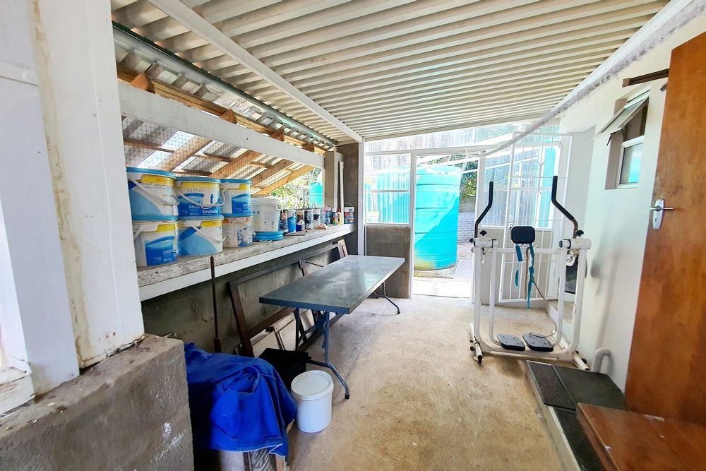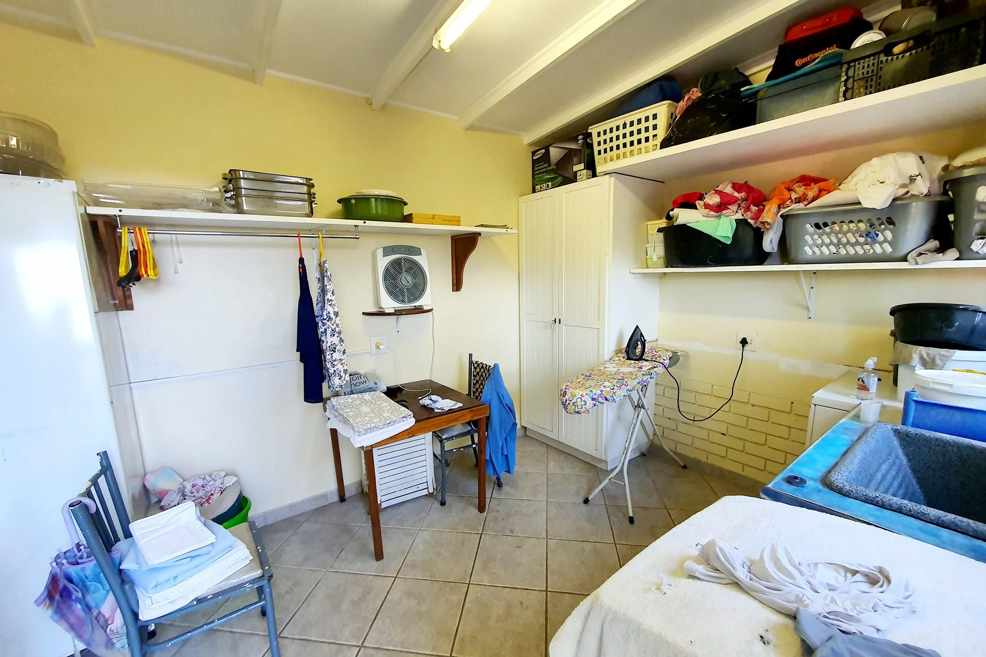 Additional amenities include a laundry room, utility room, domestic quarters, and a convenient workshop for hobbies. The property is also equipped with eight rainwater harvesting tanks, seamlessly integrated with the home via a pump, motor, and filters as well as a solar geyser.