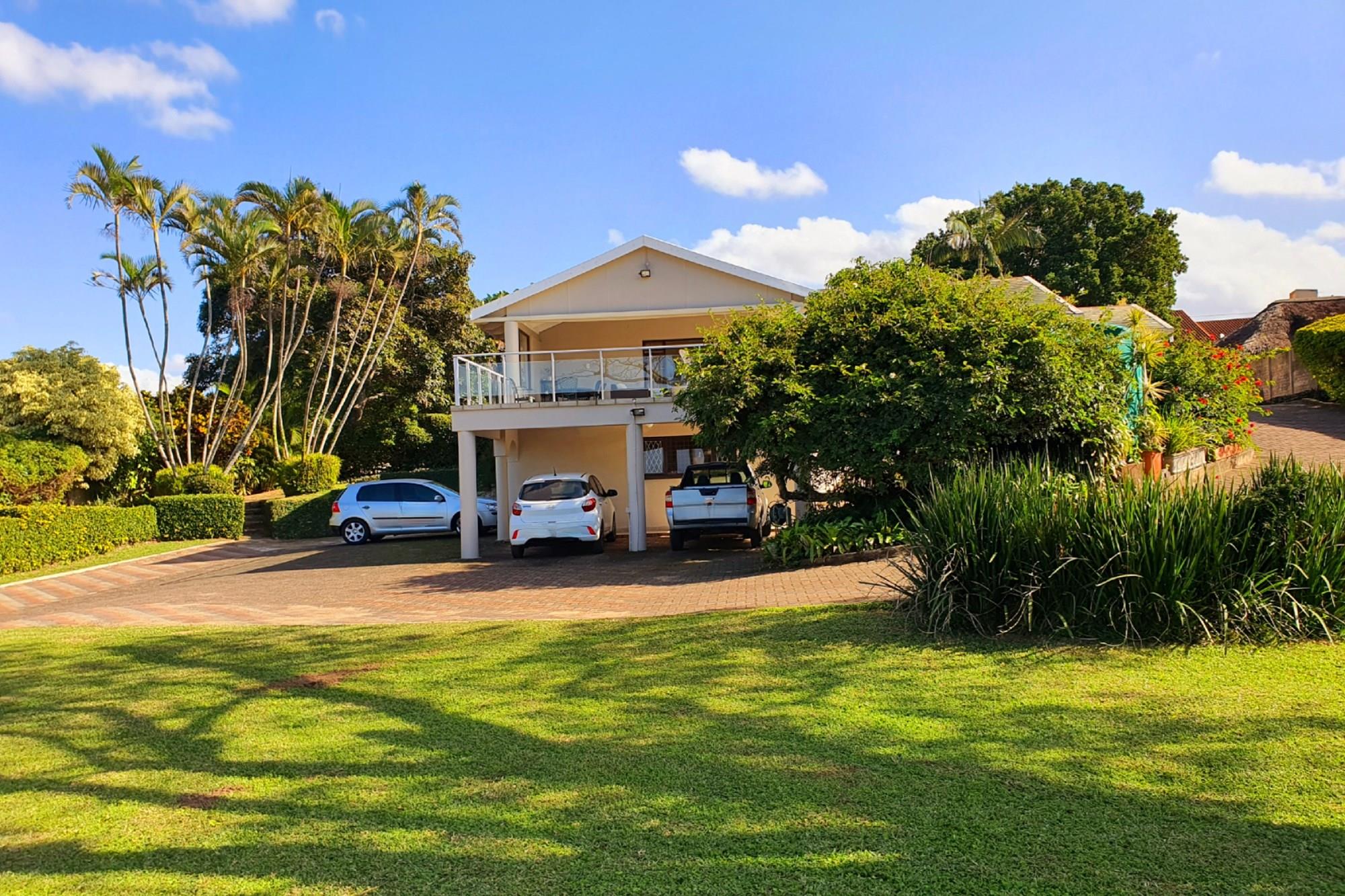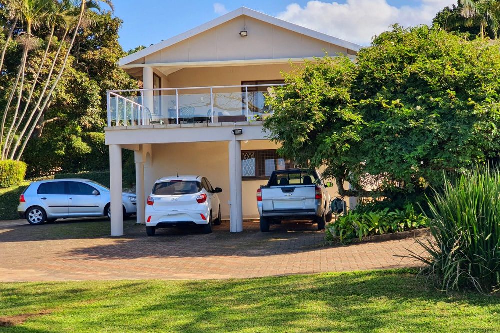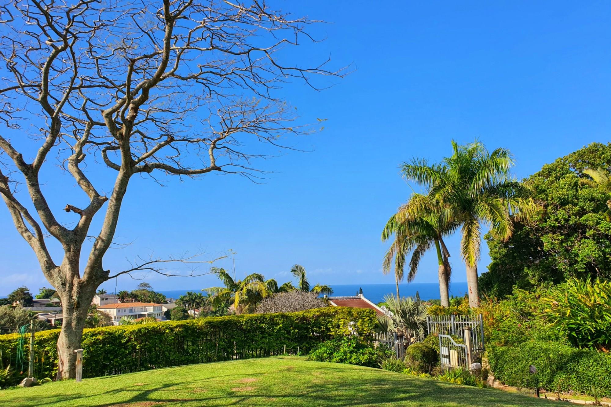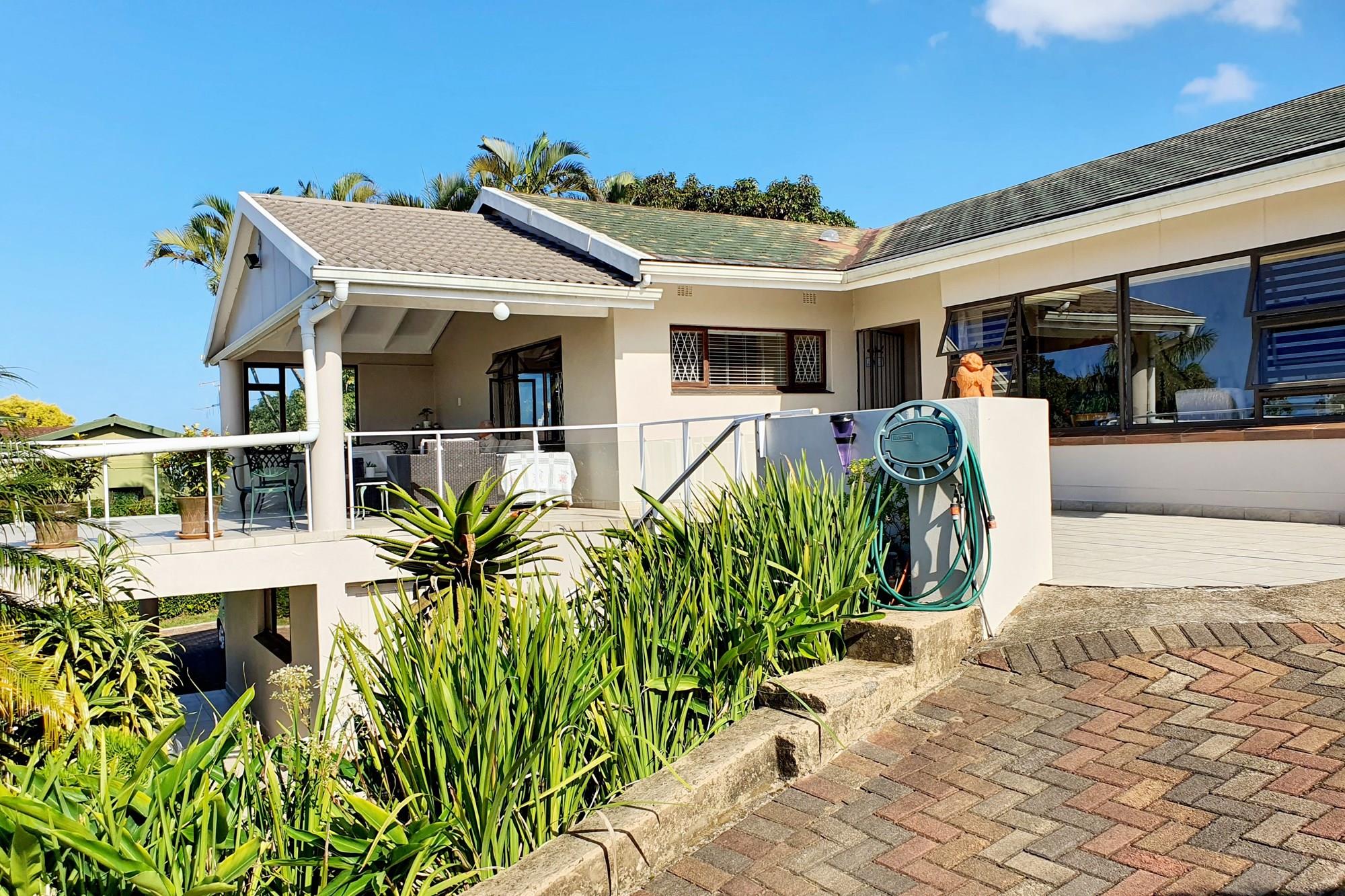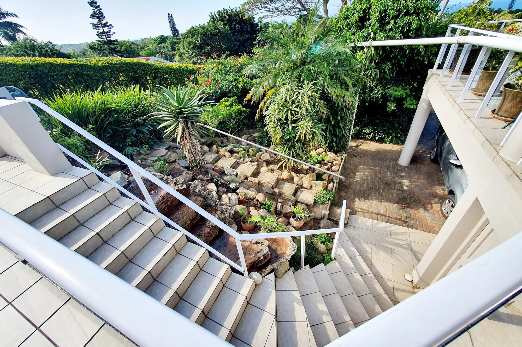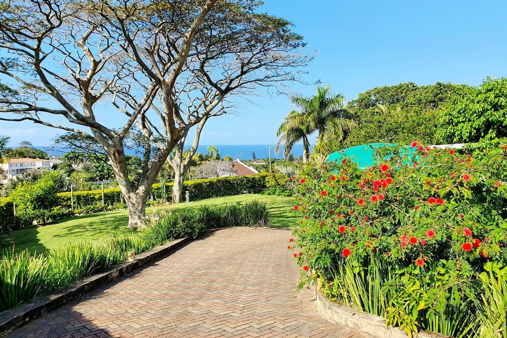 Nestled on a tranquil hillside lane in Uvongo, this exquisite home offers a serene retreat with stunning distant sea views.