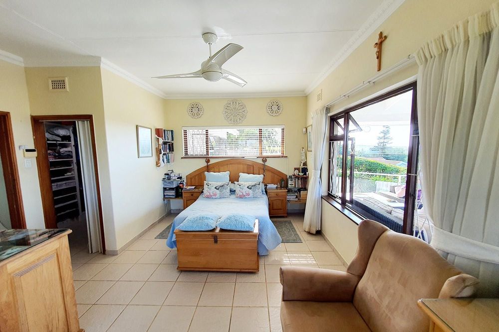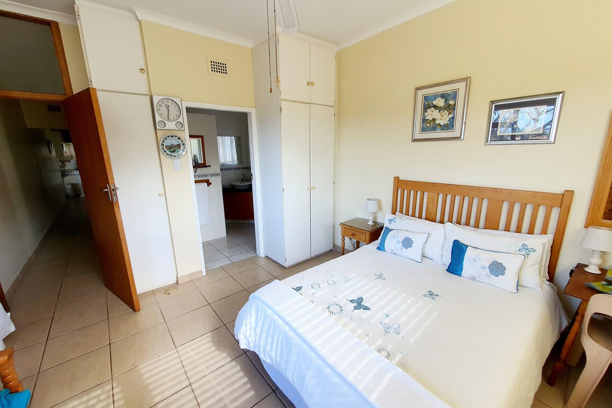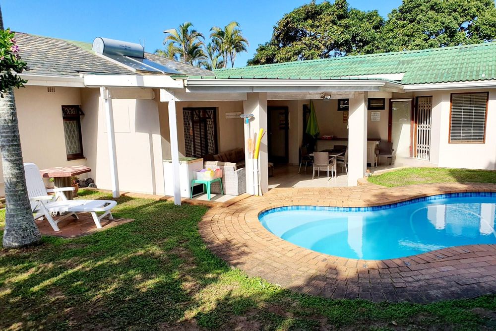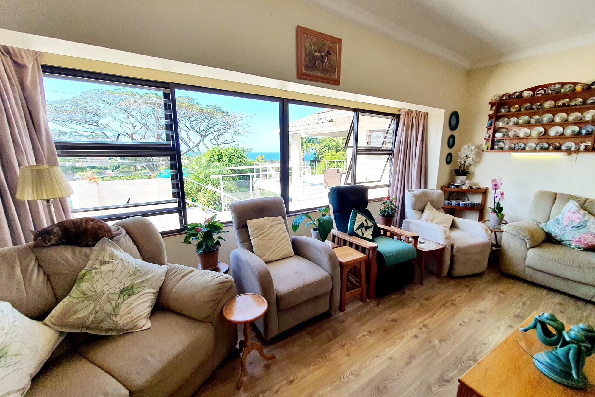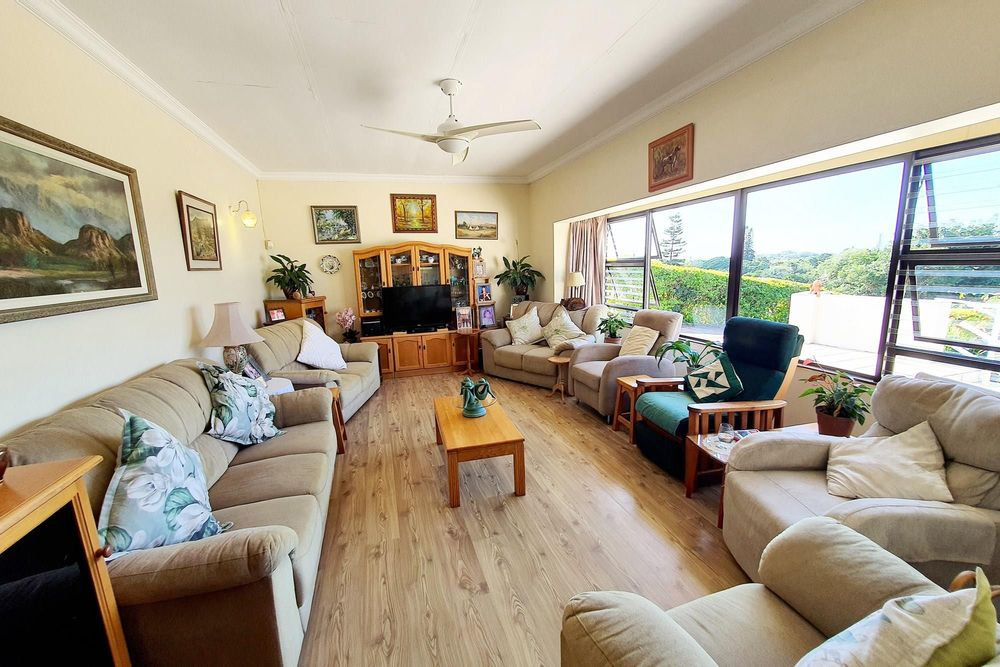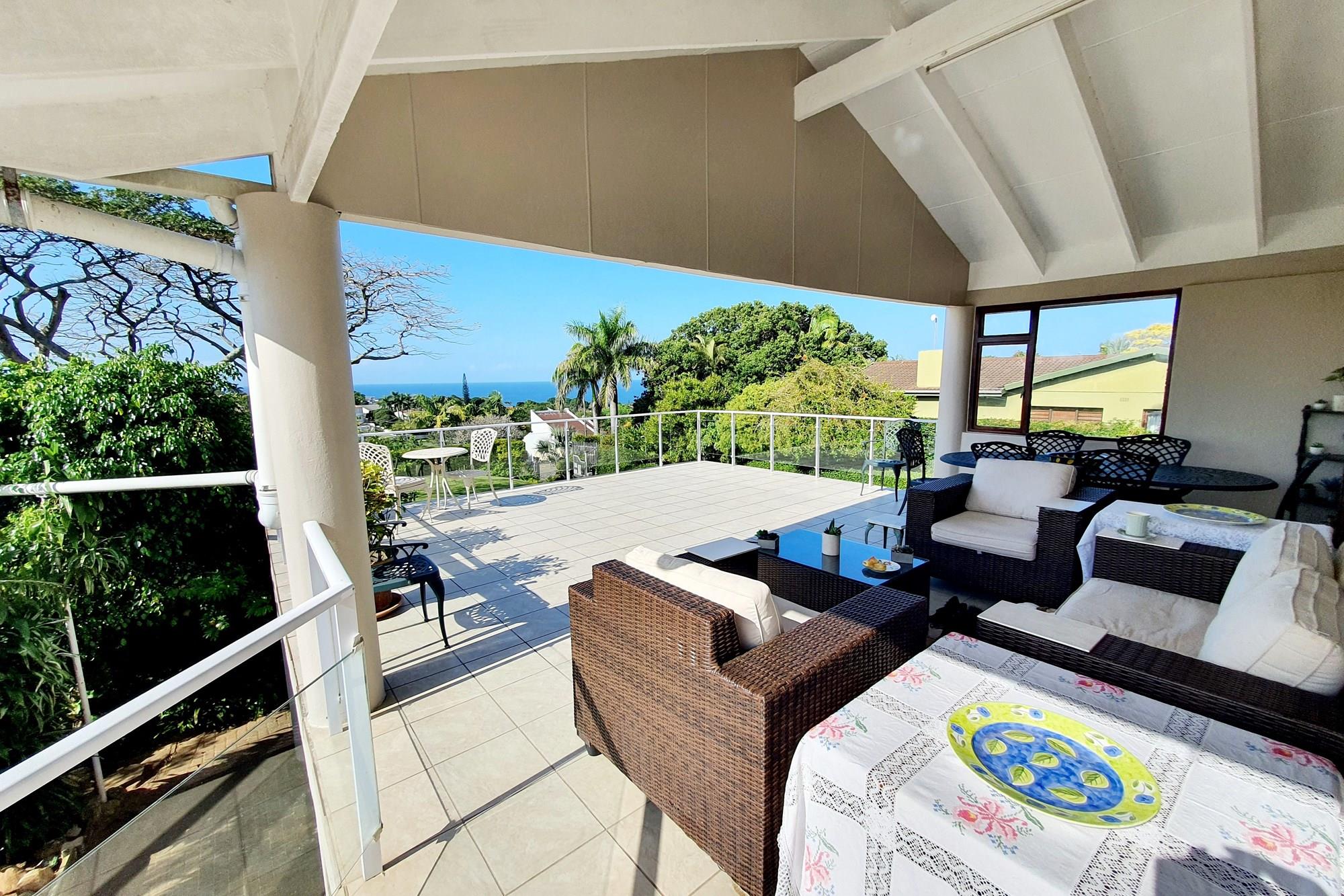 Nestled on a tranquil hillside lane in Uvongo, this exquisite home offers a serene retreat with stunning distant sea views.