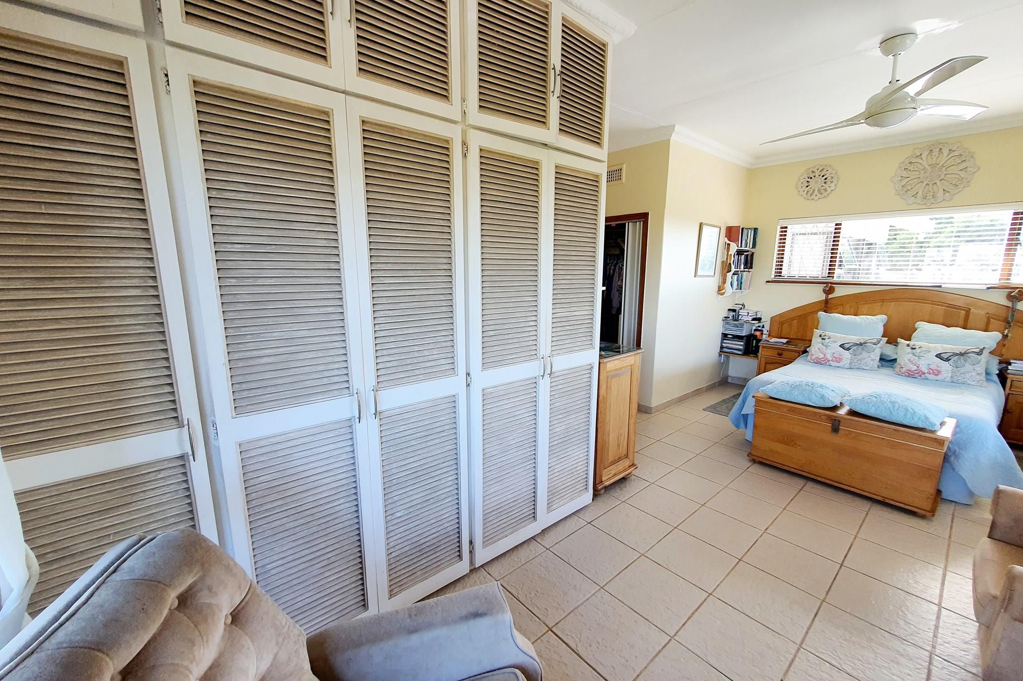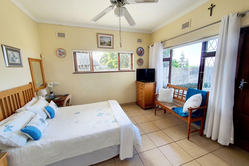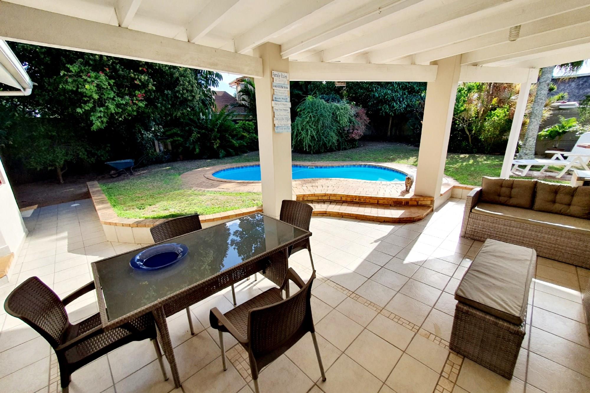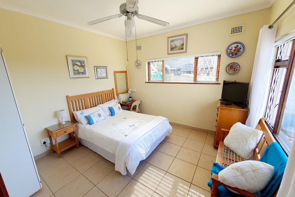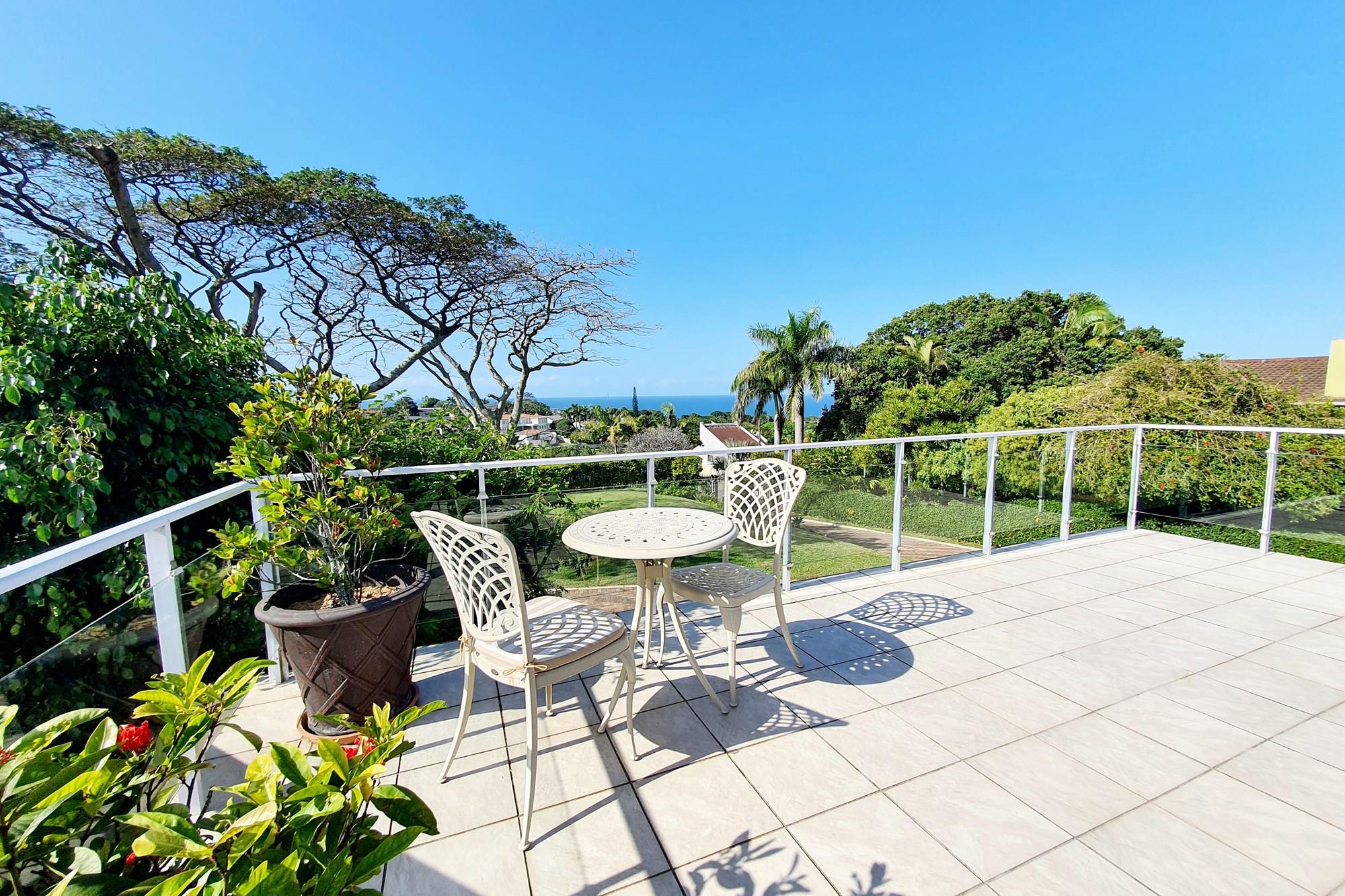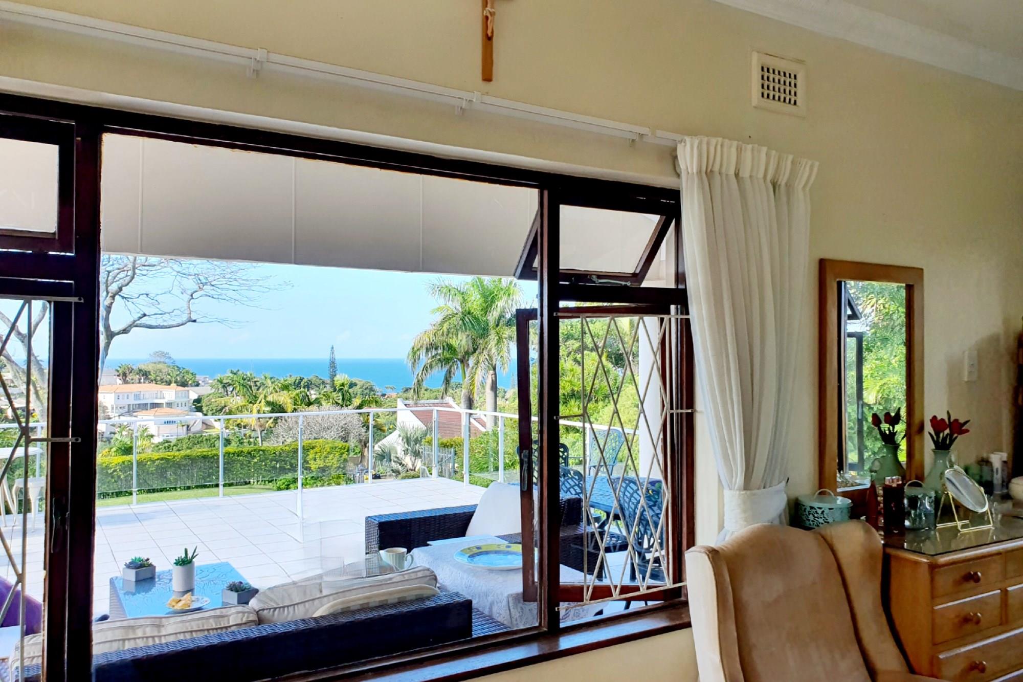 Nestled on a tranquil hillside lane in Uvongo, this exquisite home offers a serene retreat with stunning distant sea views.