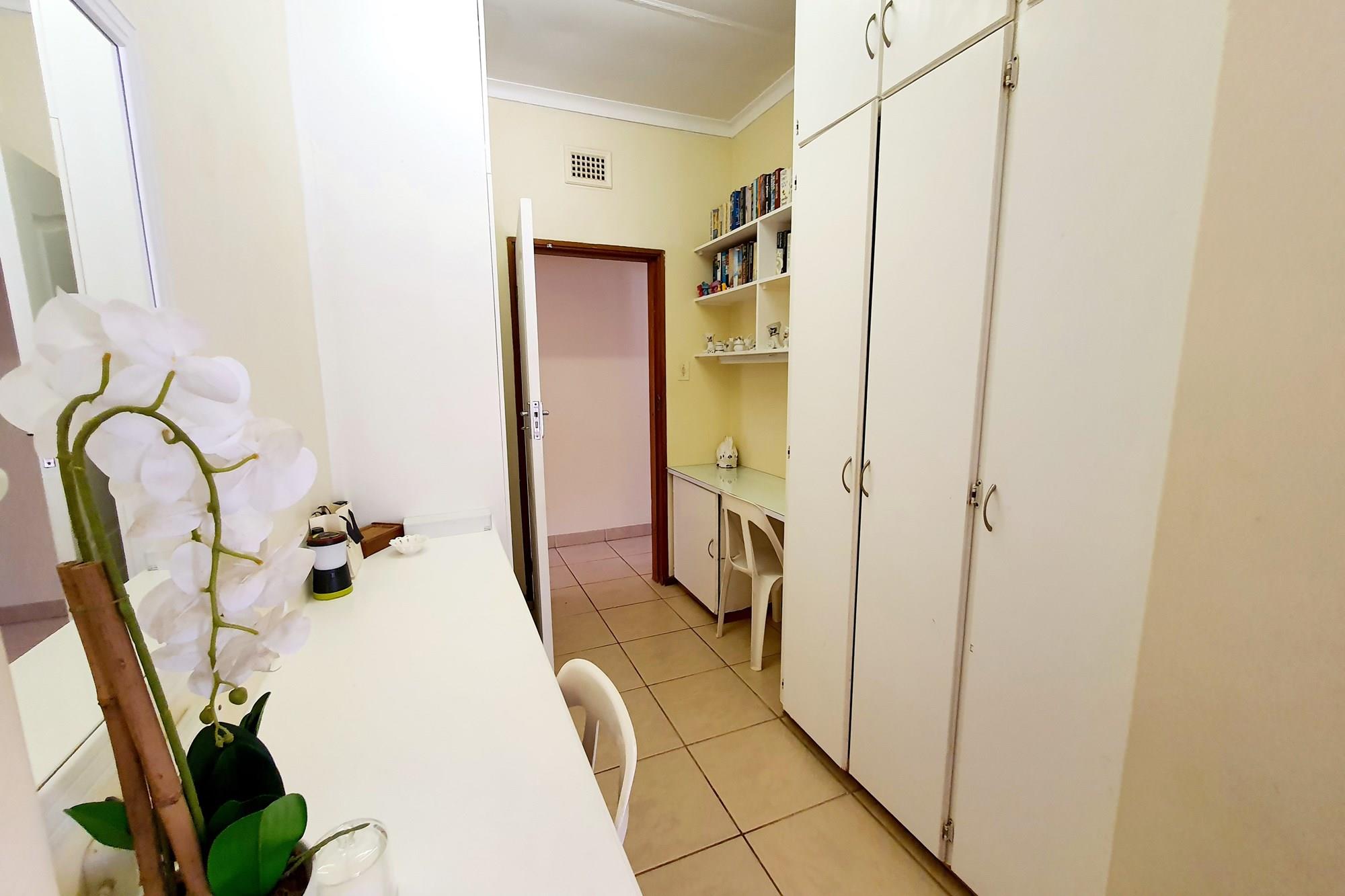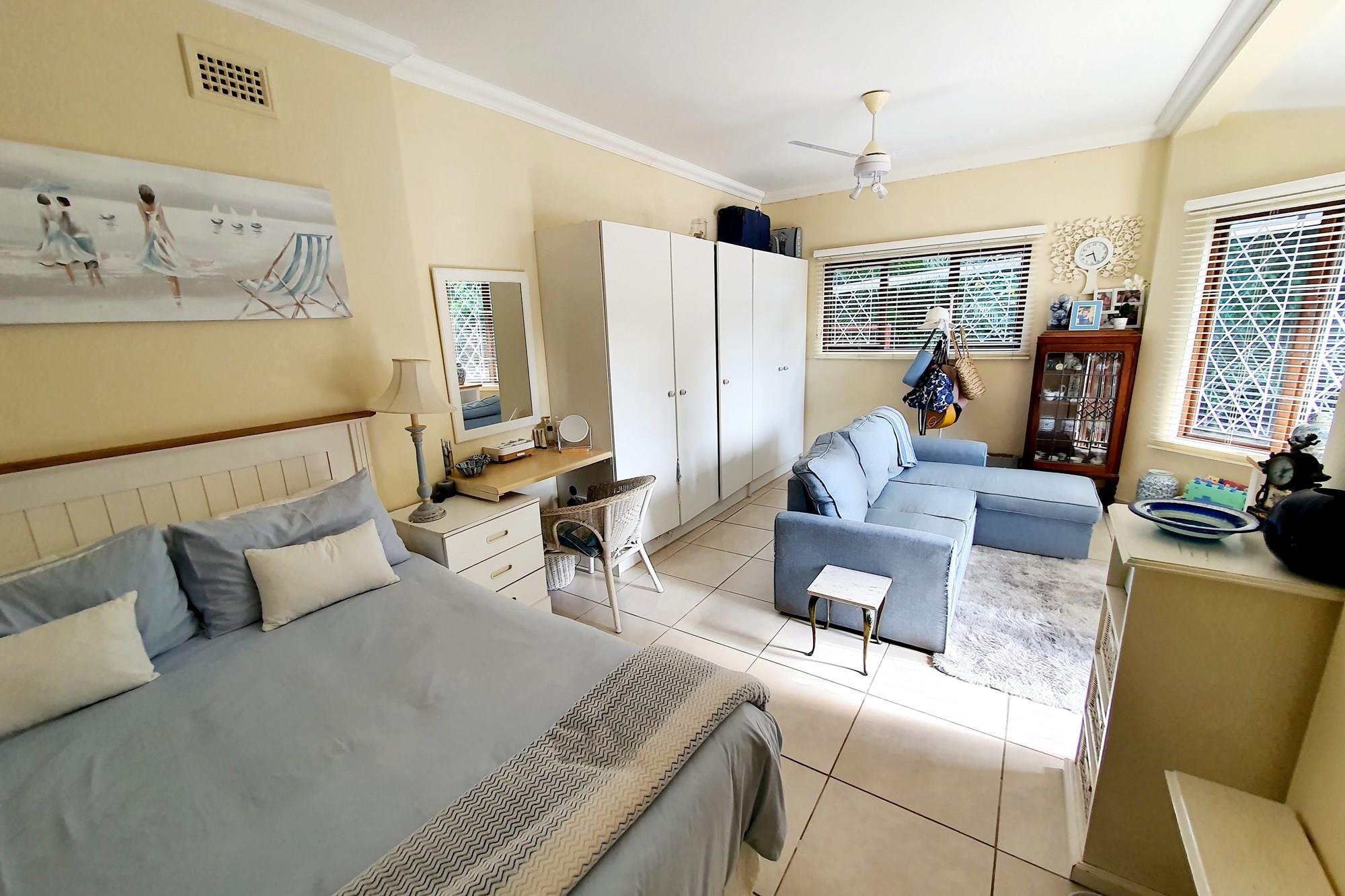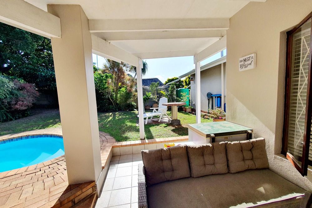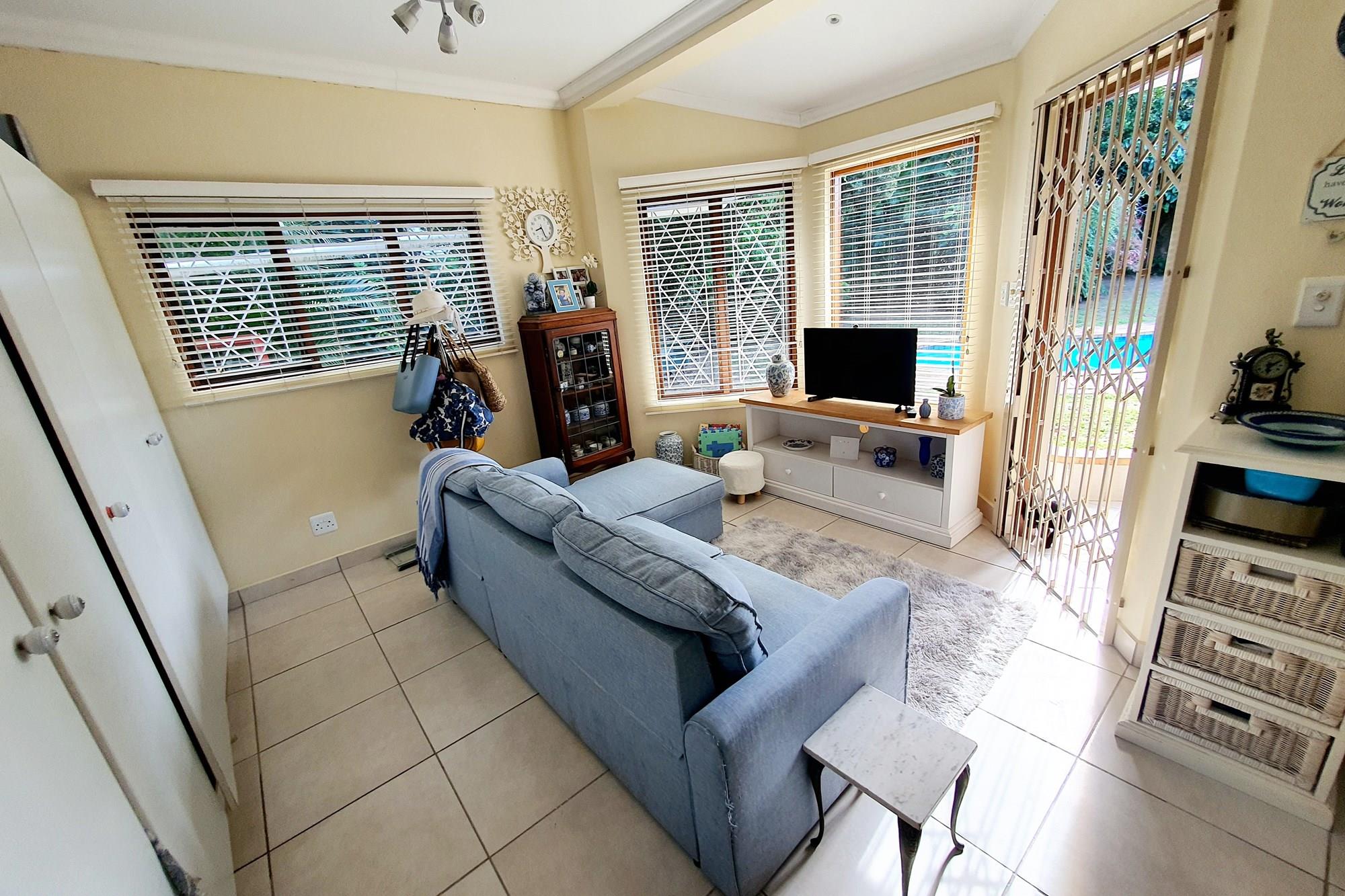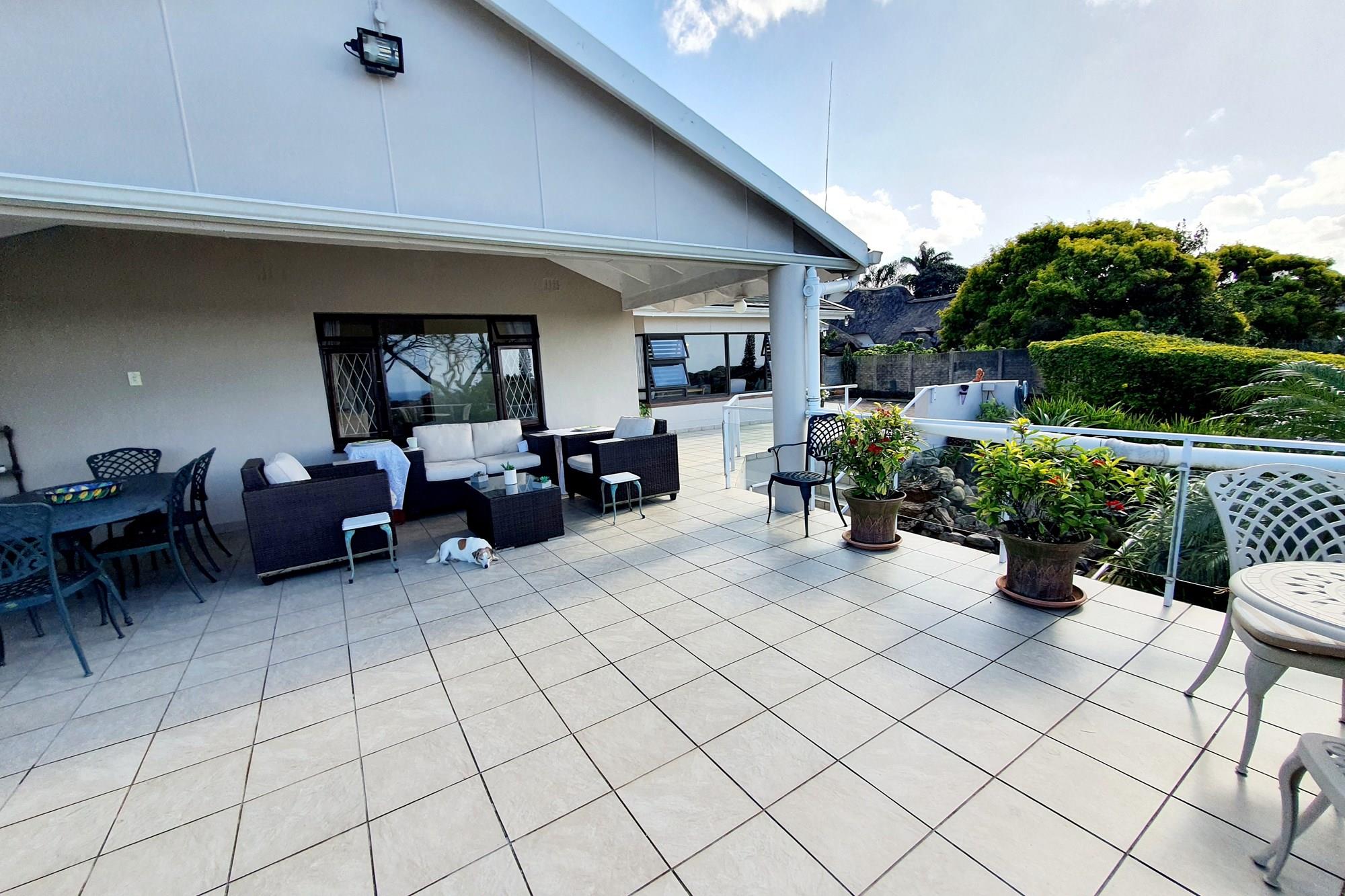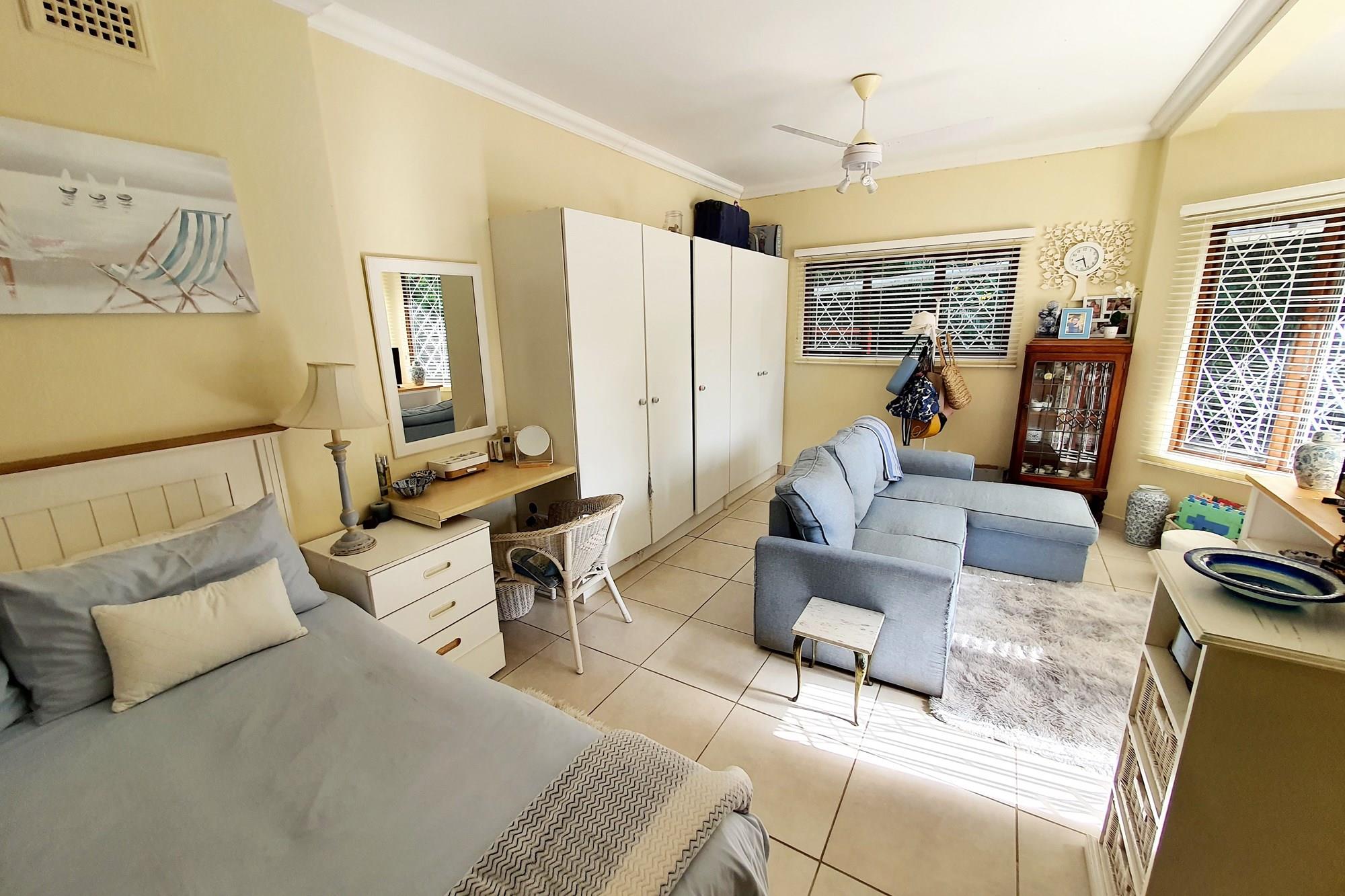 Nestled on a tranquil hillside lane in Uvongo, this exquisite home offers a serene retreat with stunning distant sea views.