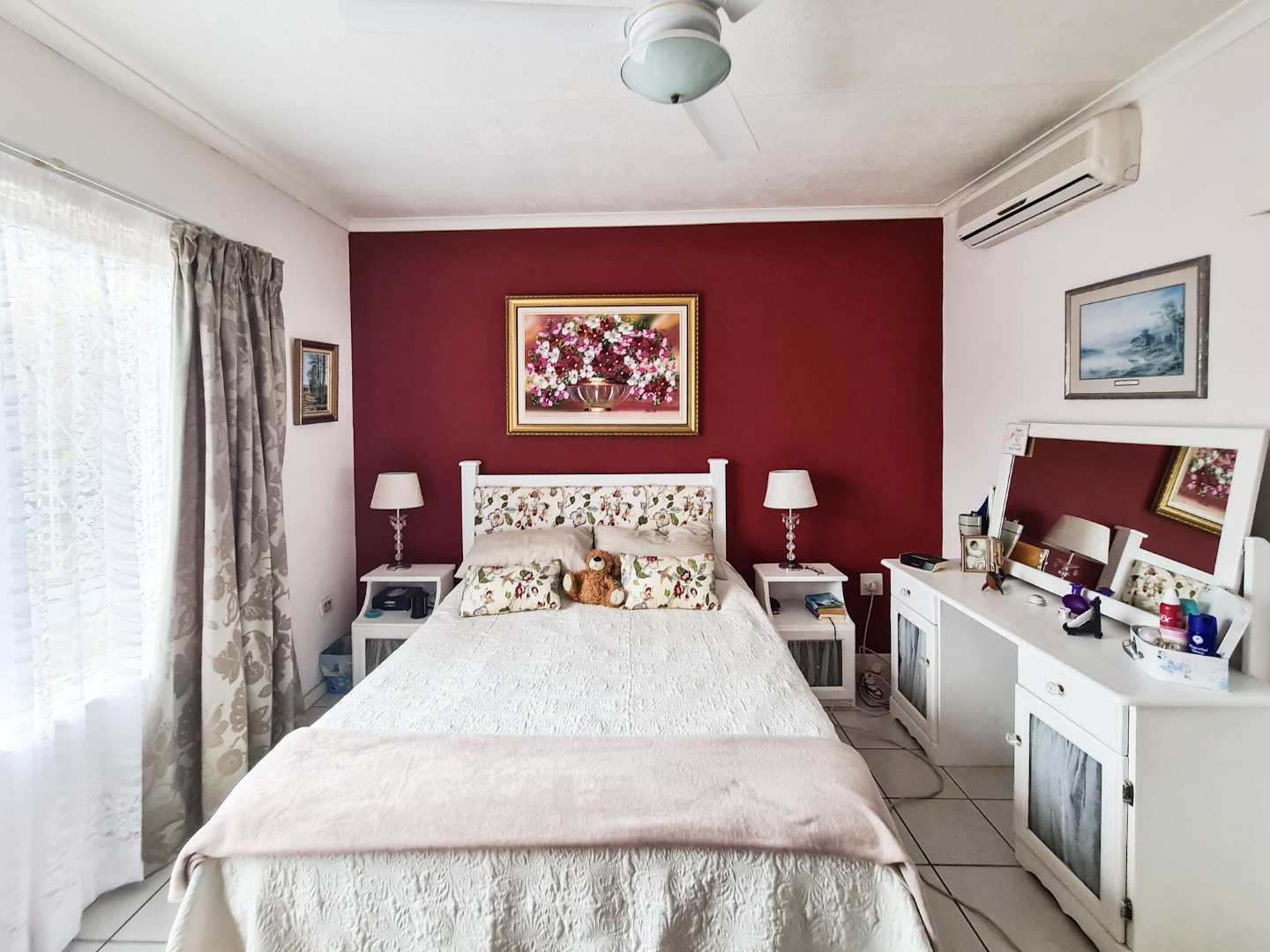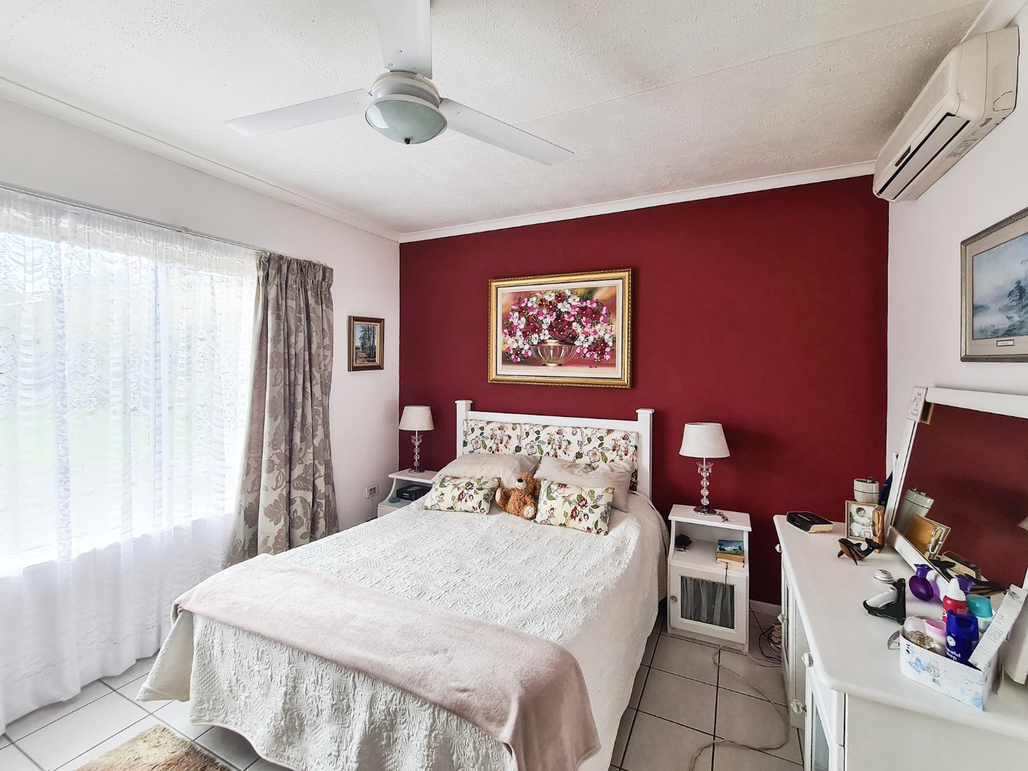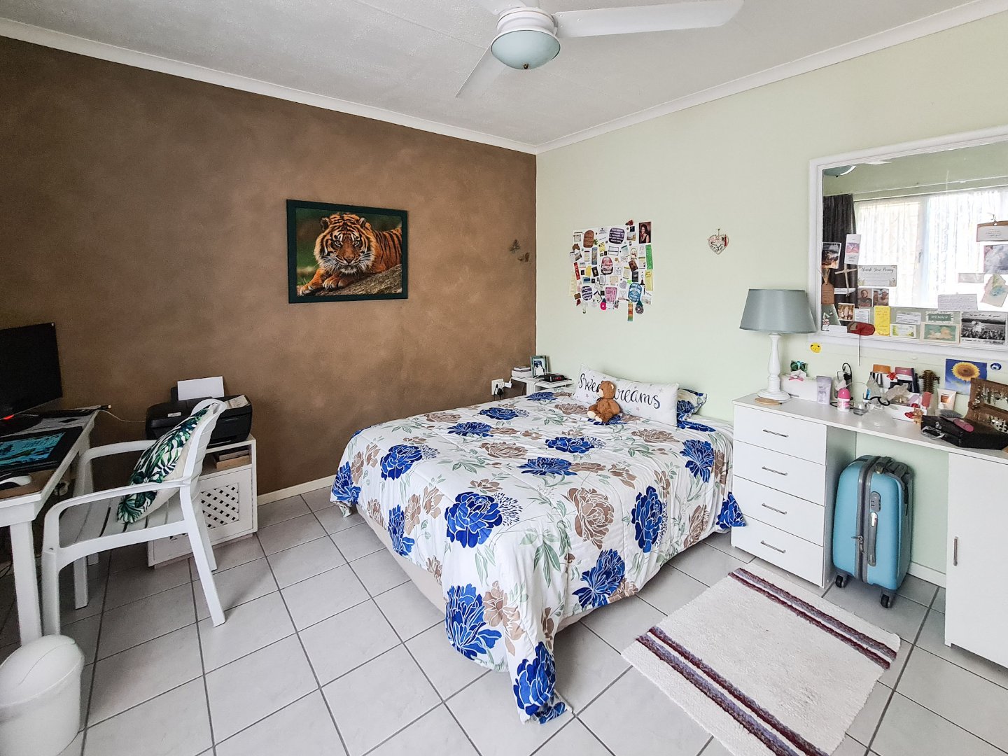 This home is open plan designed and very neat. The kitchen boasts granite tops, modern cupboards and an electric oven and stove with an extractor fan. The dining area leads to an enclosed patio where you will find a bar and sliding doors all around which can be opened up to let in that fresh breeze. This is a great entertainment area and perfect for when guests are visiting. The bedrooms are well sized, have built-in cupboards and fans. The main bedroom has a beautiful feature wall and a main en-suite consisting of a shower. There is also a full guest bathroom consisting of both a shower and bath.