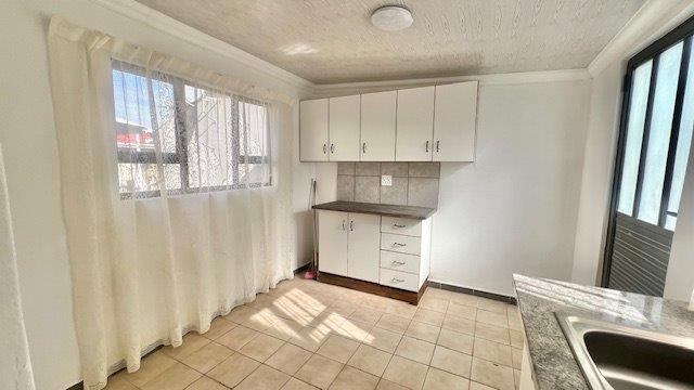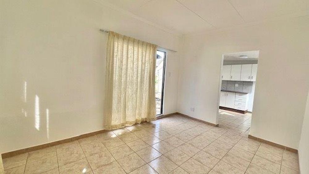 The unit features an aluminium sliding door that opens into a bright lounge area, a newly fitted kitchen with fresh cupboards, a comfortable bedroom, and a bathroom with a modern shower, toilet, and basin. New aluminium windows have also been installed, giving the space a clean, updated finish.