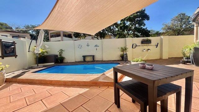 Step into a stylish, well-planned kitchen with ample cupboard space and a separate scullery, ideal for keeping your living spaces neat and organised. The kitchen flows into an airy open-plan lounge and dining/bar area that’s perfect for relaxing or entertaining. Two sets of sliding doors from both the lounge and main bedroom invite you outside—one set opens onto the covered patio beside the entertainment area, while the other leads out to the private splash pool surrounded by neat paving.