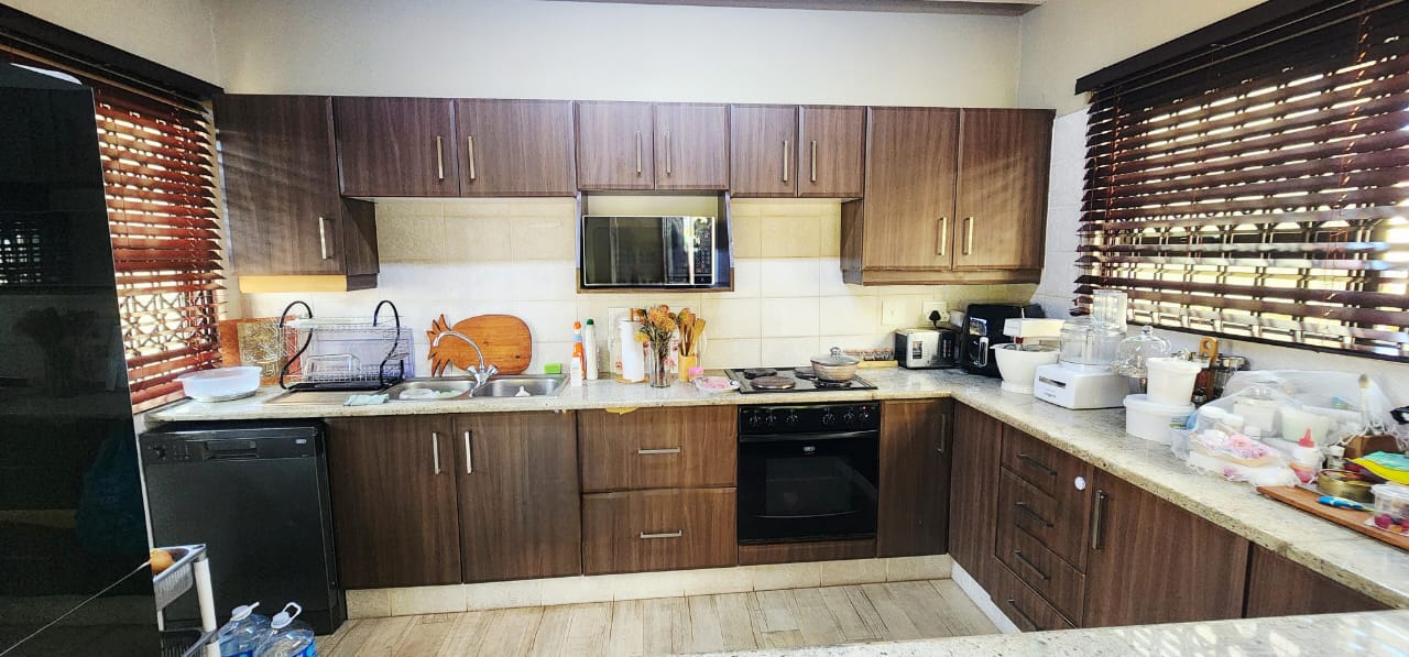 Modern open plan kitchen with granite tops, lots of cupboard space leading to a spacious lounge and dining room area. Sliding doors leading onto patio with Trellidoors throughout the unit for added security.