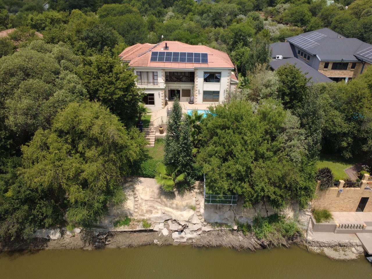 Discover this stunning double storey home nestled along the picturesque banks of the Vaal River, which has an array of impressive features: