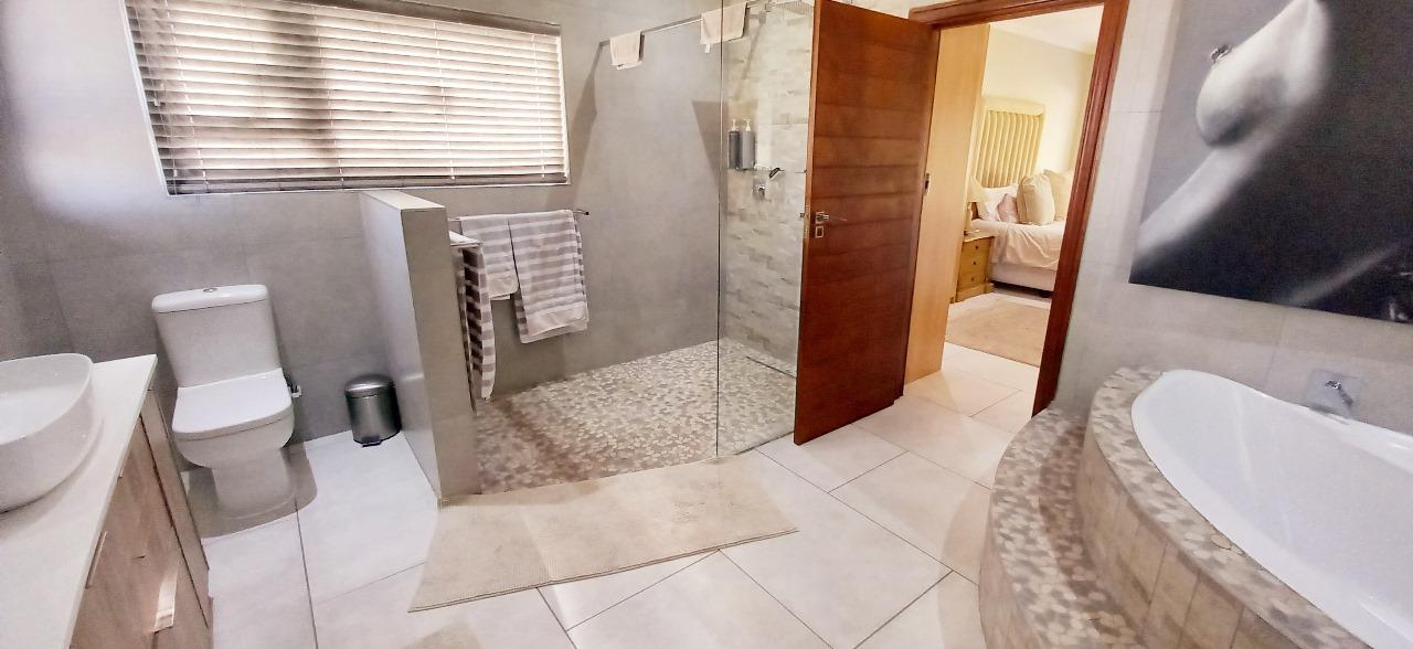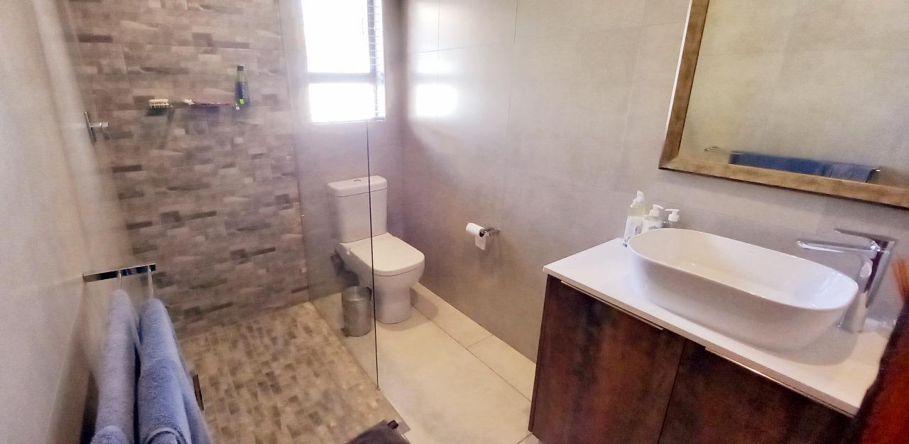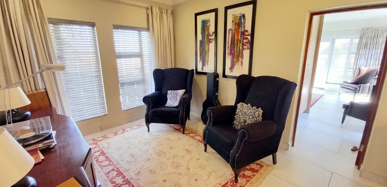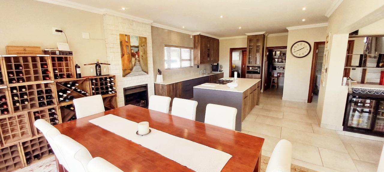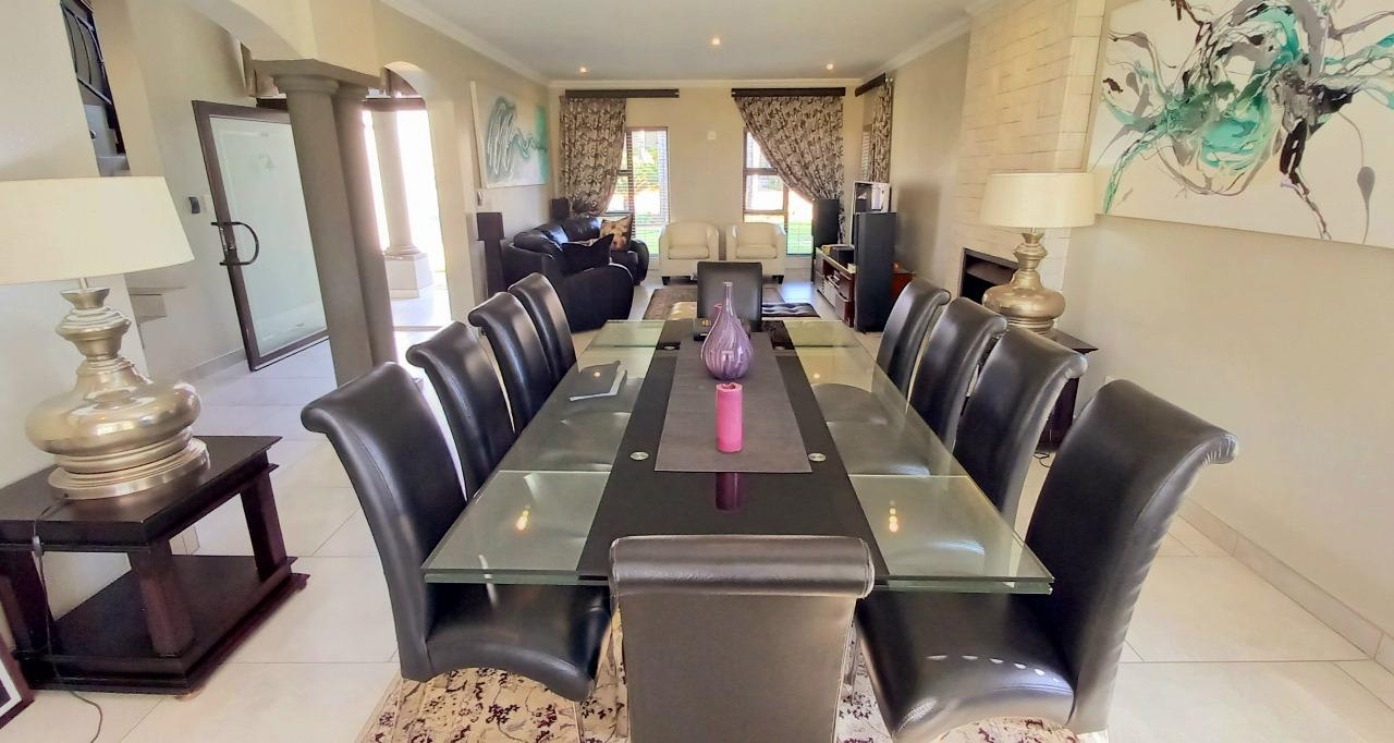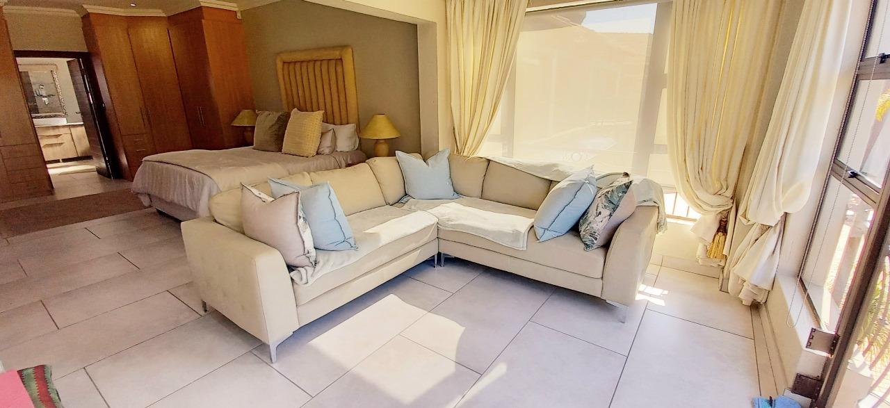Three of the spacious bedrooms offer breathtaking waterfront views, while the main bedroom features a private pajama lounge. The open-plan living area includes a lounge, dining room, modern kitchen with a center island, and a second lounge with a bar and built-in gas braai. With 4 bathrooms (3 en-suite) and cozy fireplaces in each lounge, comfort abounds.