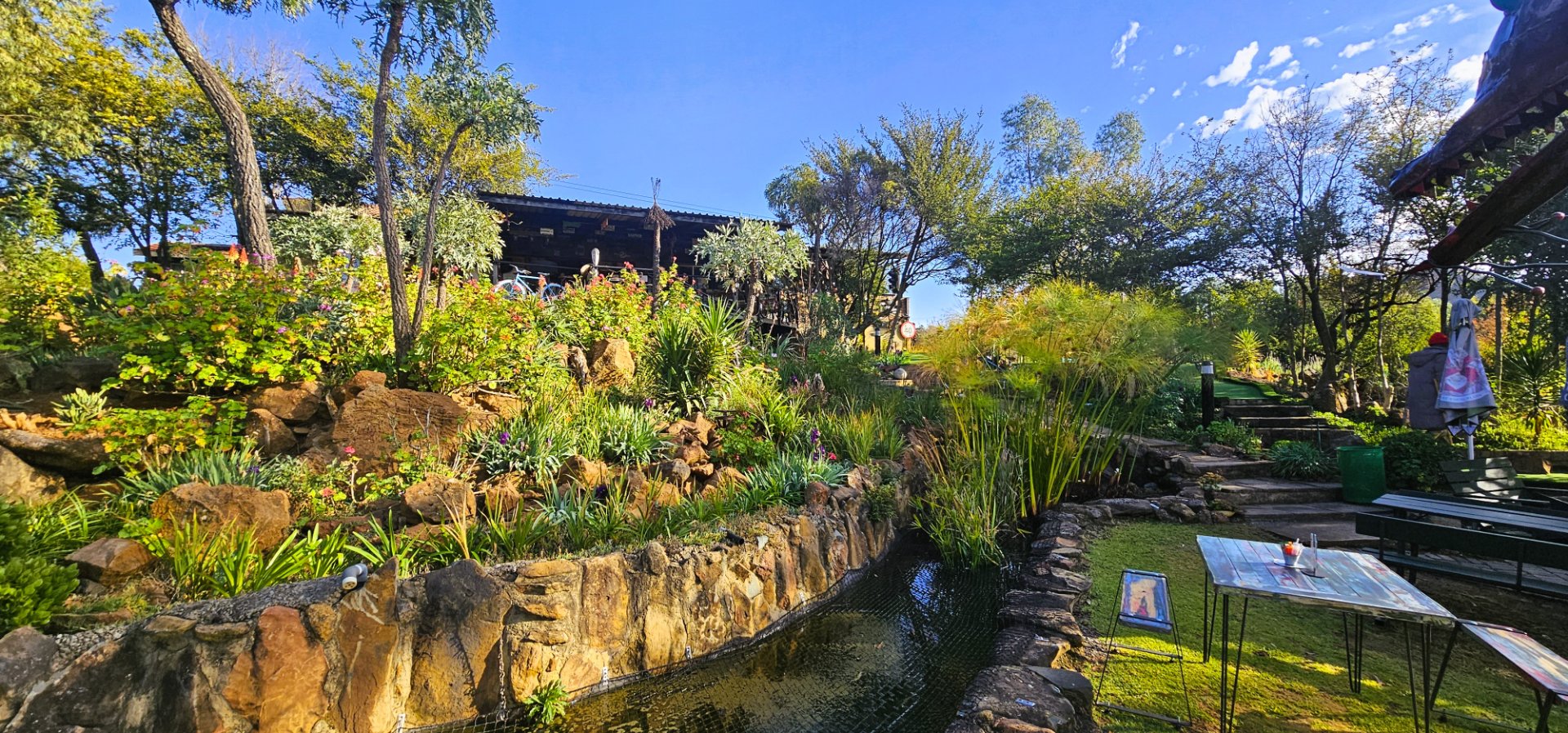 Big, serene koi pond adding to the ambiance