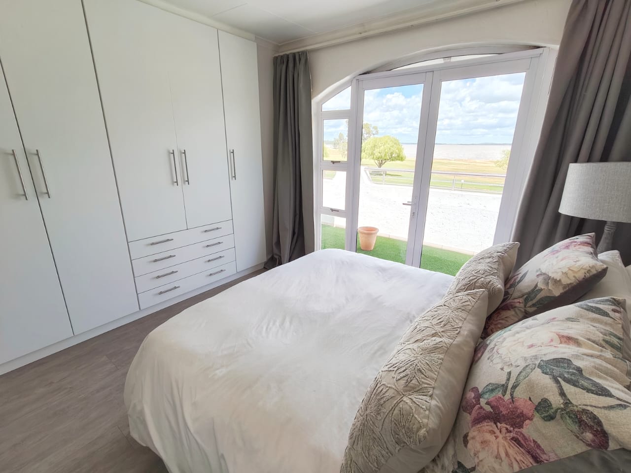 The well-equipped kitchen comes with a stove and air conditioning for year-round comfort. Additional features include a boat locker for storage and easy access to the water, as well as a communal pool for relaxation.