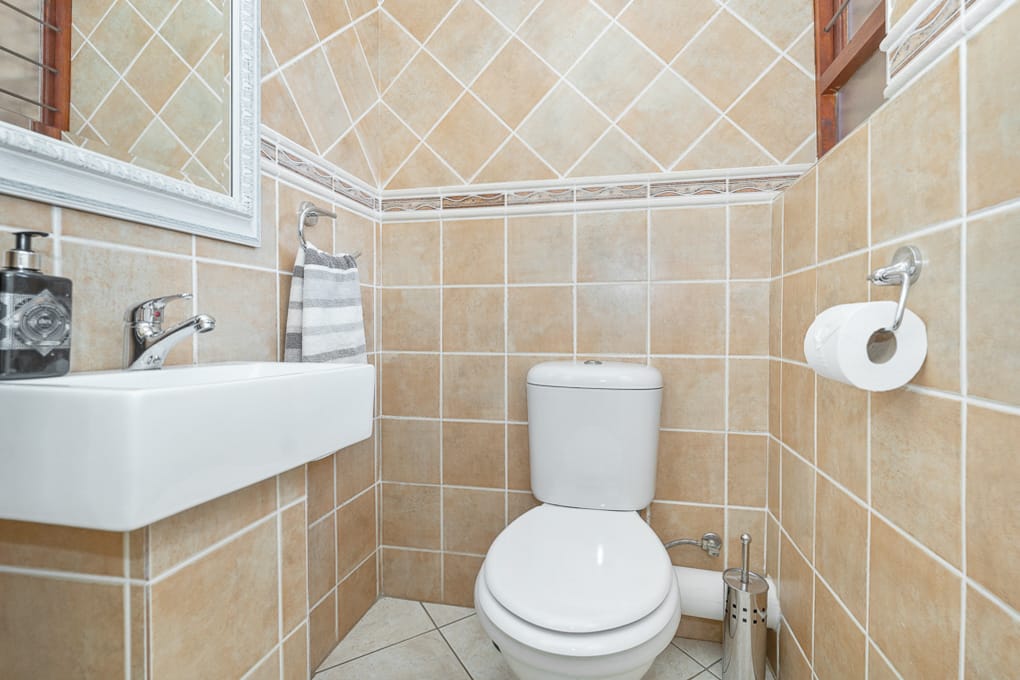 A guest toilet is also available for convenience. The kitchen comes fully equipped with a stove and laundry area. Additional highlights include air conditioning, a cozy fireplace, and elegant French doors that open to the outside. Enjoy outdoor living with a refreshing pool, making this property an ideal family home.