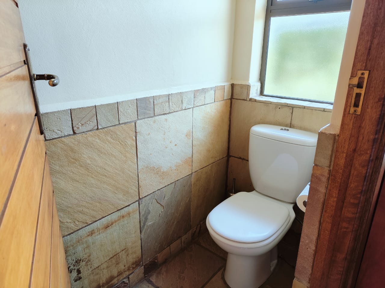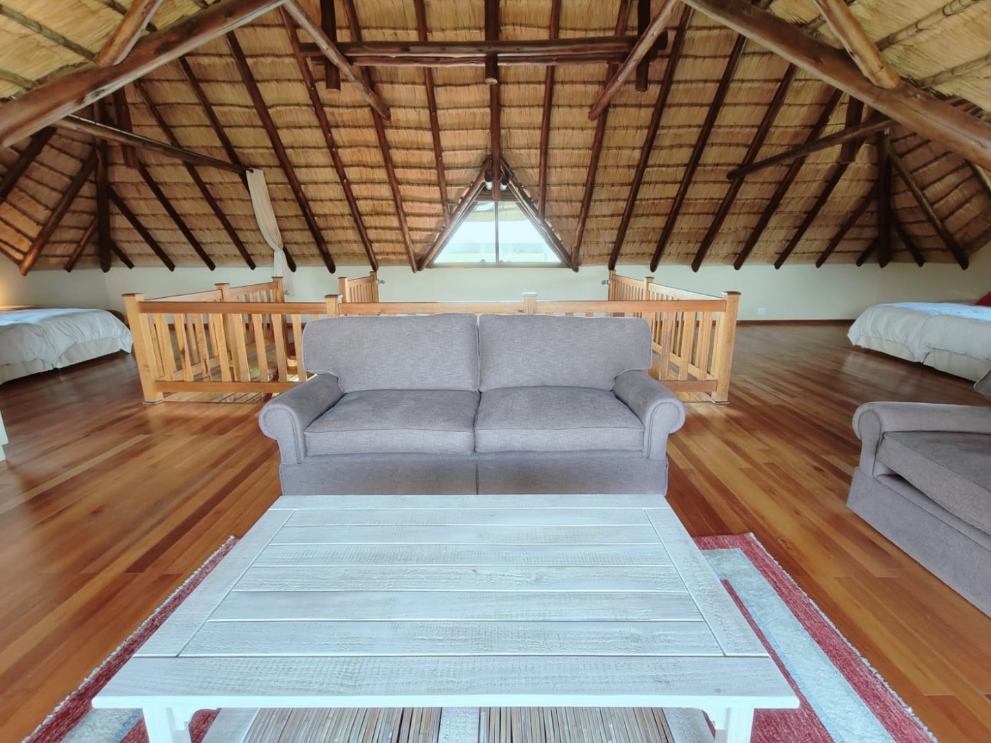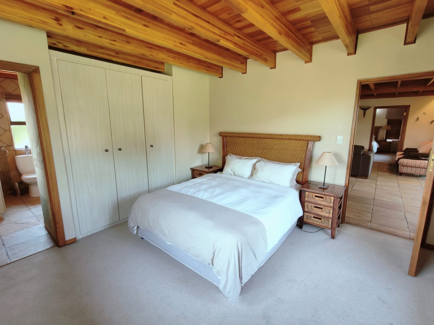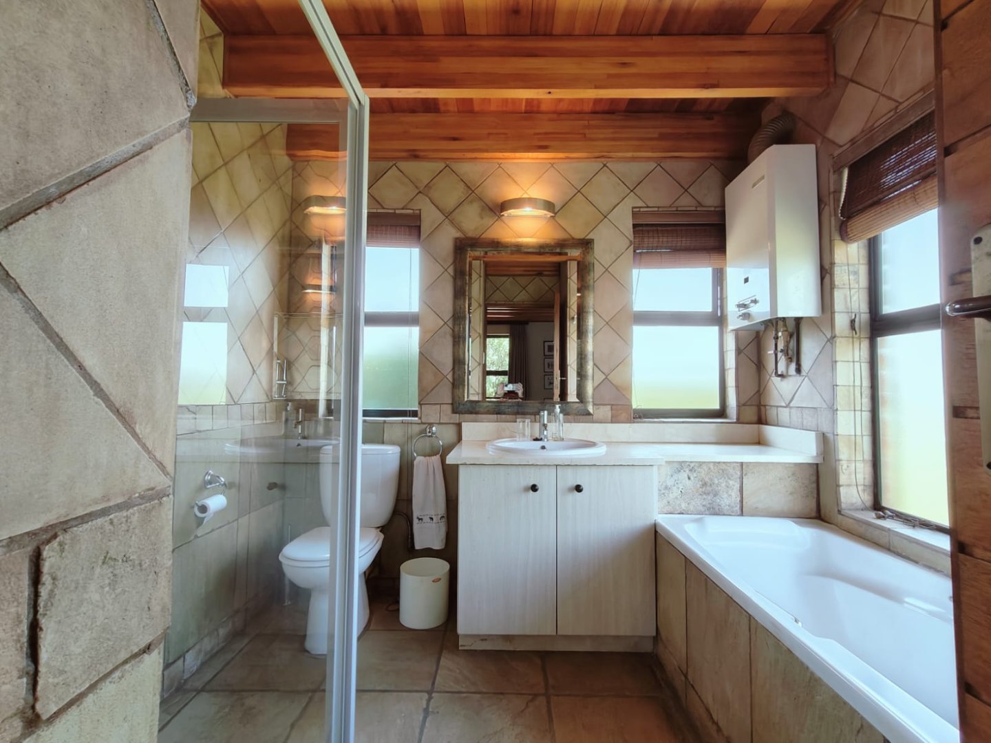 This rustic style thatched house consists of, 4 bedrooms, 2 bathrooms, both bedrooms are en-suite and a guest toilet. The ground floor has 2 bedrooms leading off the living area and out onto a undercover patio.
