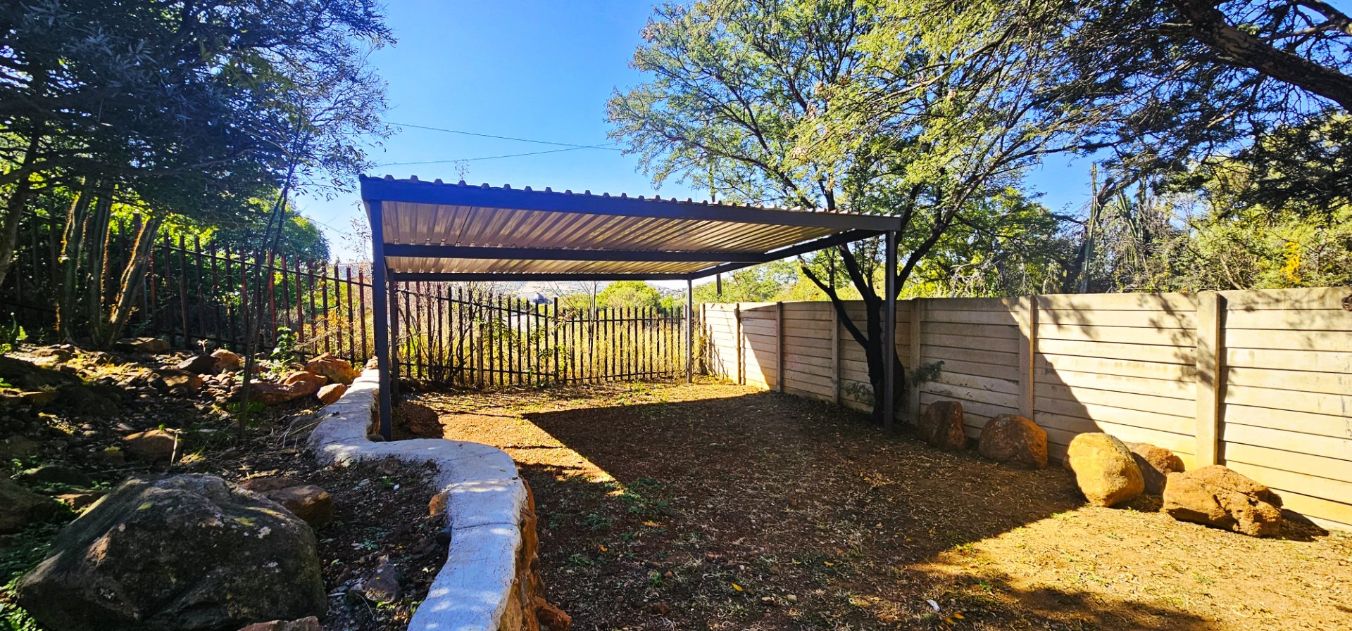 Two large undercover carports with corrugated iron roofing