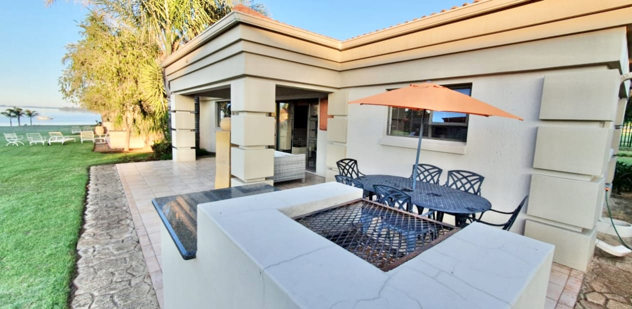 Step outside to a covered patio that opens onto lush green lawns, leading you down to the pristine waterfront. Enjoy unforgettable sunsets, an outdoor built-in braai, and a private boat locker – making this the ultimate weekend retreat or permanent lakeside lifestyle.