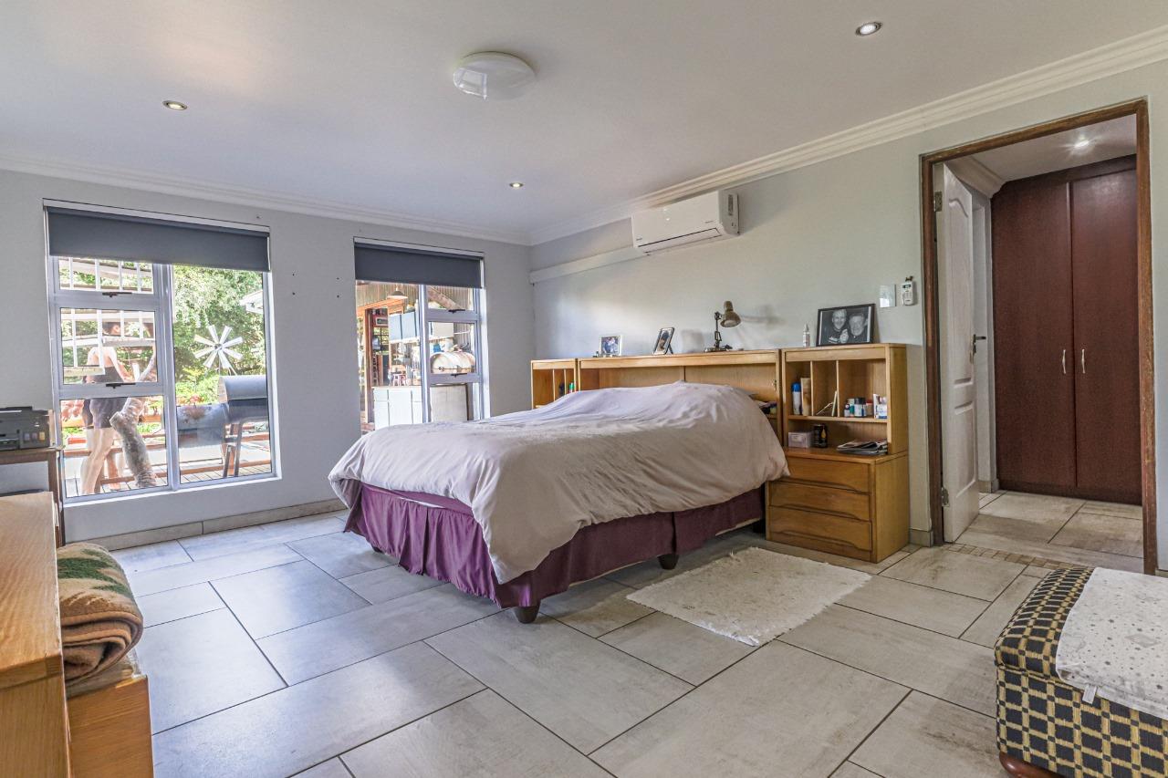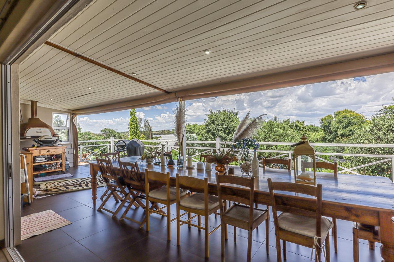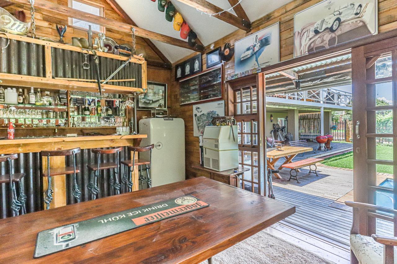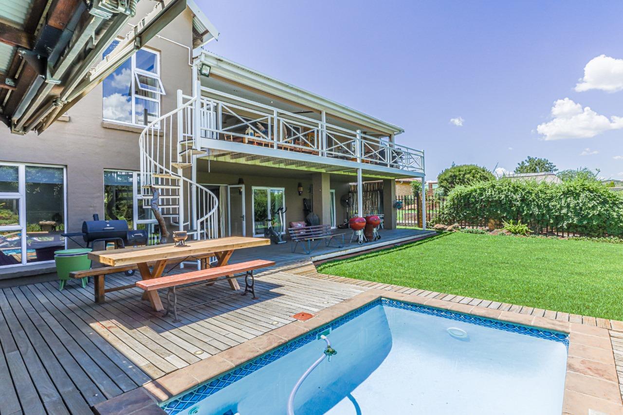 Designed for luxury and comfort, the open-plan kitchen, dining room, lounge, and patio with a built-in braai provide the ideal space for entertaining. The residence features four elegant bedrooms and three stylish bathrooms, including two en-suite. Outdoors, relax by the sparkling pool, enjoy the bar and braai room, and take in the views of the lush garden.