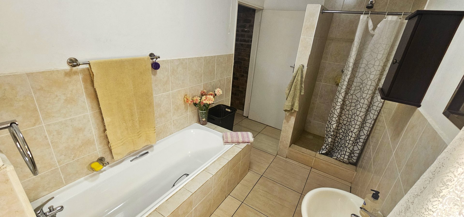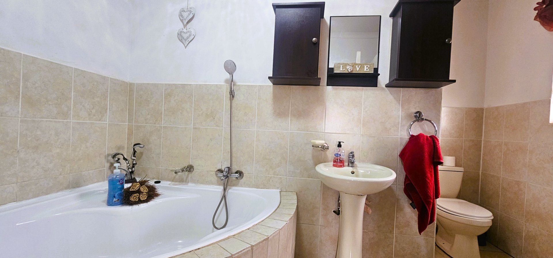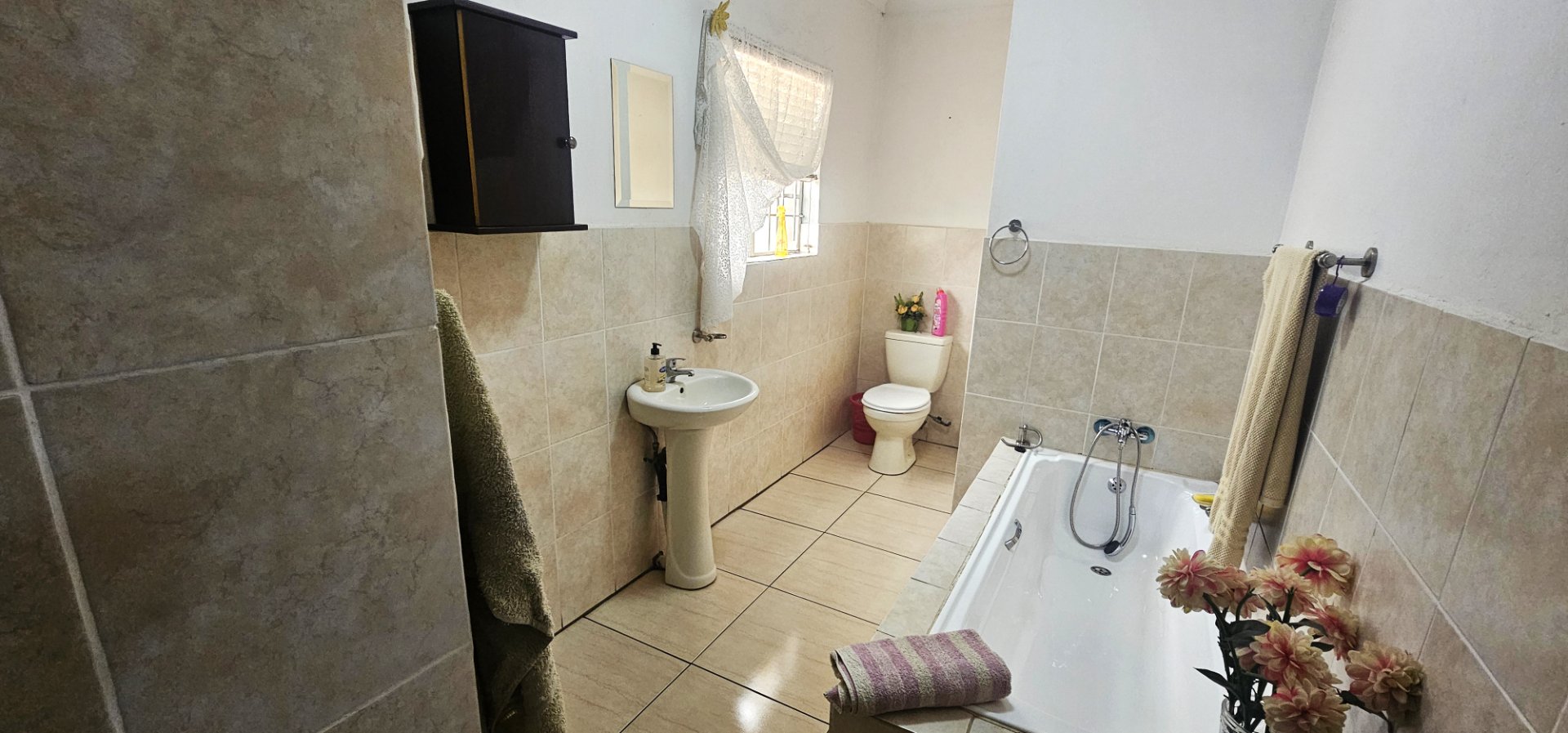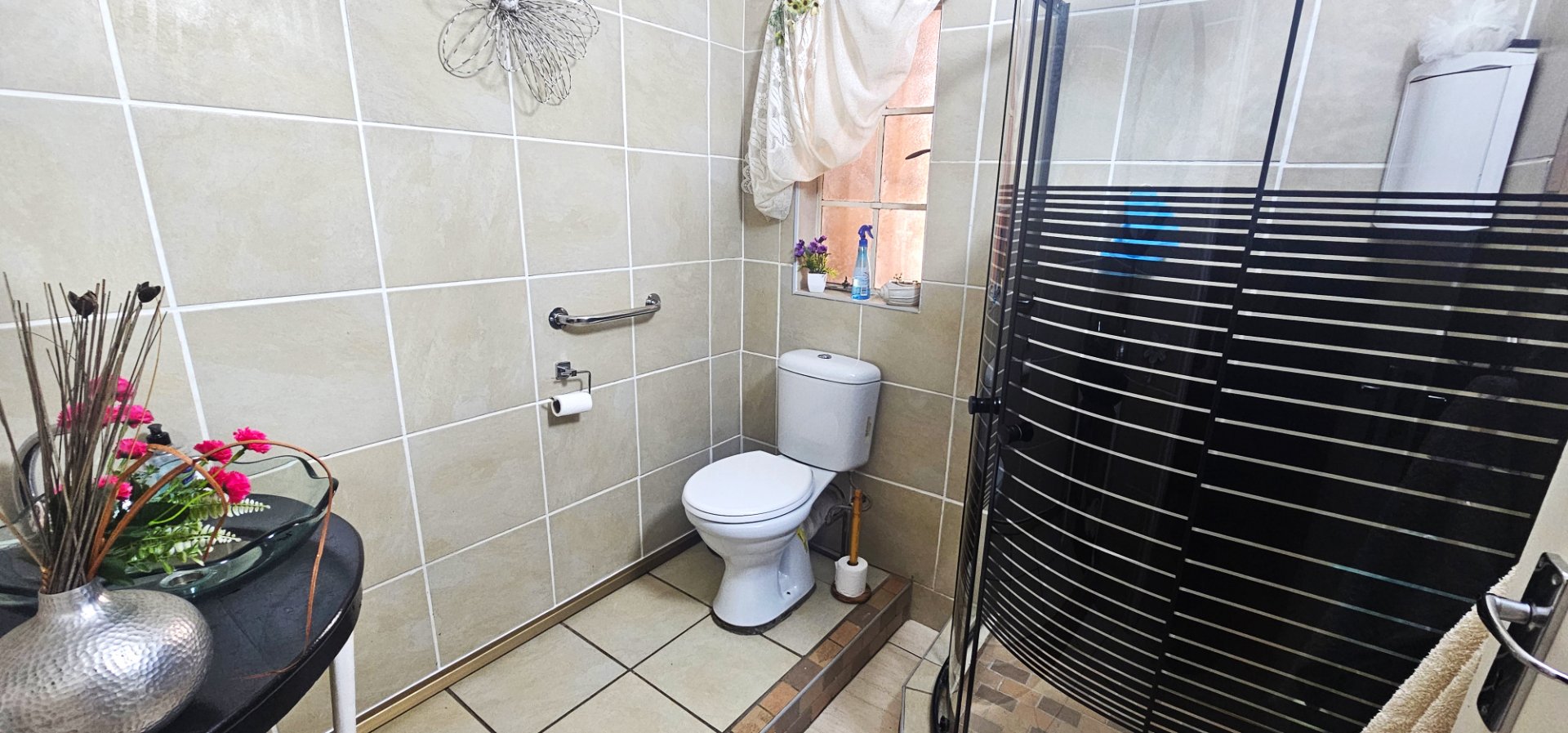 Downstairs: 2 spacious bedrooms with a shared bathroom (shower, toilet, and basin).