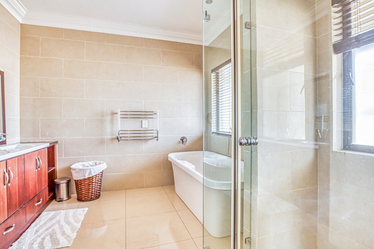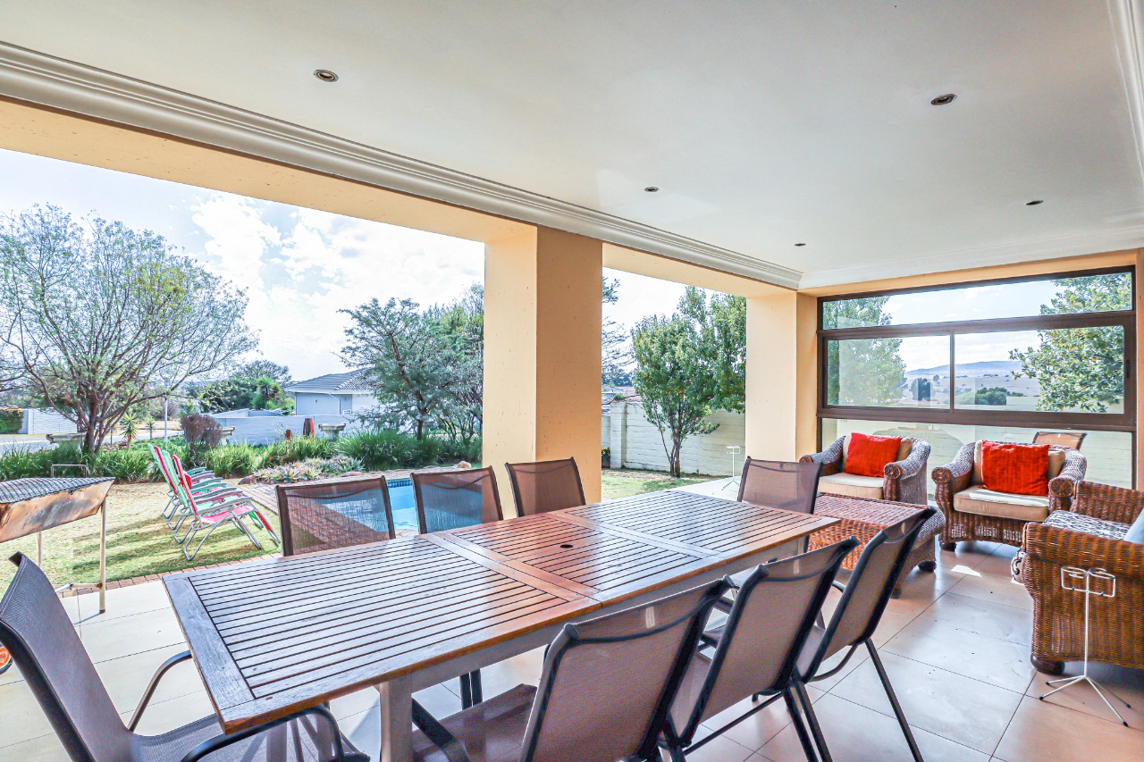 Step inside and be welcomed by modern finishes and light-filled open-plan living spaces designed for effortless family living and entertaining. The expansive lounge, complete with a cozy fireplace, flows seamlessly into the undercover patio/entertainment area, featuring a built-in braai and stacking doors that open to the lush garden and sparkling pool. Whether it’s intimate family evenings or weekends with friends, this home sets the stage for unforgettable moments.