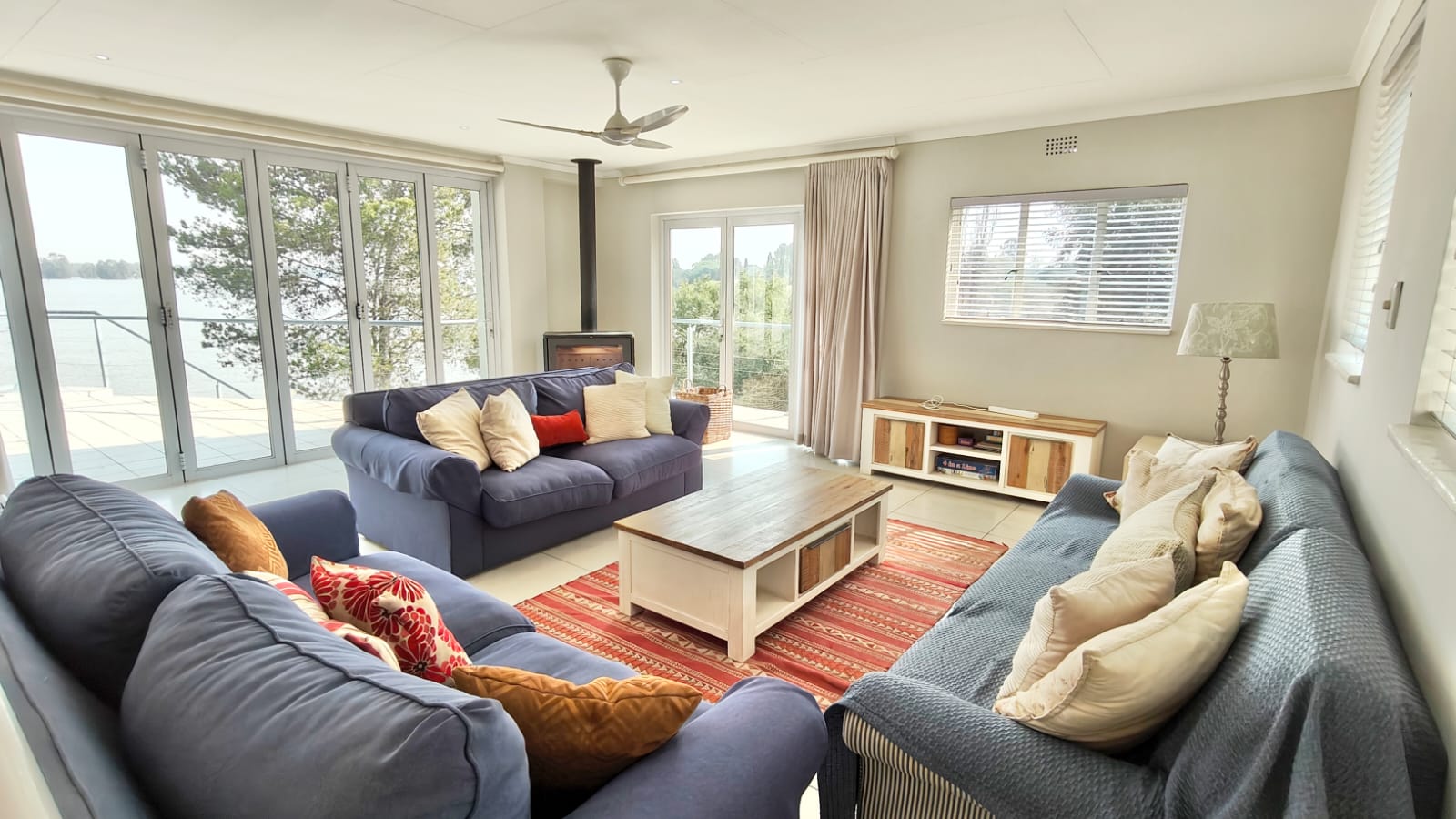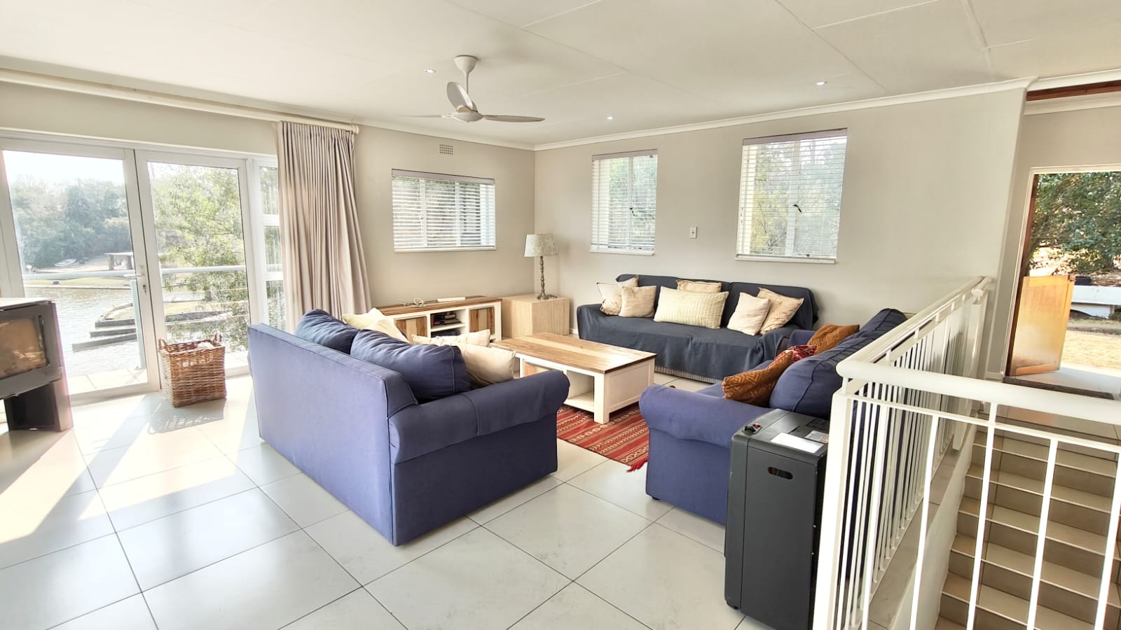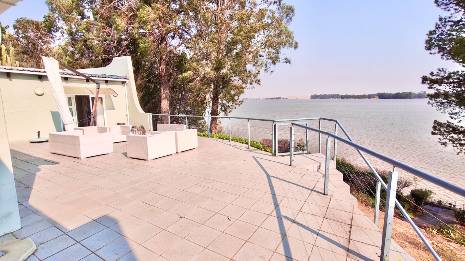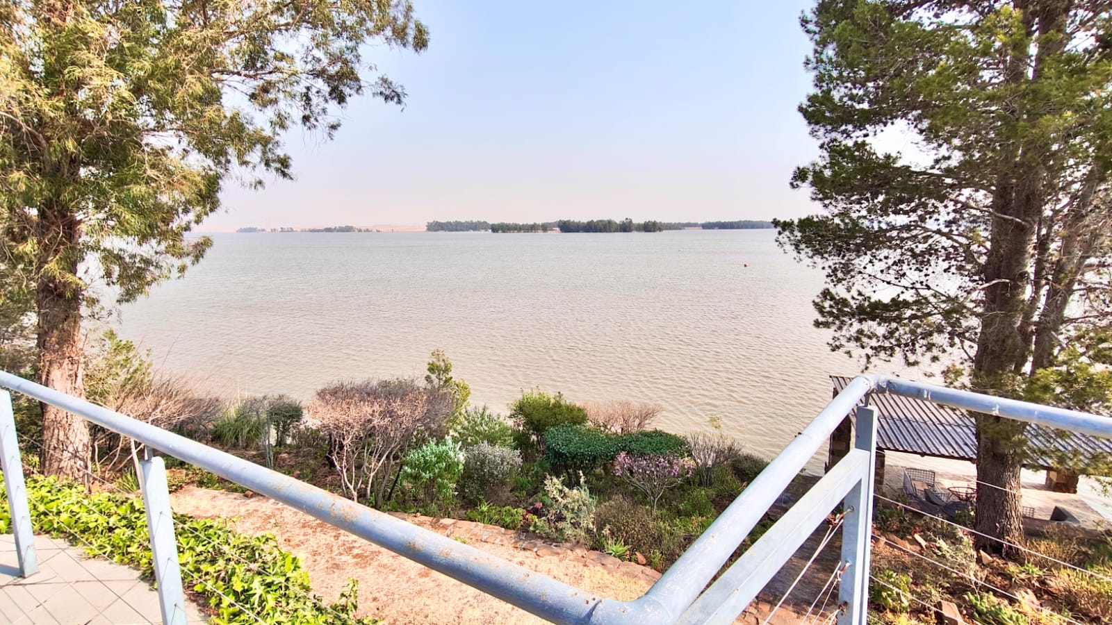 This rare 4-bedroom, 3-bathroom home with a guest toilet has been thoughtfully designed for both relaxation and entertaining. The lounge features a cozy fireplace, opening up to a expansive, patio with panoramic water views of the magnificent Vaal dam, perfect setting for unforgettable evenings with family and friends.