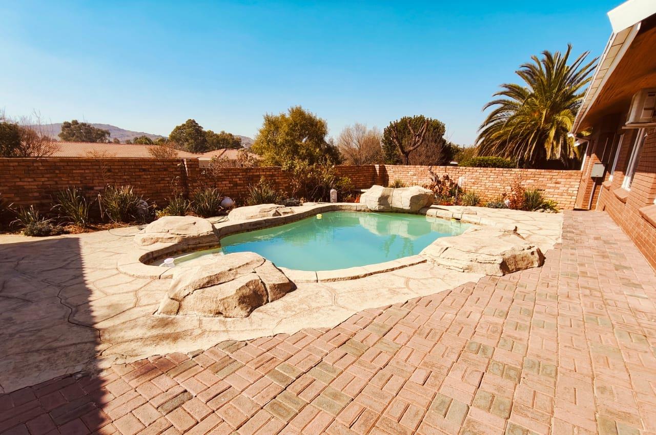 The entertainment area, double garage, and carports add convenience, with a sparkling swimming pool overlooking a beautifully maintained garden. The property is fully walled with an automated gate for added security.