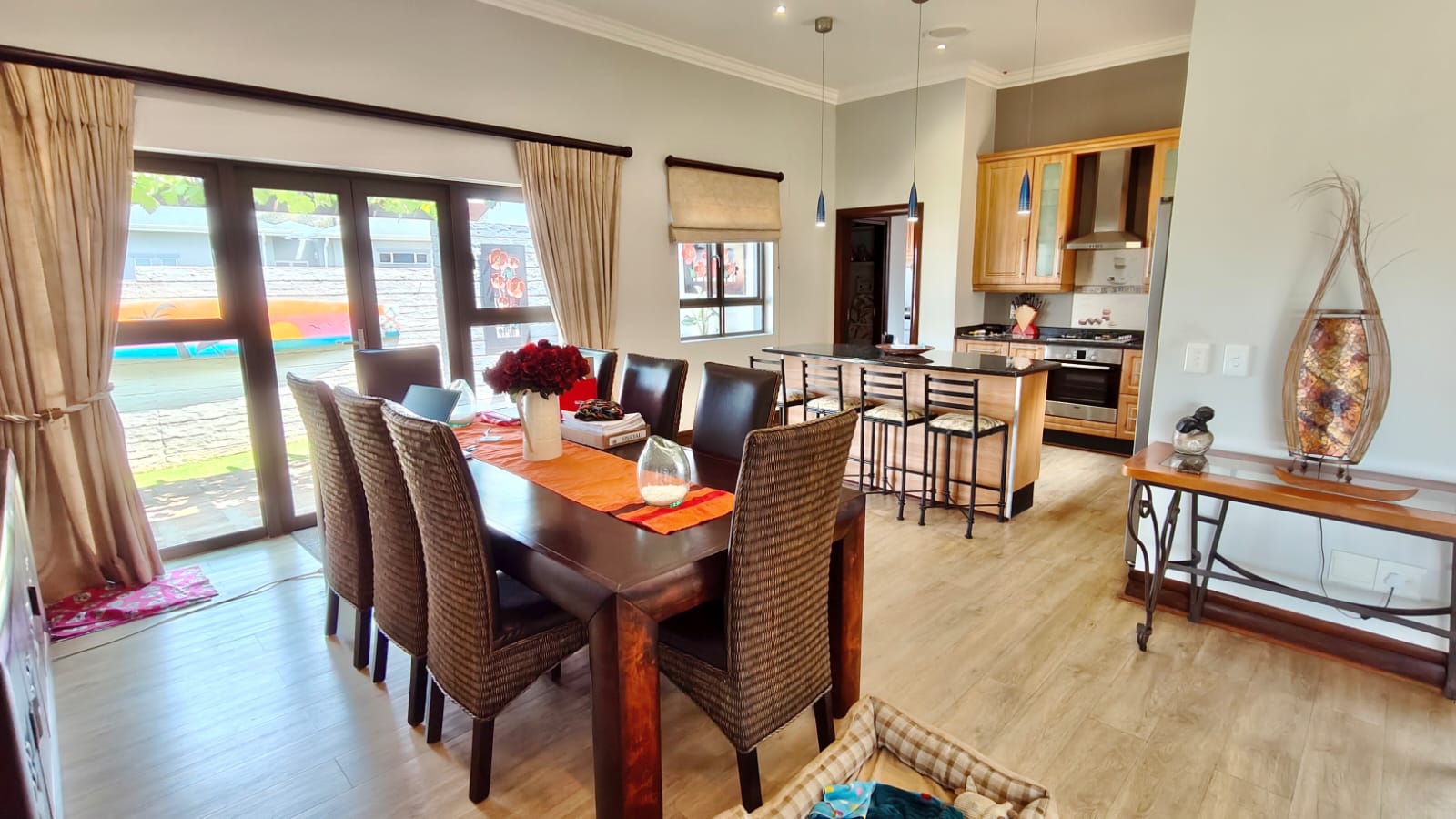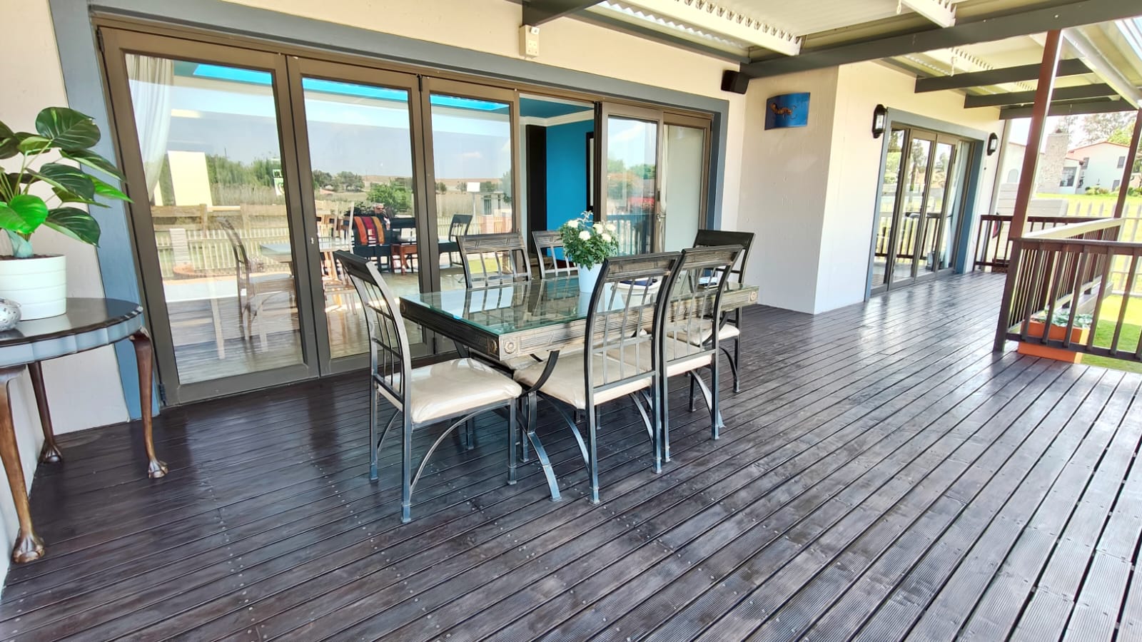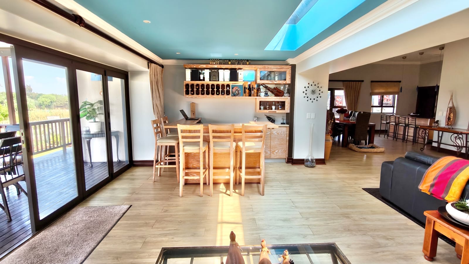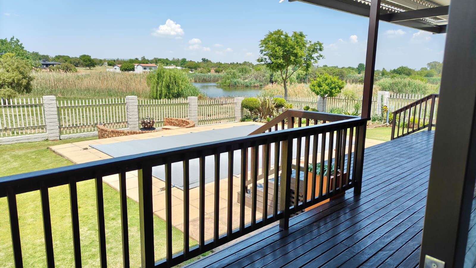 Step inside to discover a stylish open-plan layout featuring a modern kitchen with granite tops, pantry, and scullery. The spacious dining and lounge areas flow seamlessly onto an enclosed patio and bar, opening to a wooden deck, heated pool, and manicured garden — ideal for entertaining or simply enjoying tranquil sunsets over the duck pond.