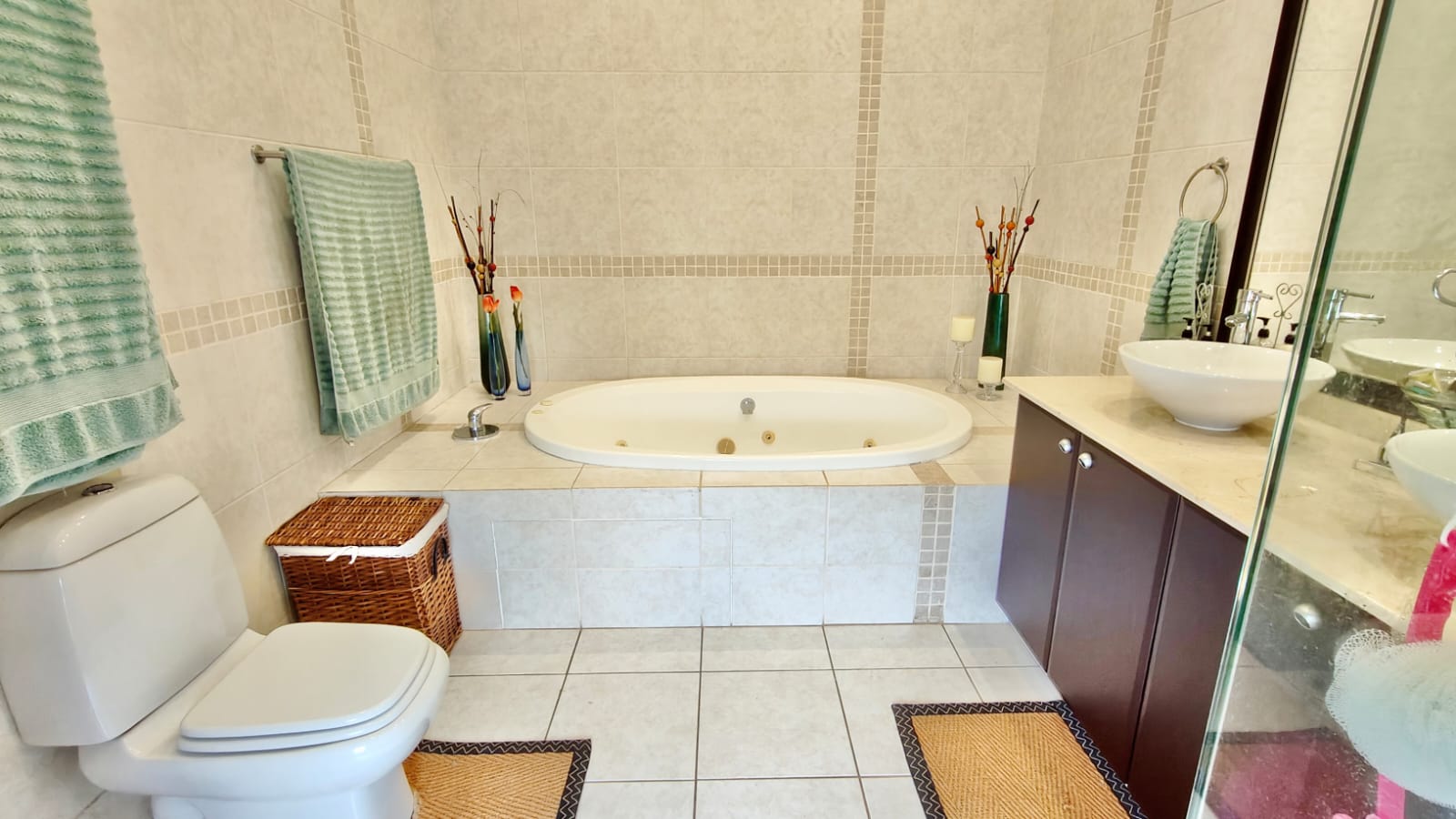 The master and guest bedrooms are both en-suite, with a convenient guest toilet for visitors. The home also offers a separate laundry, an extended double garage large enough to house your boat, and a 5kW Deye solar system with 8 panels for energy efficiency.