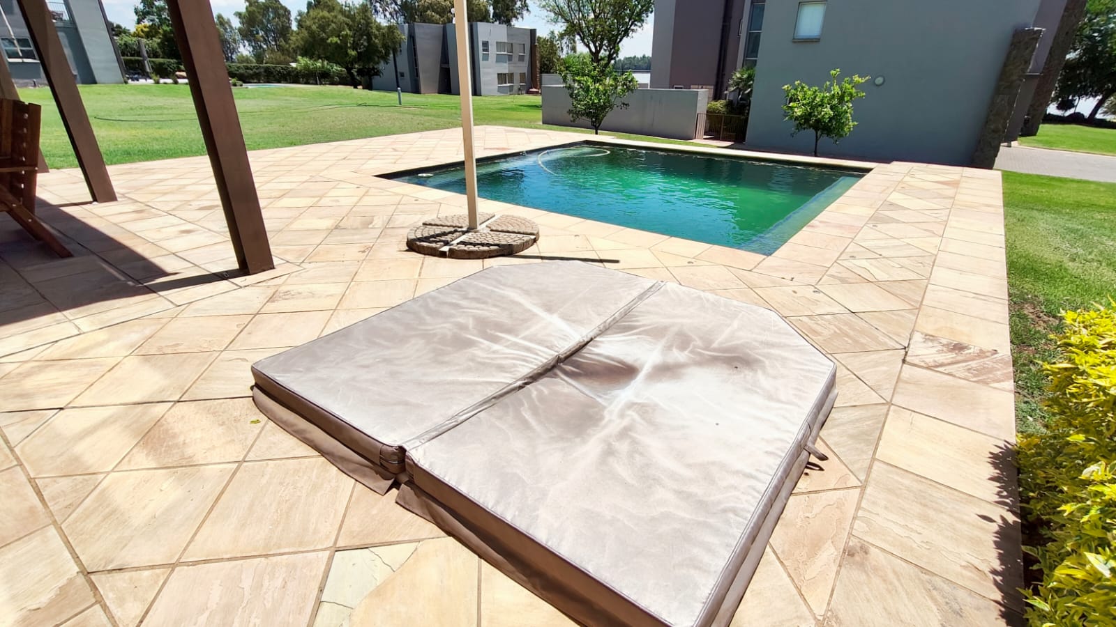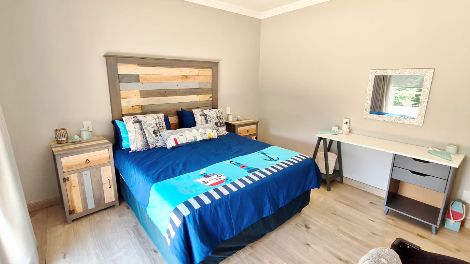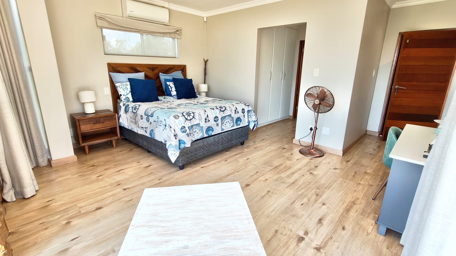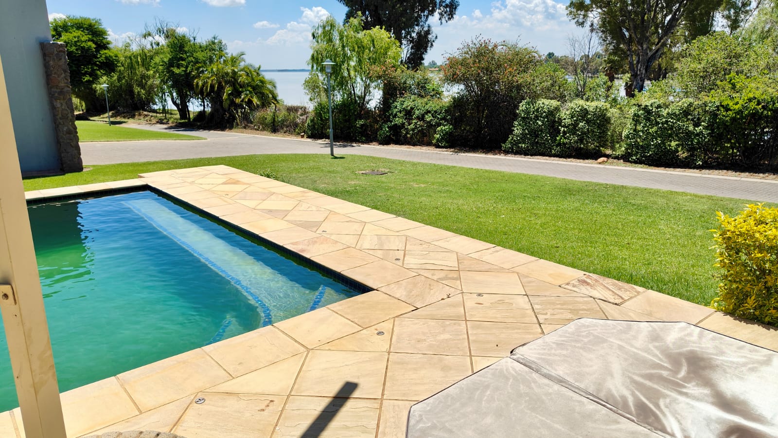 The home offers open-plan living with elegant finishes and plenty of space for both relaxation and entertaining. The lounge with a cozy fireplace flows seamlessly into the dining area and a modern, fully fitted kitchen — a true chef’s delight. Sliding doors lead out to a covered patio with a built-in braai, overlooking the dam and offering the perfect setting for tranquil mornings or sunset gatherings.