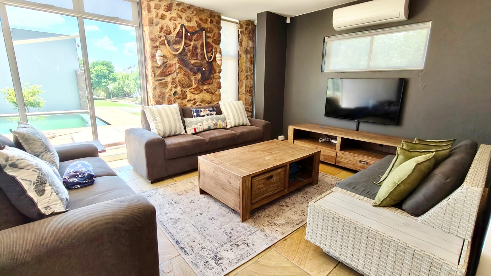 Upstairs, three of the bedrooms open onto a balcony with spectacular dam views. The main bedroom is en-suite, while the remaining bathrooms are modern and well-appointed.