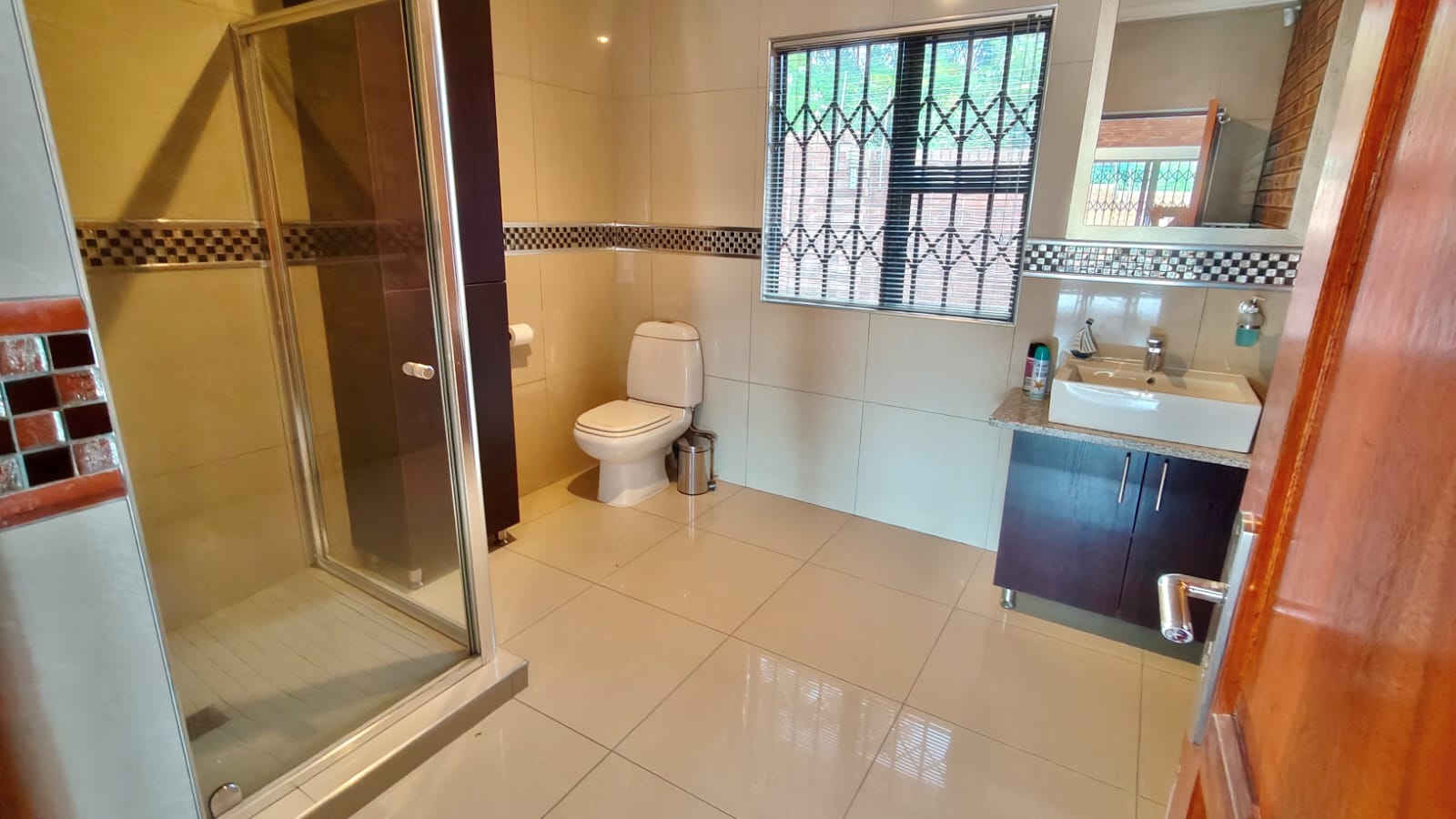 All bedrooms include built-in cupboards. The main suite is a private retreat with a full en-suite bathroom featuring a jacuzzi bath.