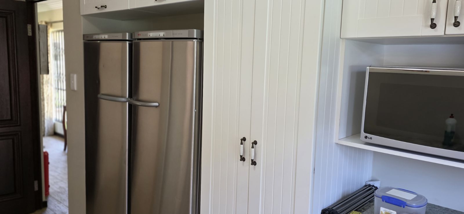 A gourmet kitchen with high-end finishes and a separate washing-up/scullery area