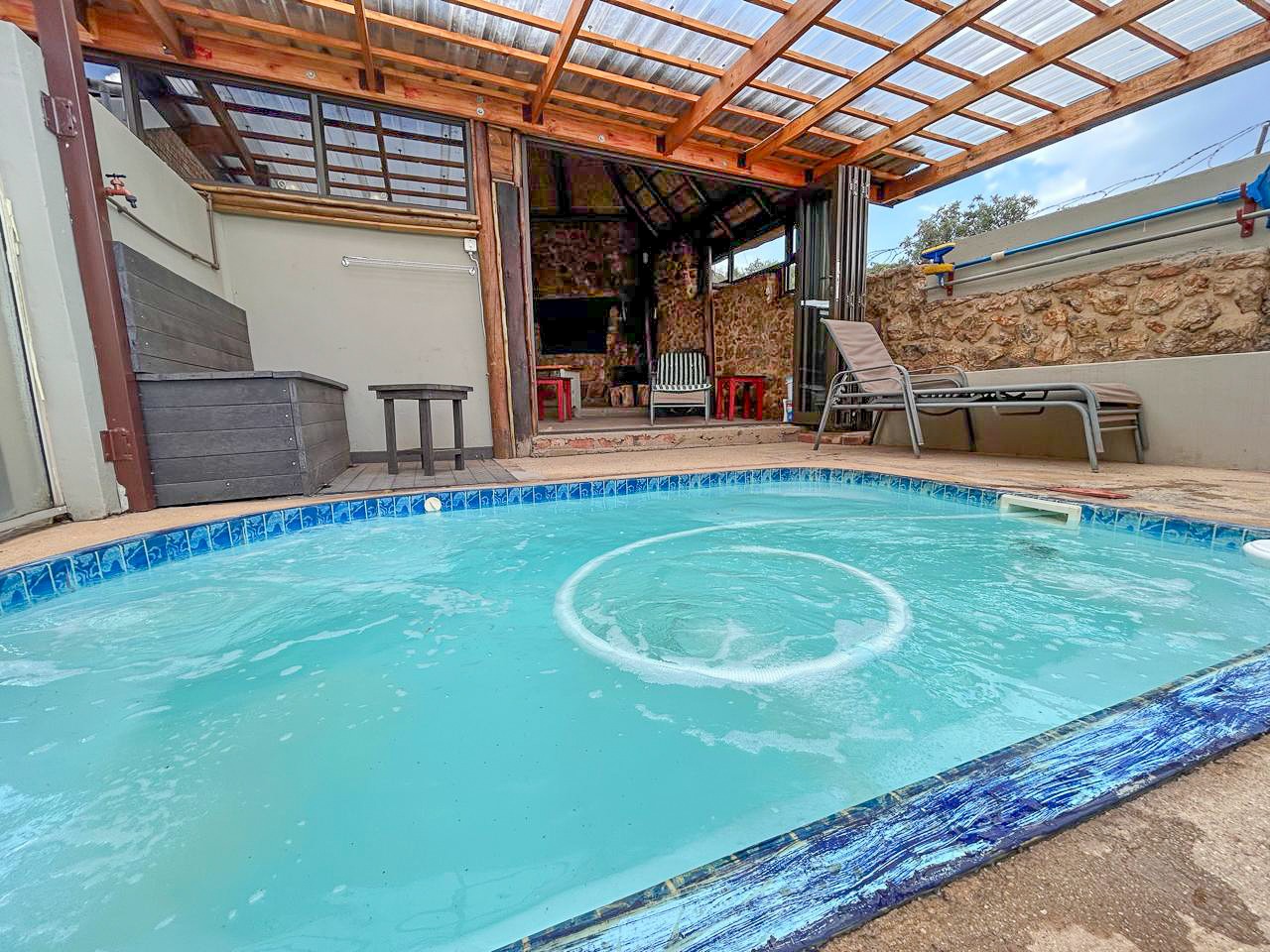 An enclosed lapa with a built-in braai provides an ideal space for year-round entertaining, seamlessly blending indoor and outdoor living. Outside, a braai area and sparkling splash pool create a peaceful oasis, perfect for relaxation and family gatherings.