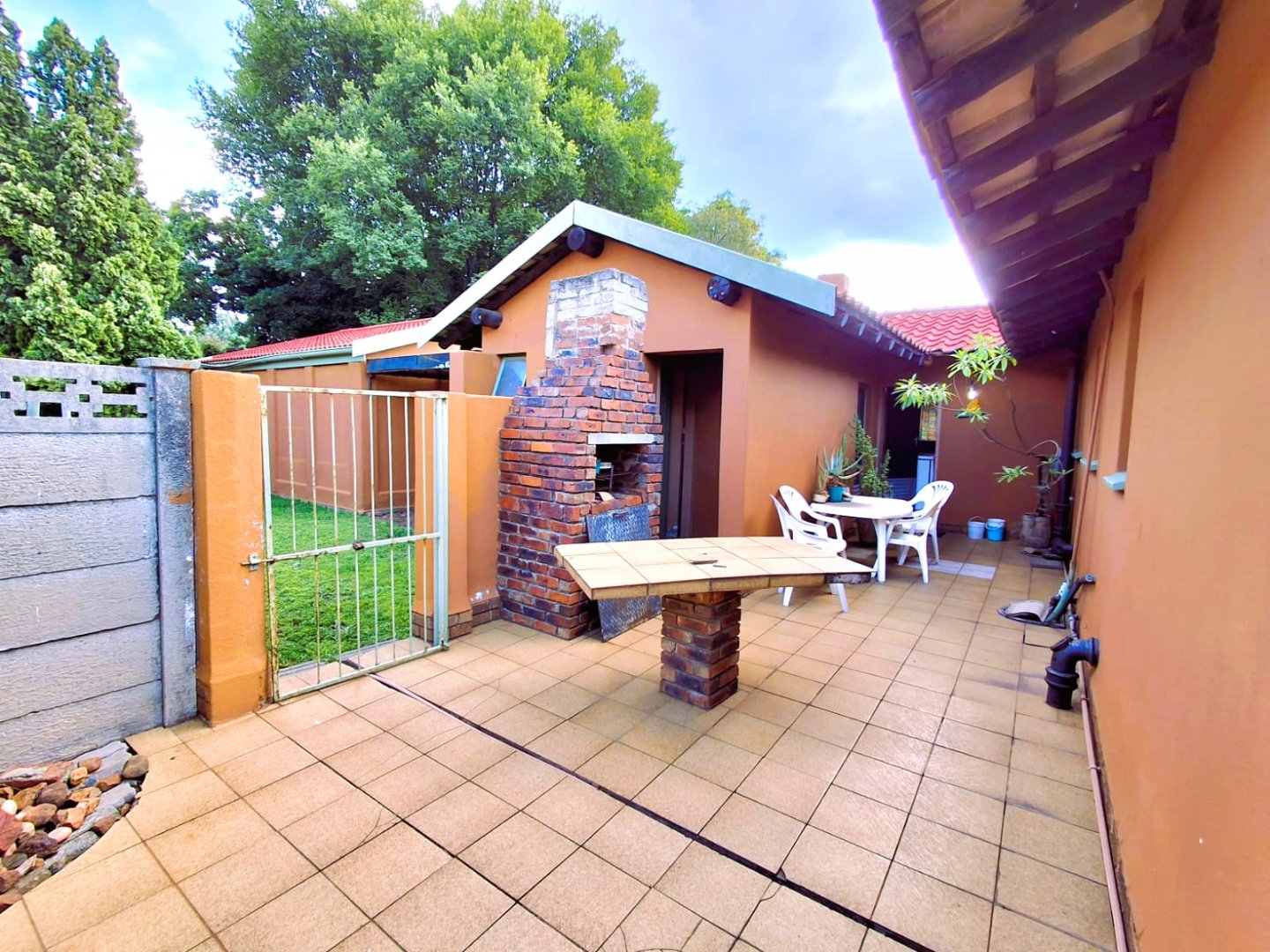 Large garden with an outdoor braai area