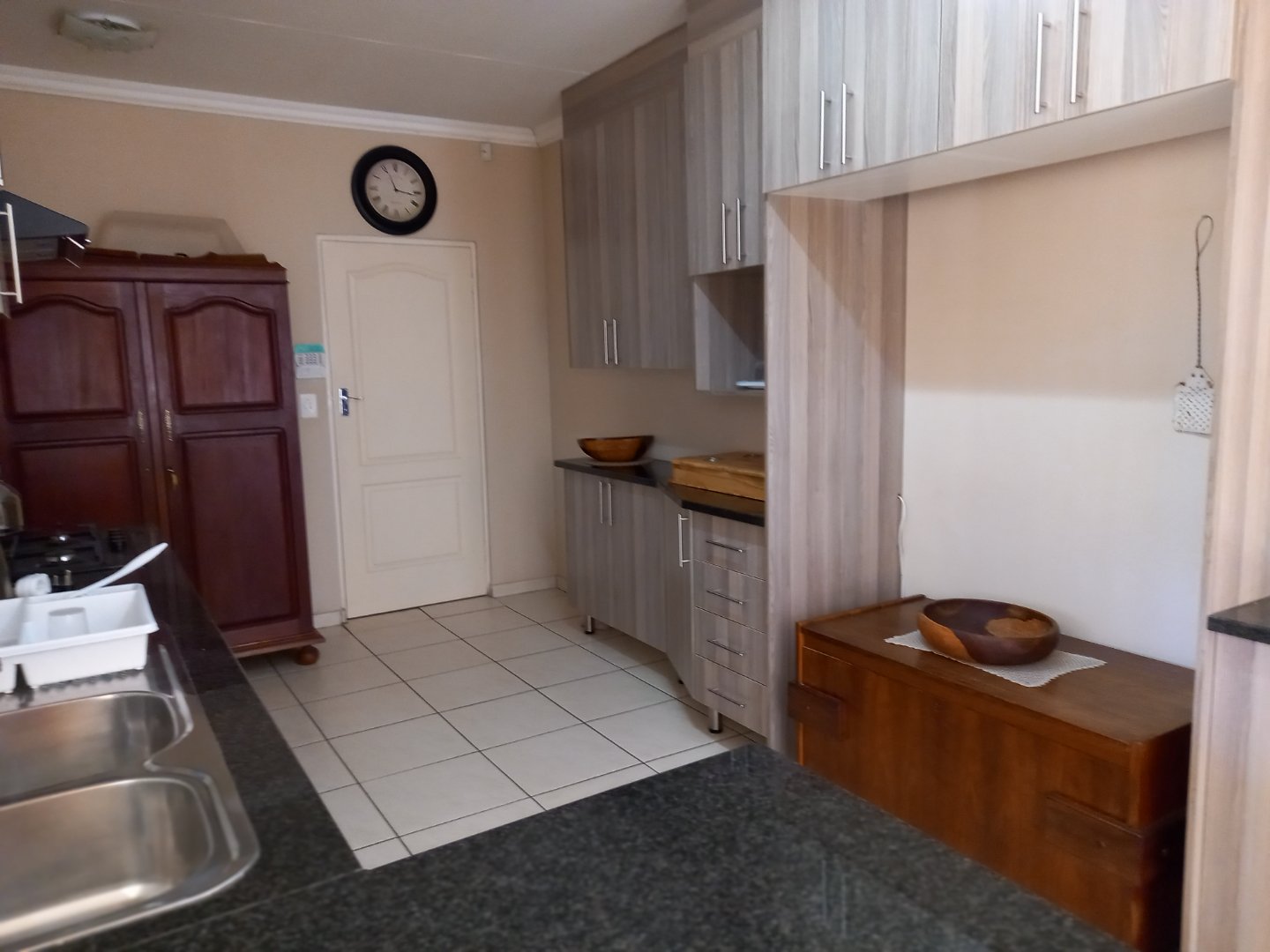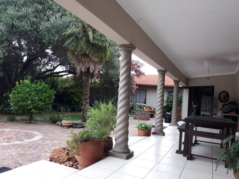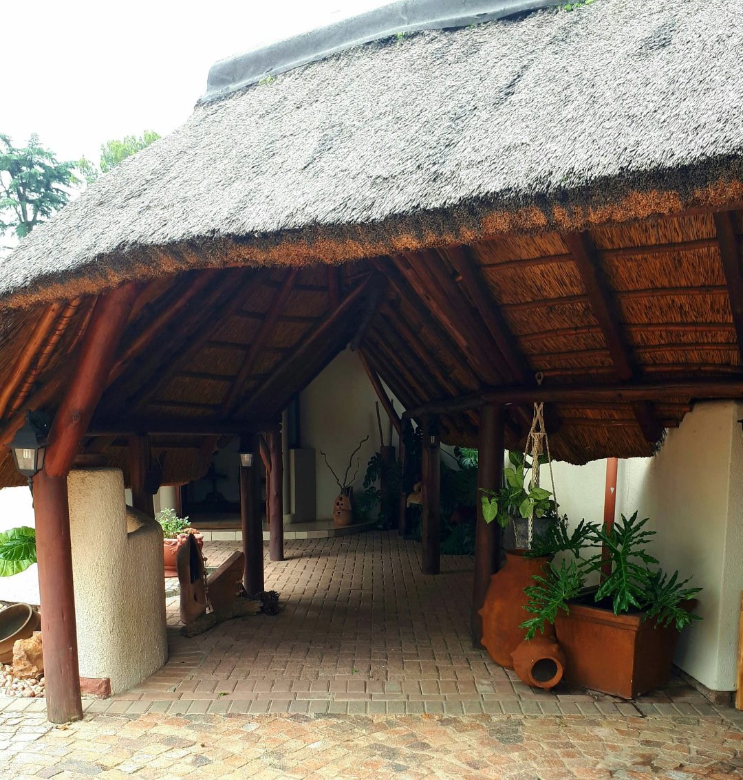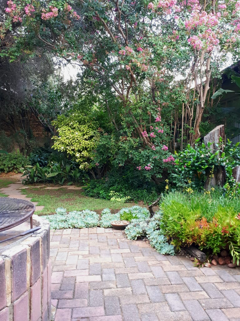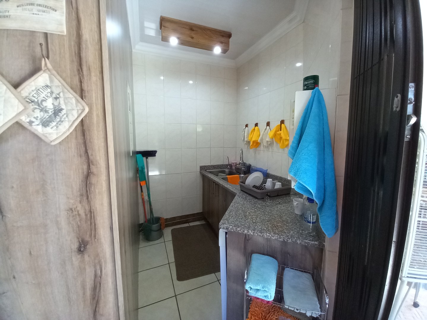 The garage has been converted into a workshop at the back of the house. A big lapa provides parking space for three vehicles in front of the yard.