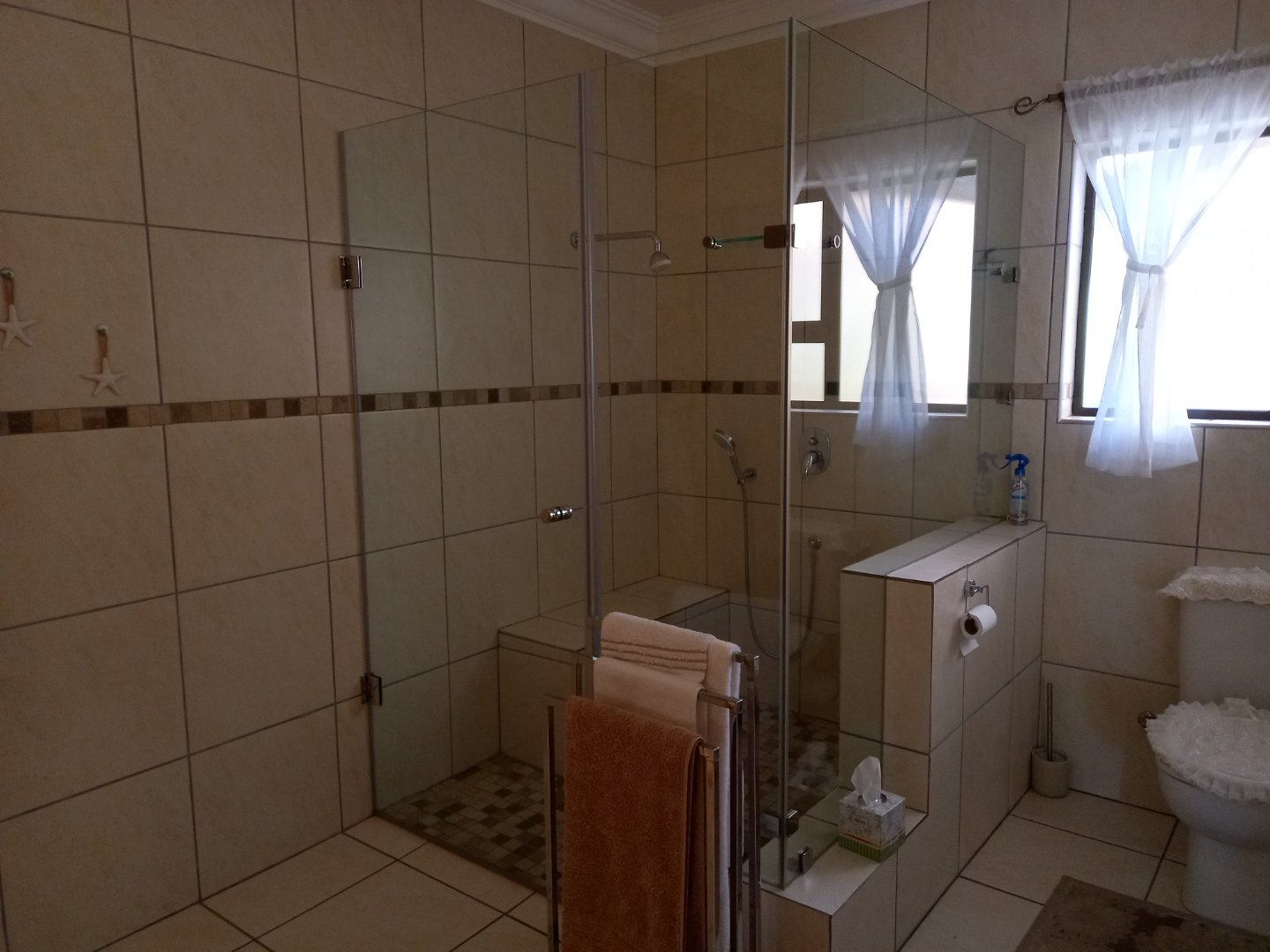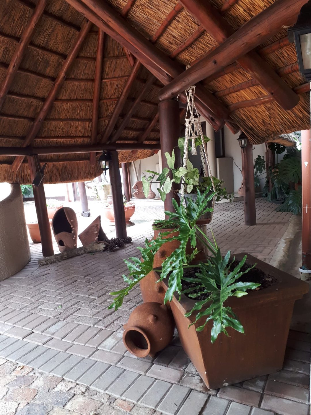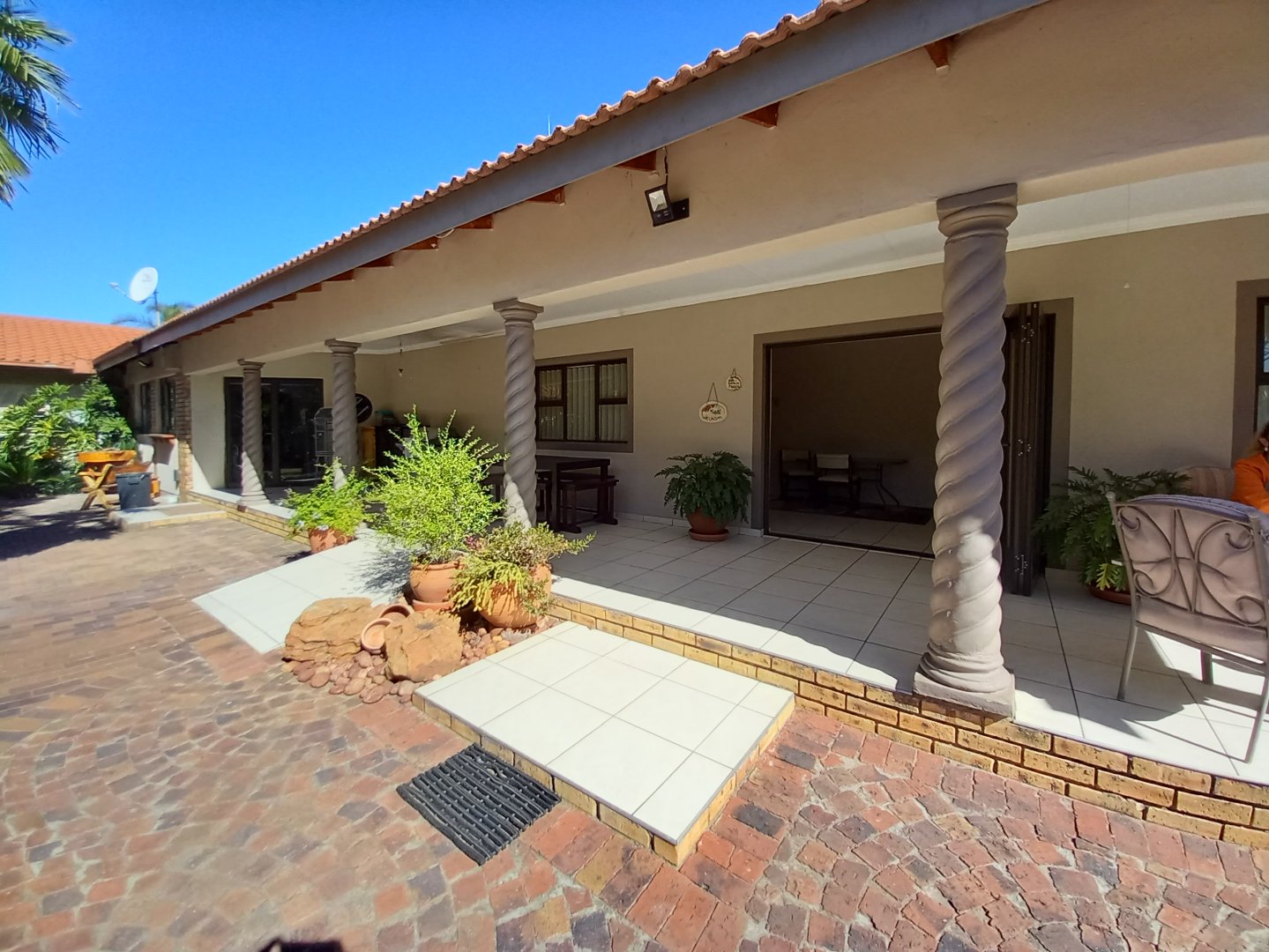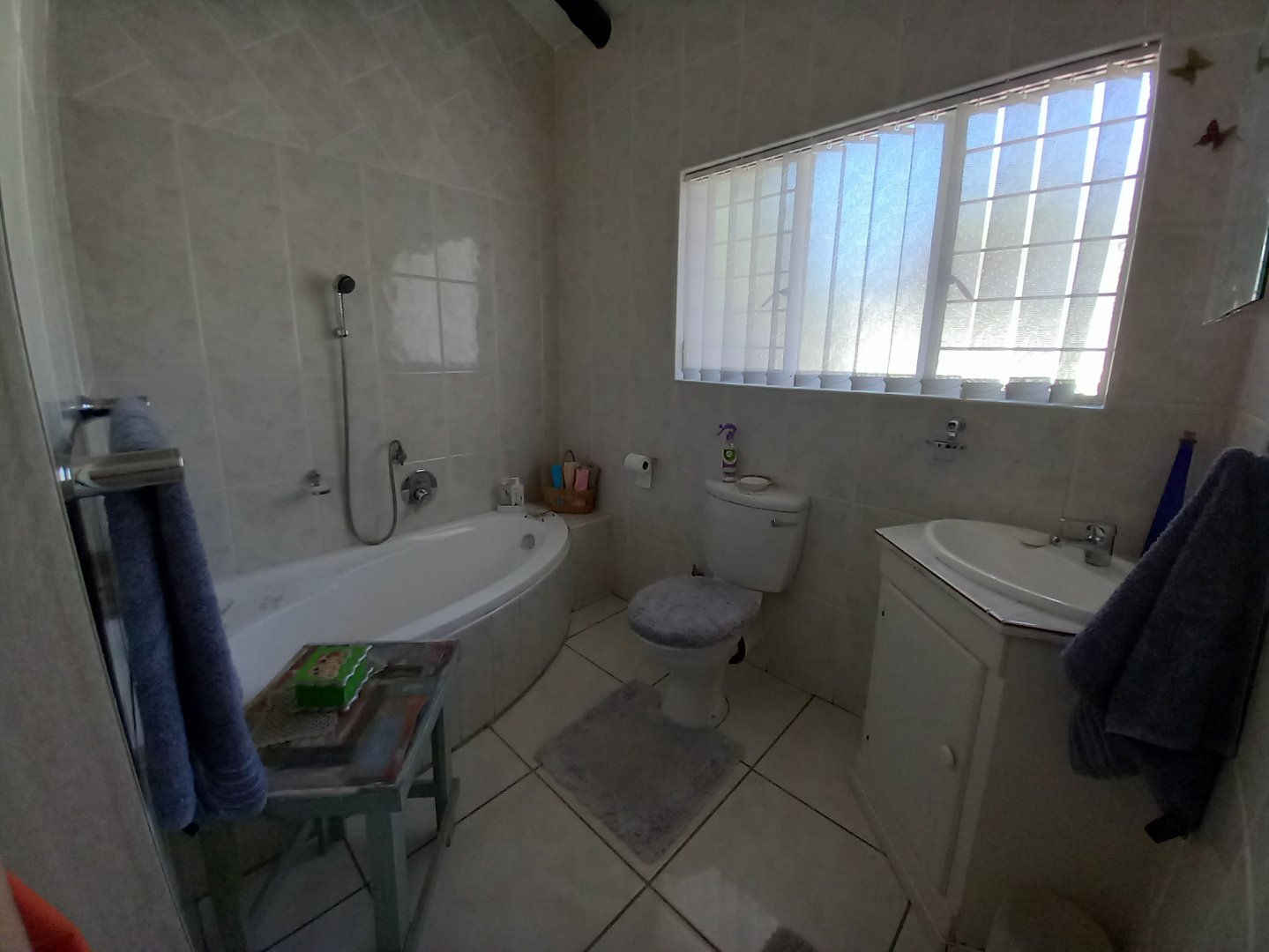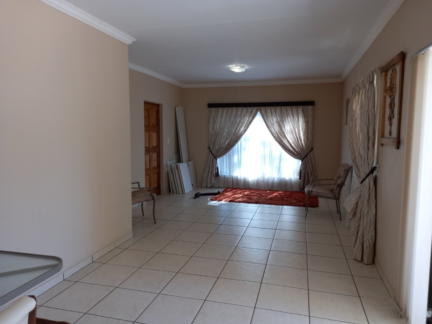 The garage has been converted into a workshop at the back of the house. A big lapa provides parking space for three vehicles in front of the yard.