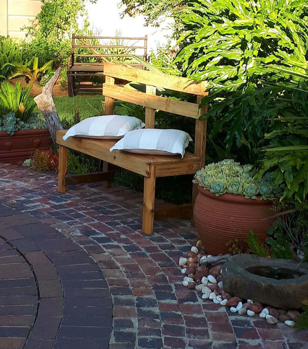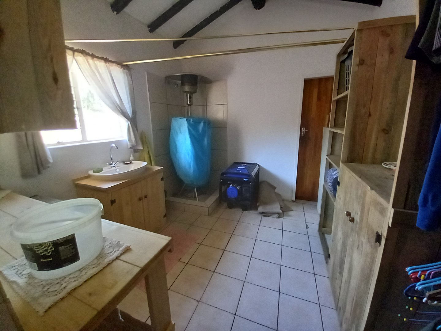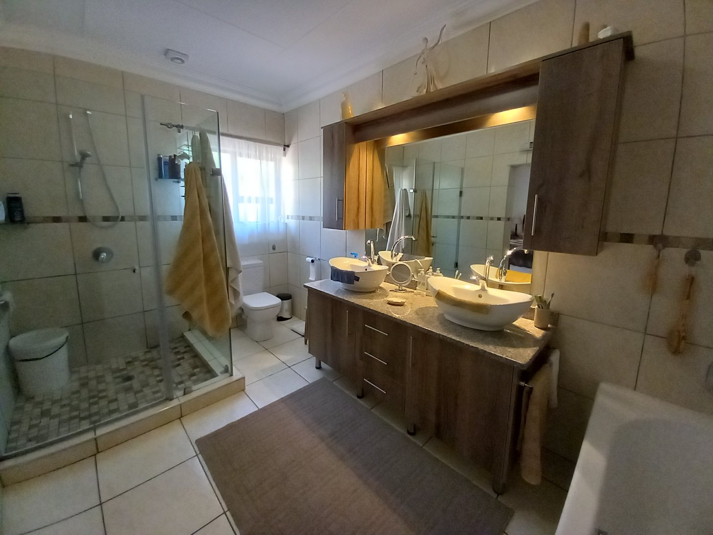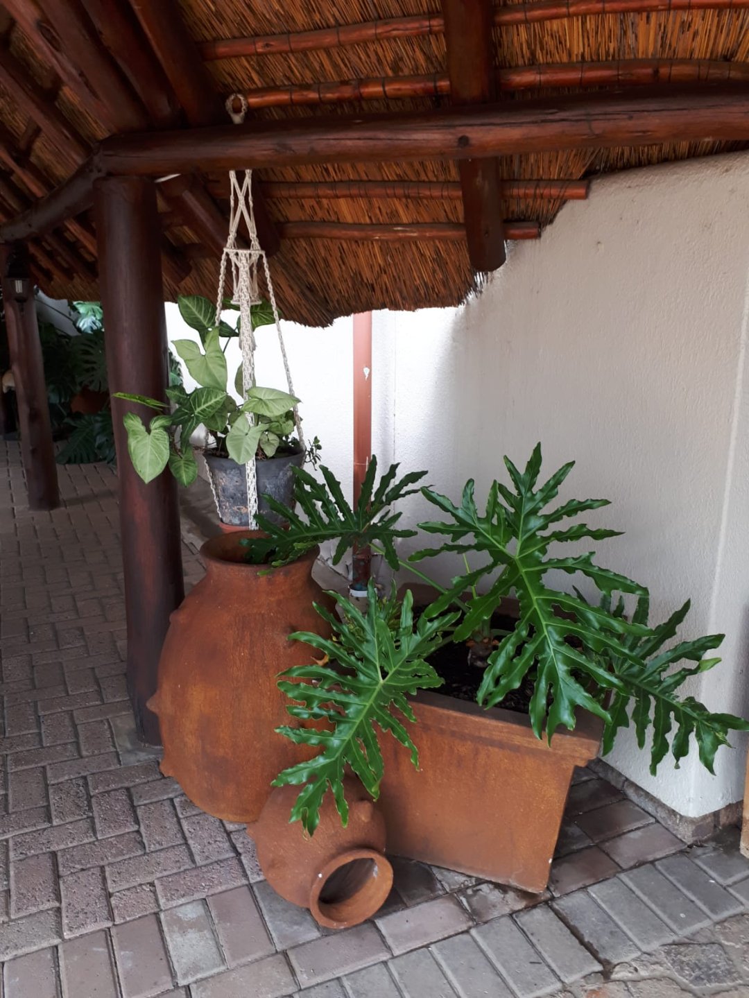 The garage has been converted into a workshop at the back of the house. A big lapa provides parking space for three vehicles in front of the yard.