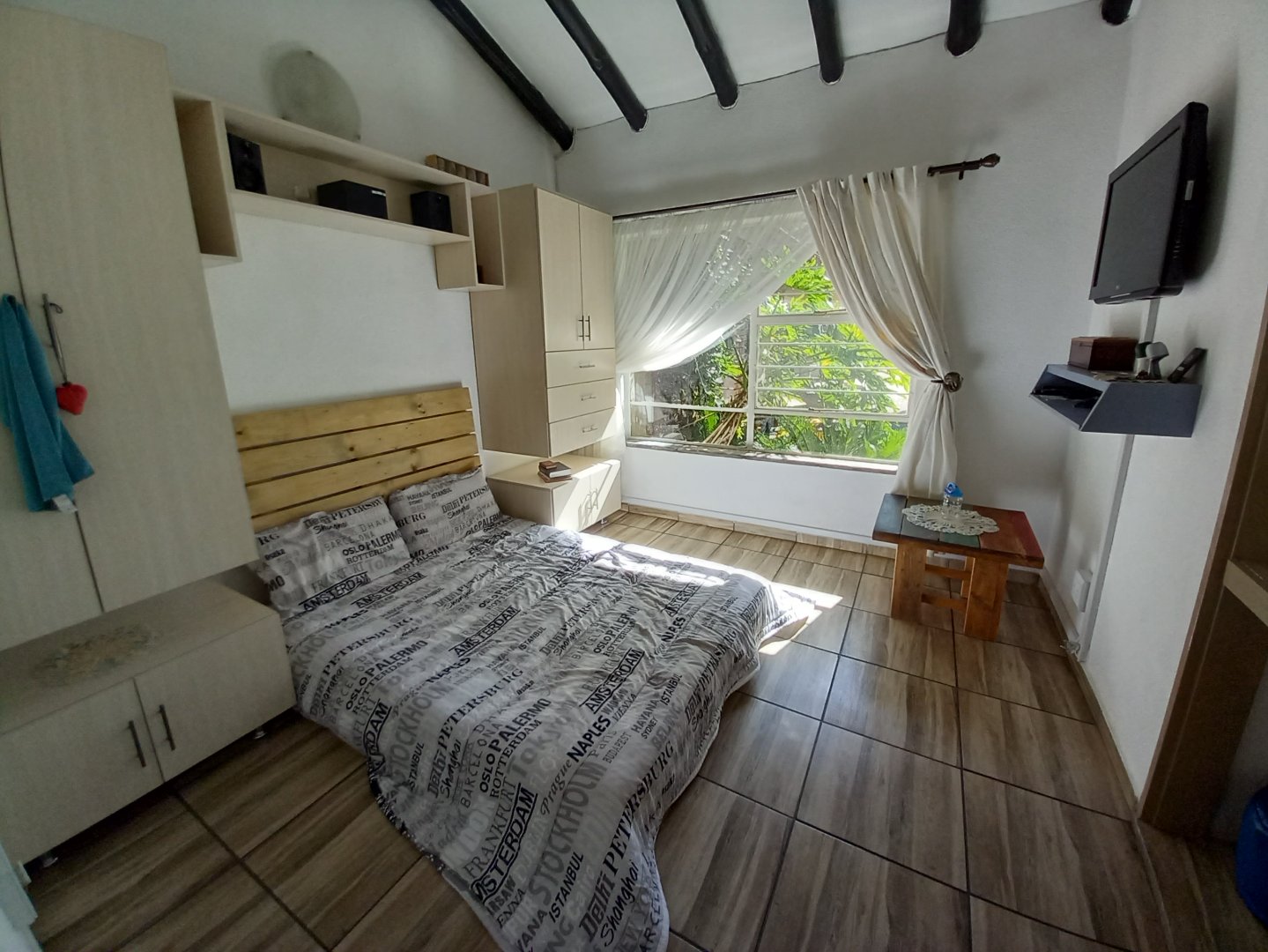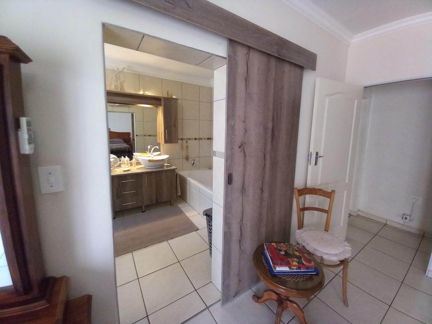 The flatlet is attached to the property and equipped with a bedroom, en-suite bathroom, living room, kitchen and a sliding door that leads to the pool.