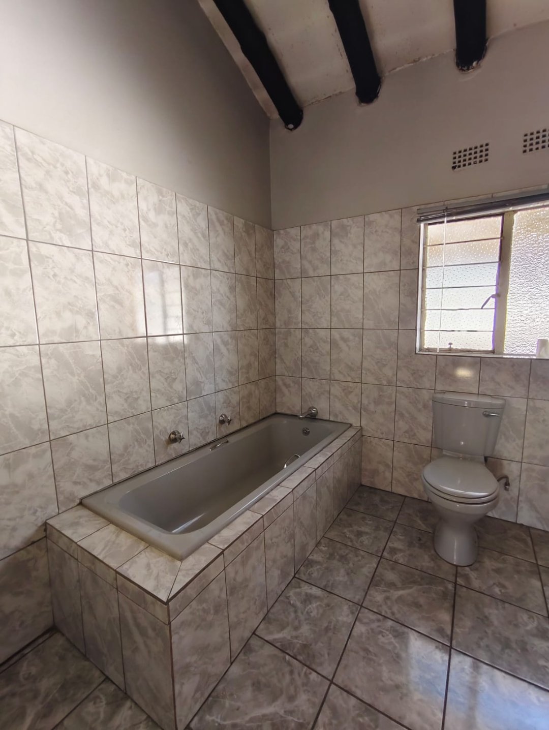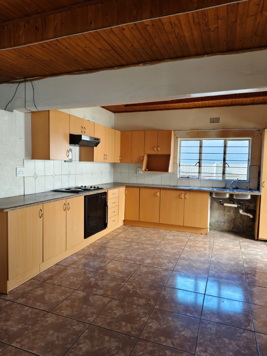 A swimming pool and braai area & spacious yard.