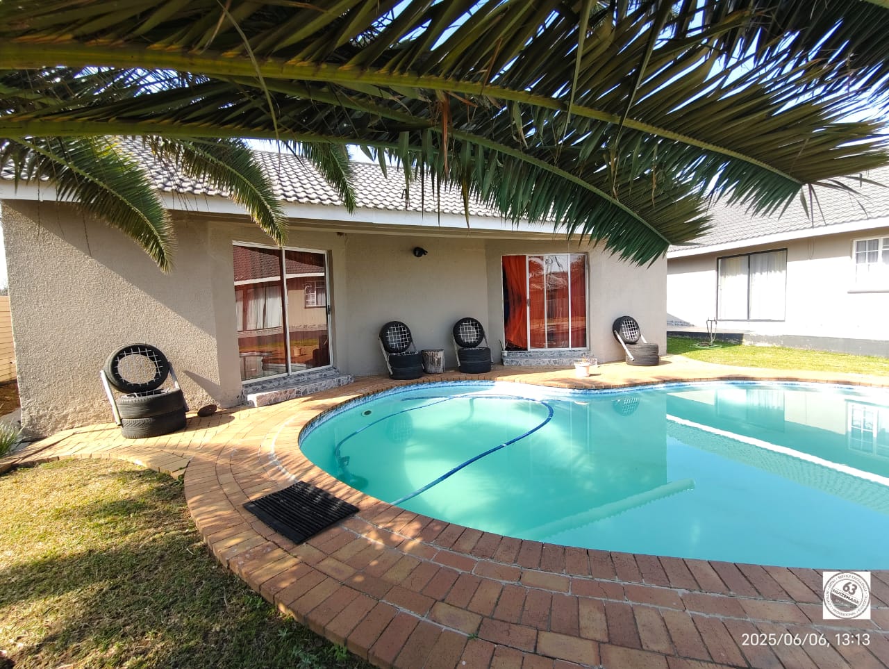 Beautiful spacious yard with a sparkling pool and 2 store rooms for additional space.