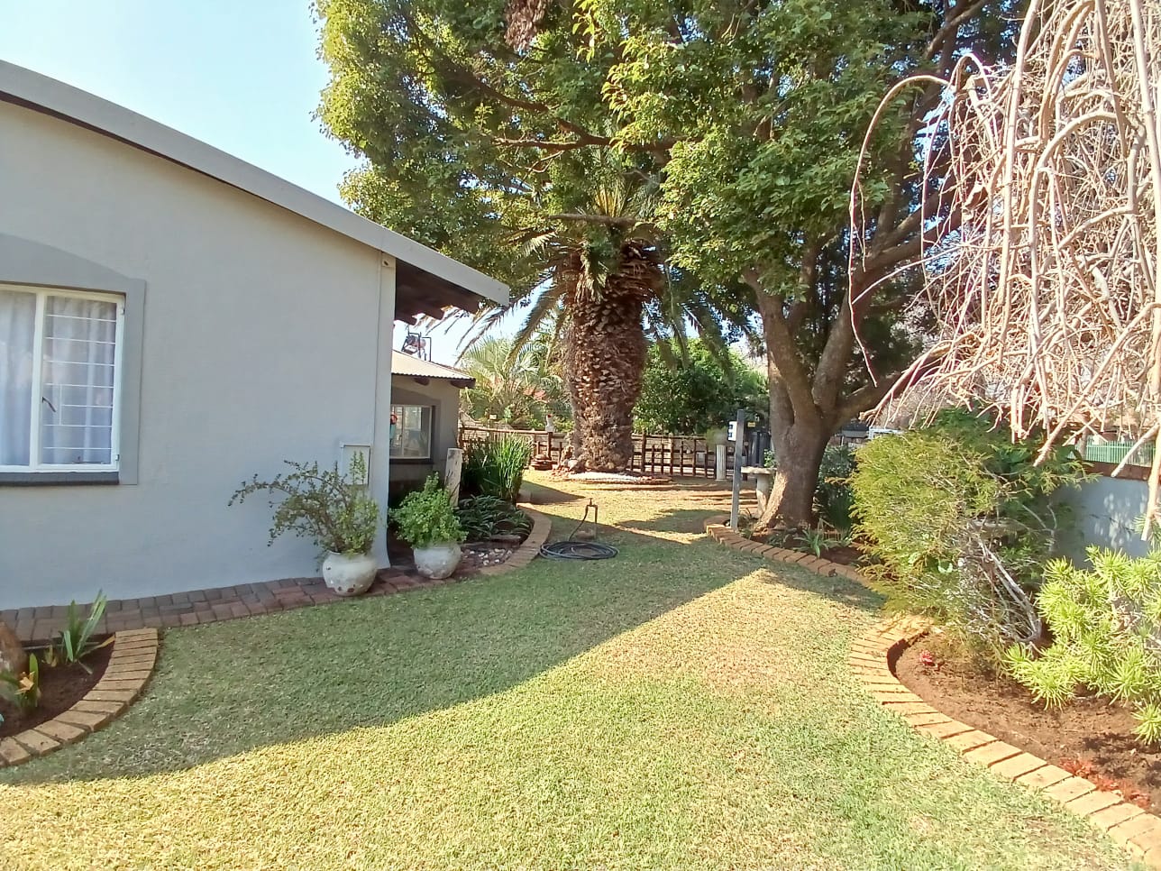 The property is safe with an alarm system, outside beams, and electric fencing. Well established garden with a borehole. Solar geyser.