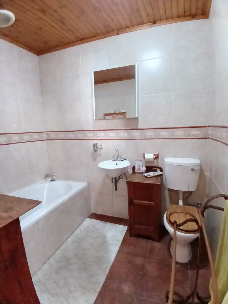 Complete flatlet fully equipped with a beautiful kitchen, wooden cupboards, and granite countertops. The dining room is open plan with the kitchen. Spacious lounge area walking into an air-conditioned sunroom. Spacious bedroom with ample closet space and an en-suite bathroom with a bathtub and shower.