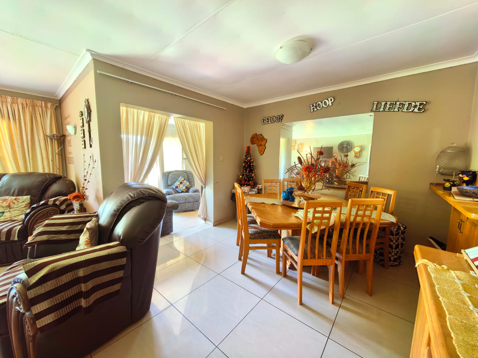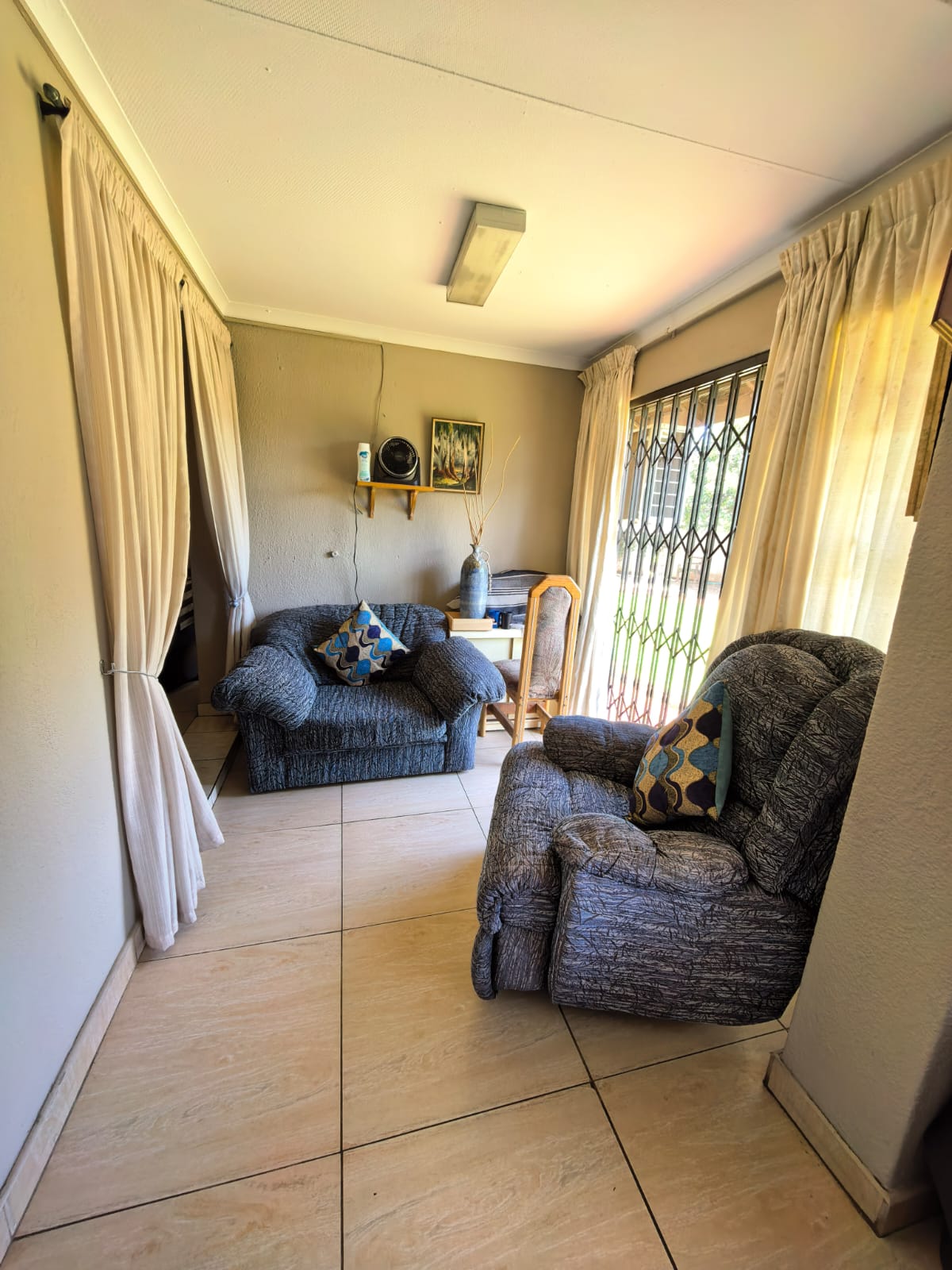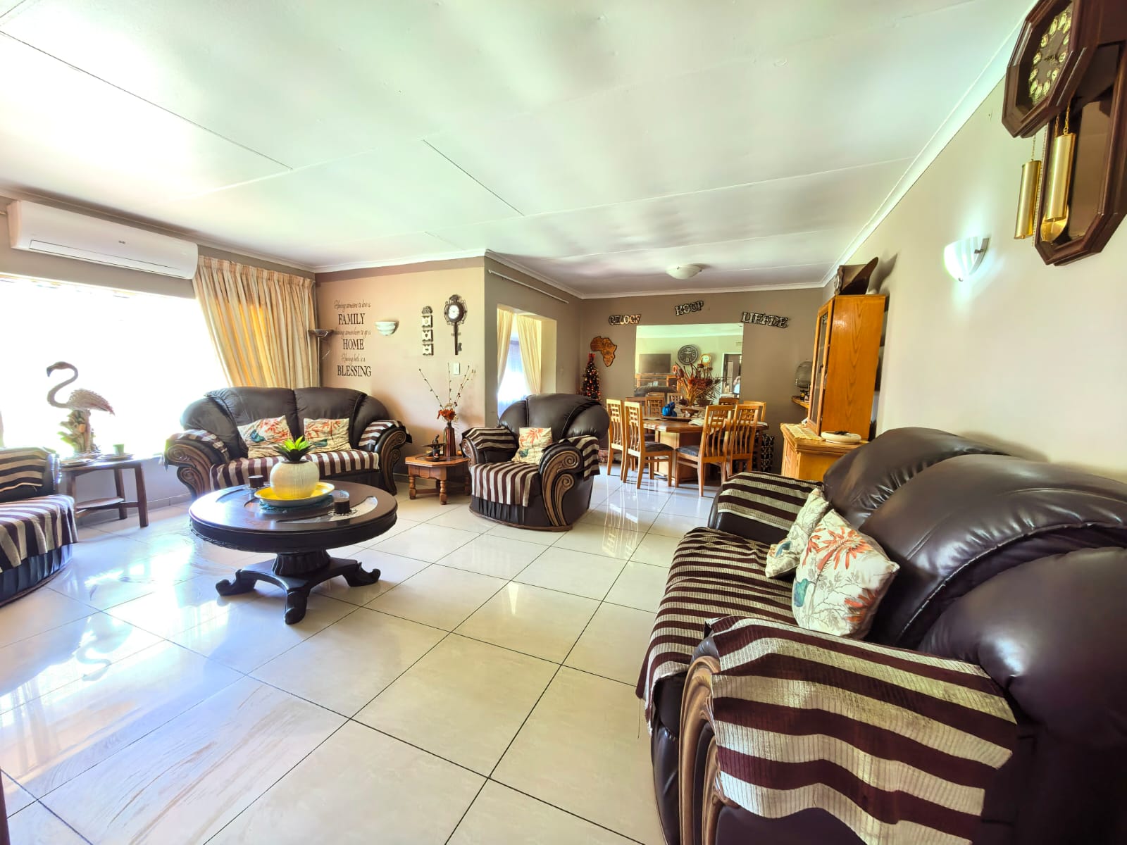 Spacious open plan living areas with air-conditioning, closed up patio area and a private study.