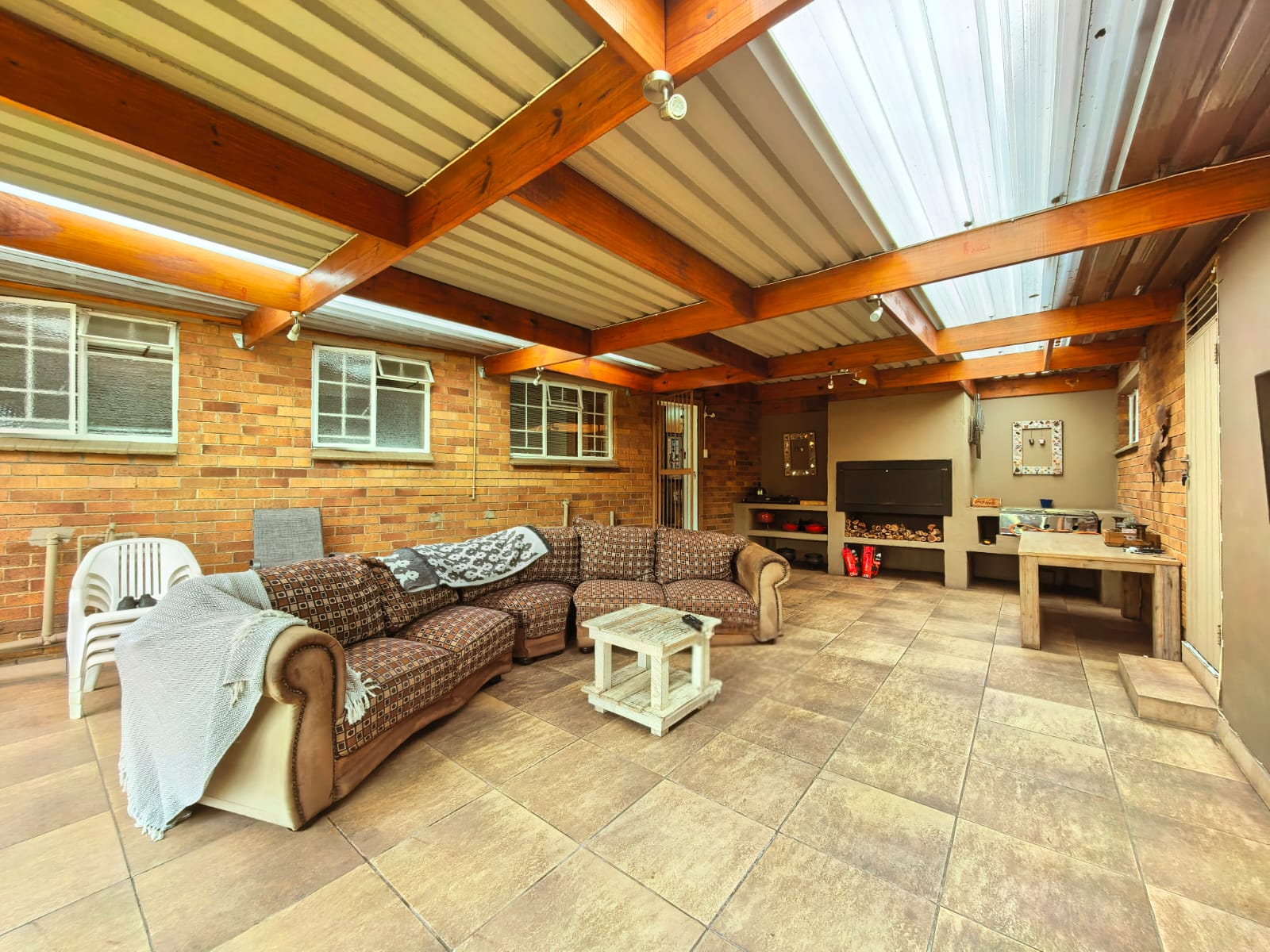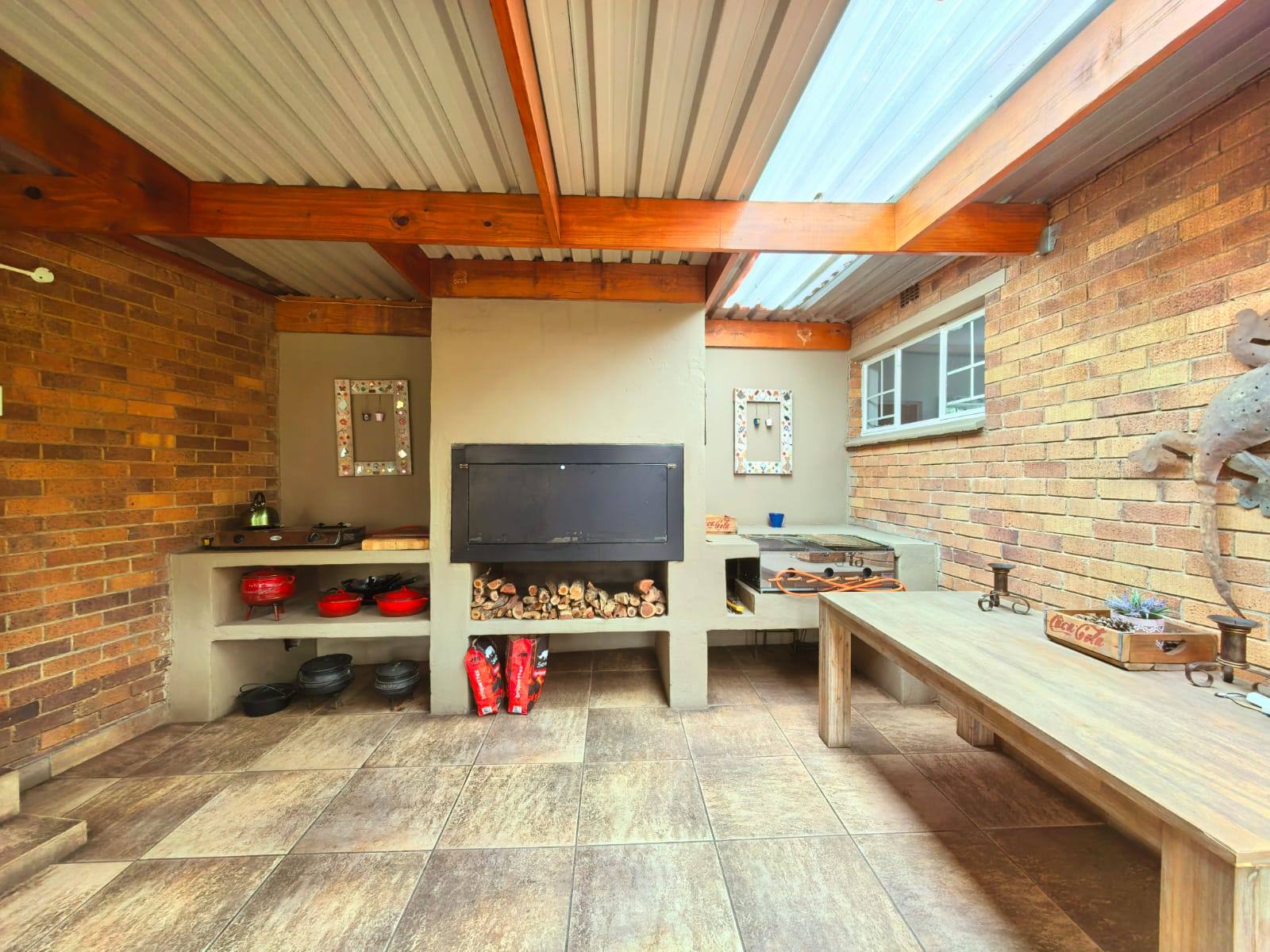 Lovely entertainment area with a built-in braai. Heated, sparkling swimming pool. Potential 1 bedroom flat with a tv room, bathroom, and space for a kitchen.