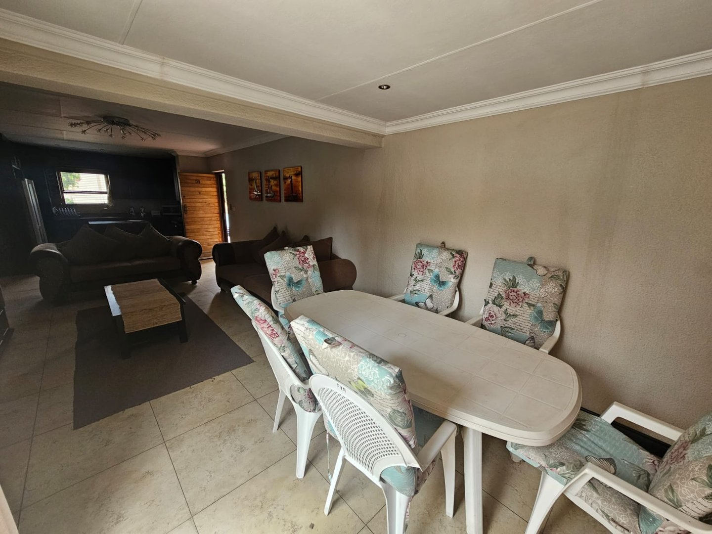 Open plan lounge and diningroom with build in braai
