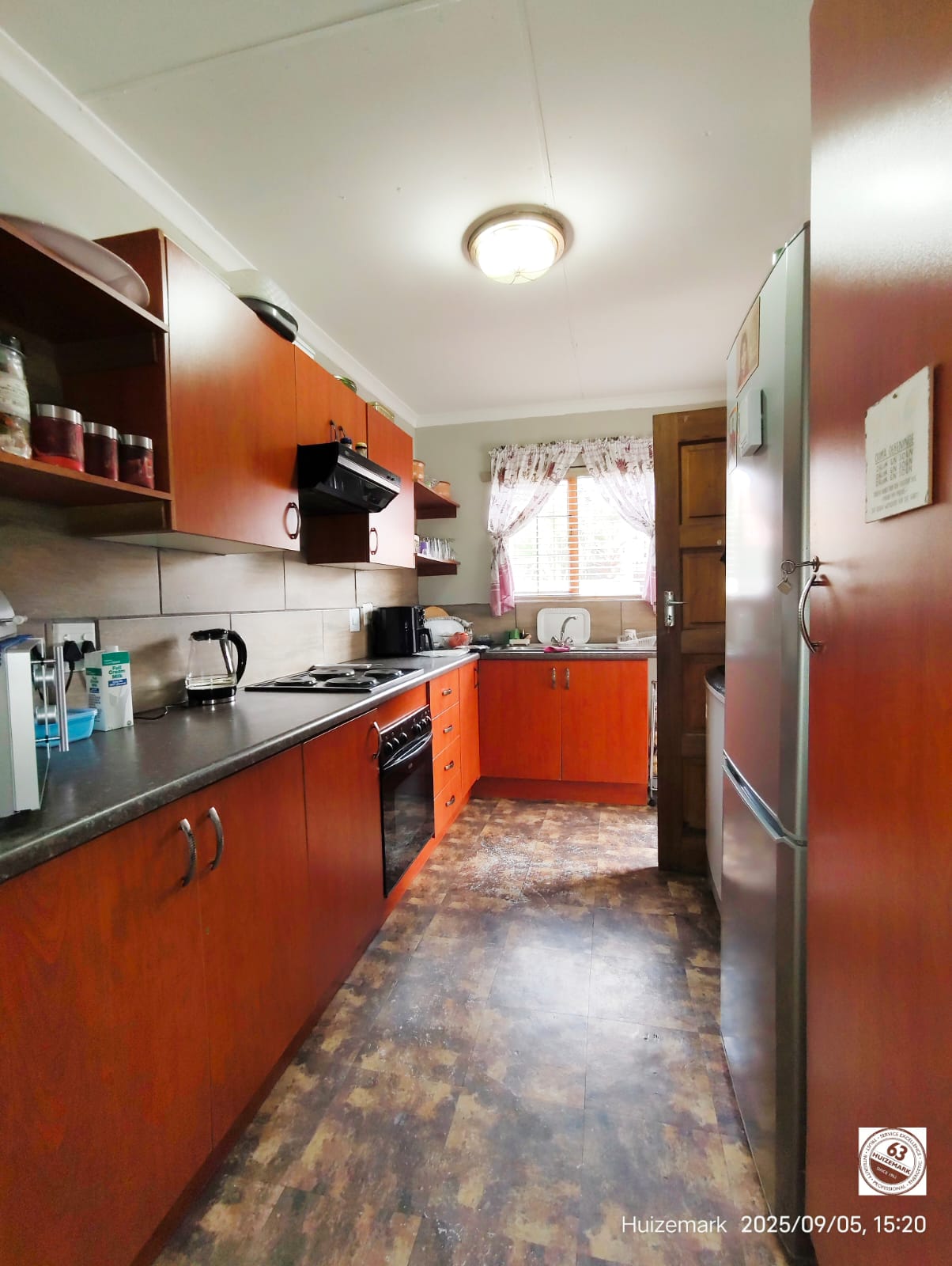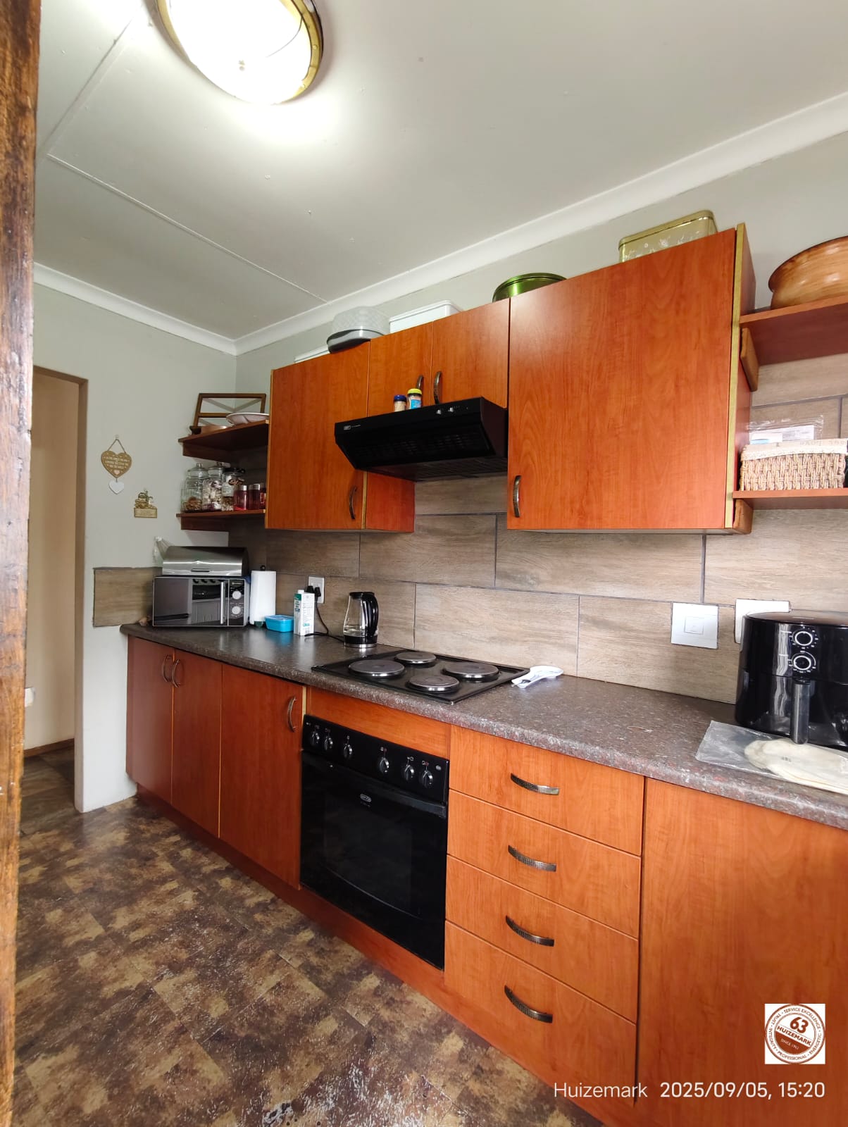 Modern wooden kitchen with courtyard access