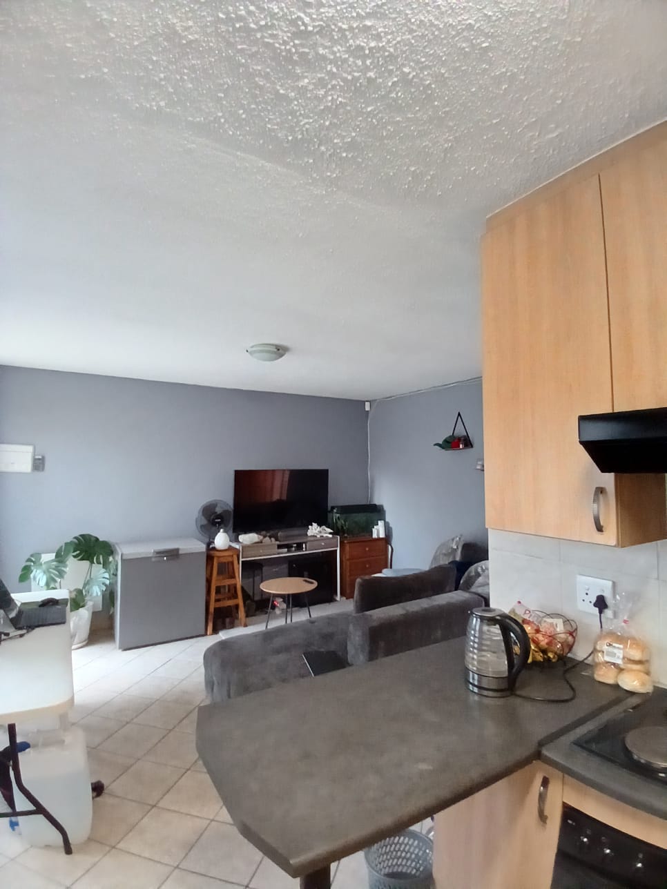 Open plan living area with the modern ki tchen