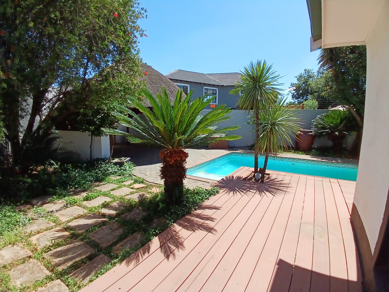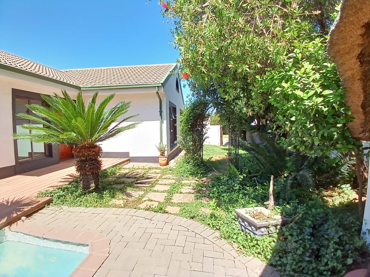 Sparkling swimming pool and lapa for your entertainment. Big garden. Double garages and double carports.