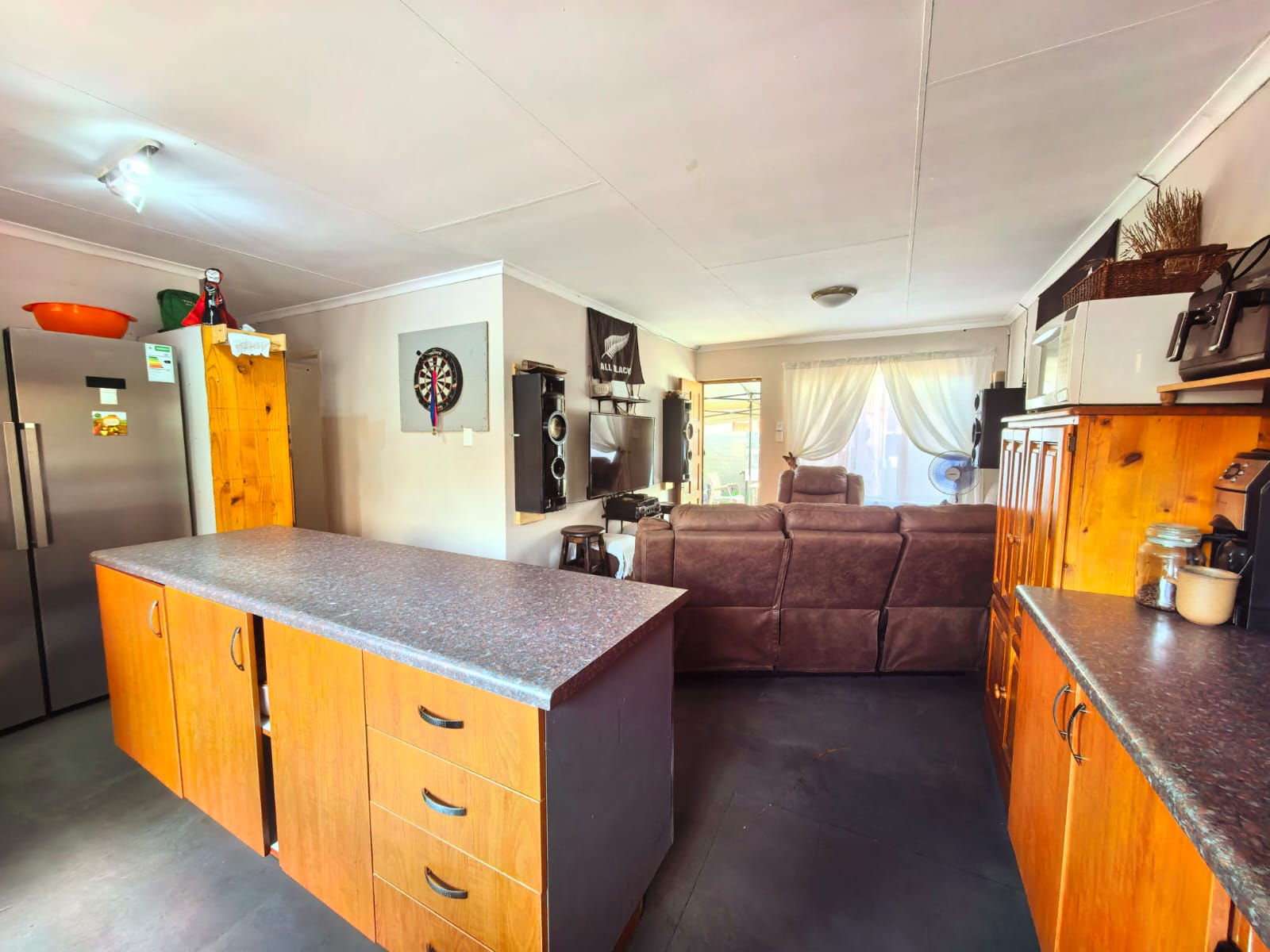Open plan living area with the spacious kitchen, ample cupboard space