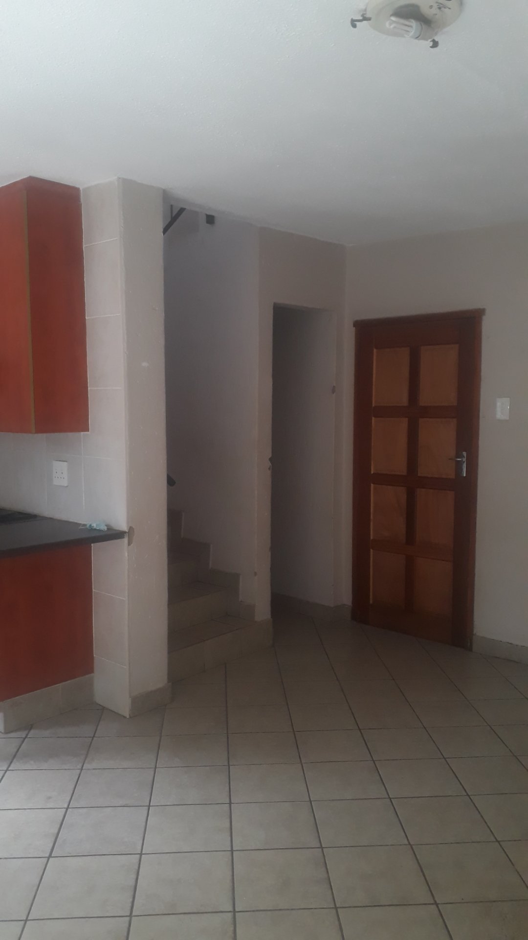 Lounge and wooden kitchen with single carport.