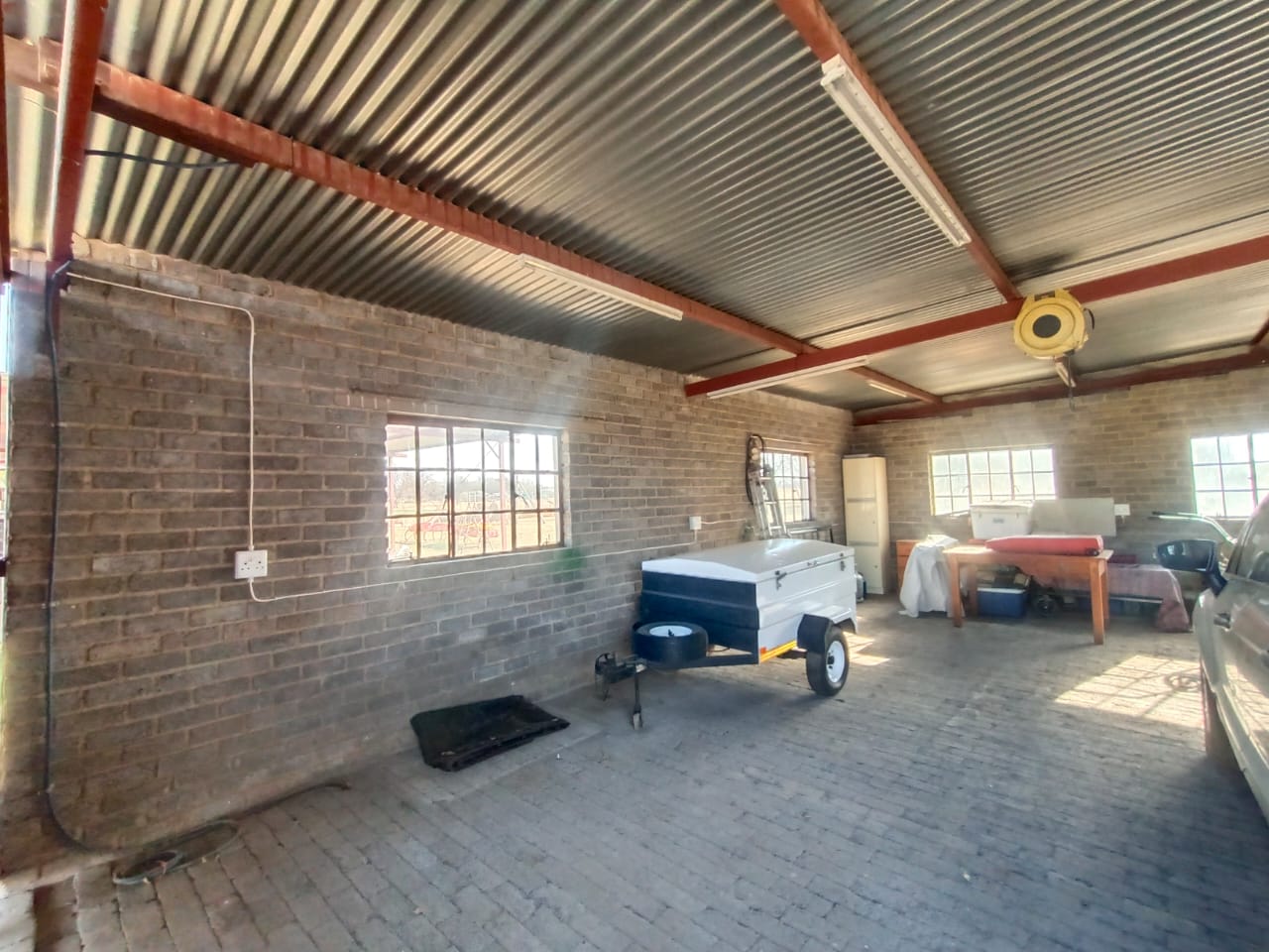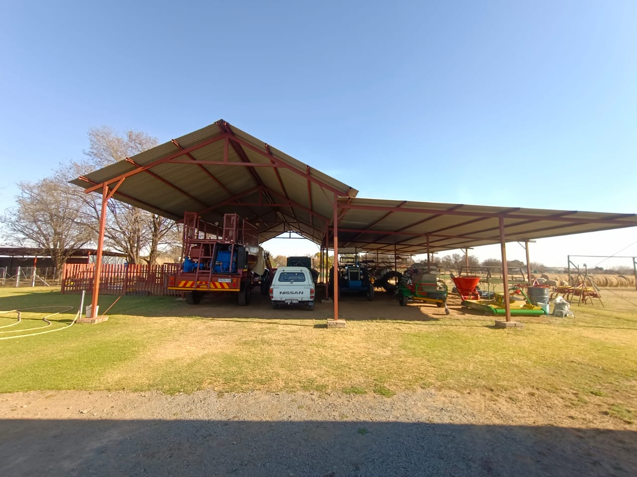 Double Carport where the truck/tractor/machinery is parked.