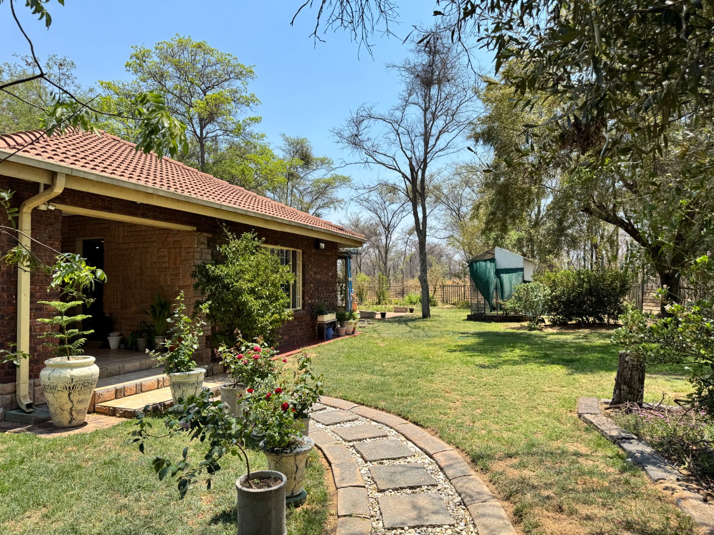 - Chicken coop, neat vegetable garden, etc.